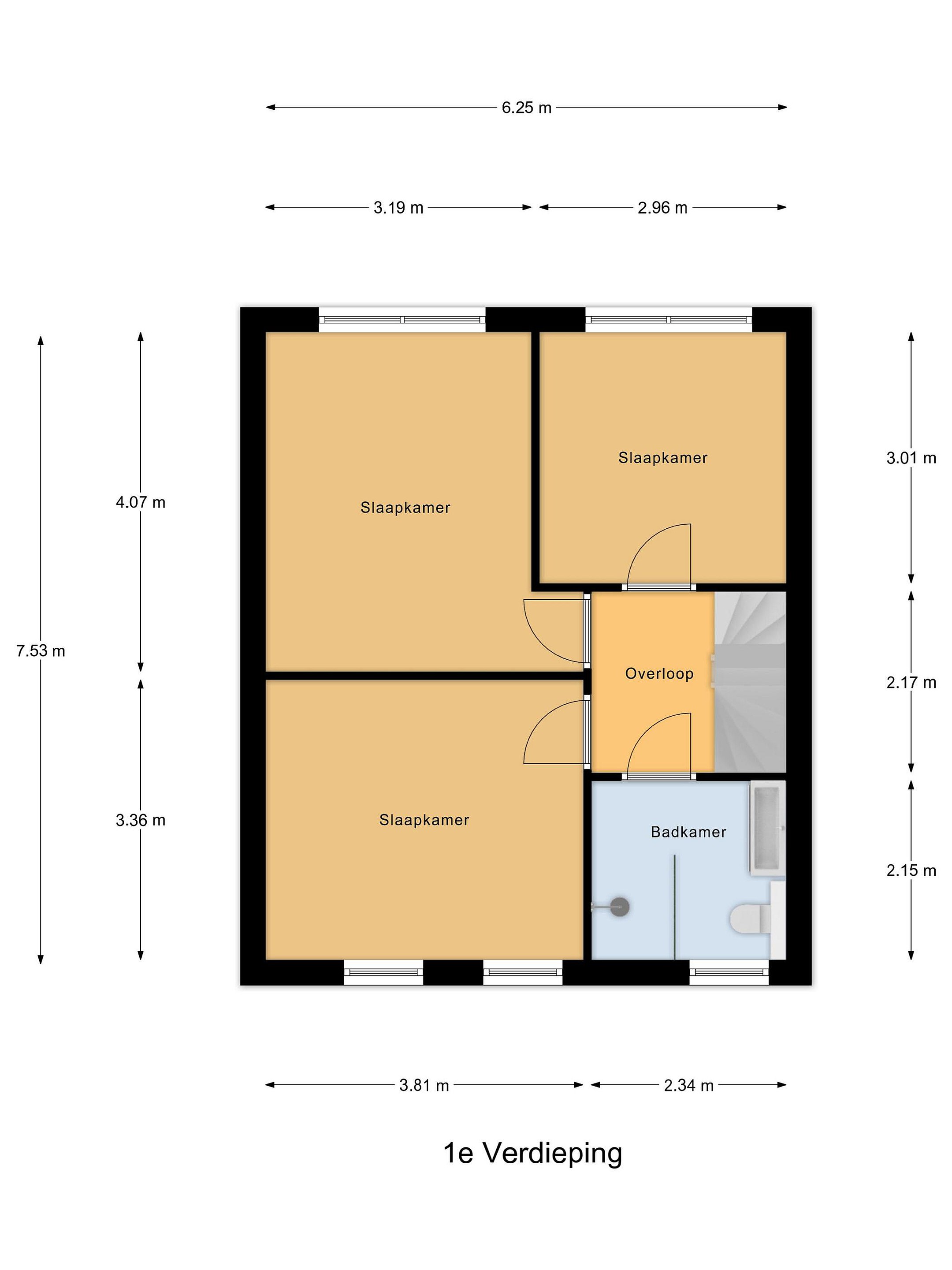 De eerste verdieping biedt een comfortabele en sfeervolle slaapverdieping met drie nette slaapkamers. Alle kamers zijn voorzien van een moderne laminaatvloer en strak afgewerkte wanden, wat zorgt voor een frisse en verzorgde uitstraling. De ruime hoofdslaapkamer is gelegen aan de rustige achterzijde van de woning, ideaal voor een goede nachtrust.
