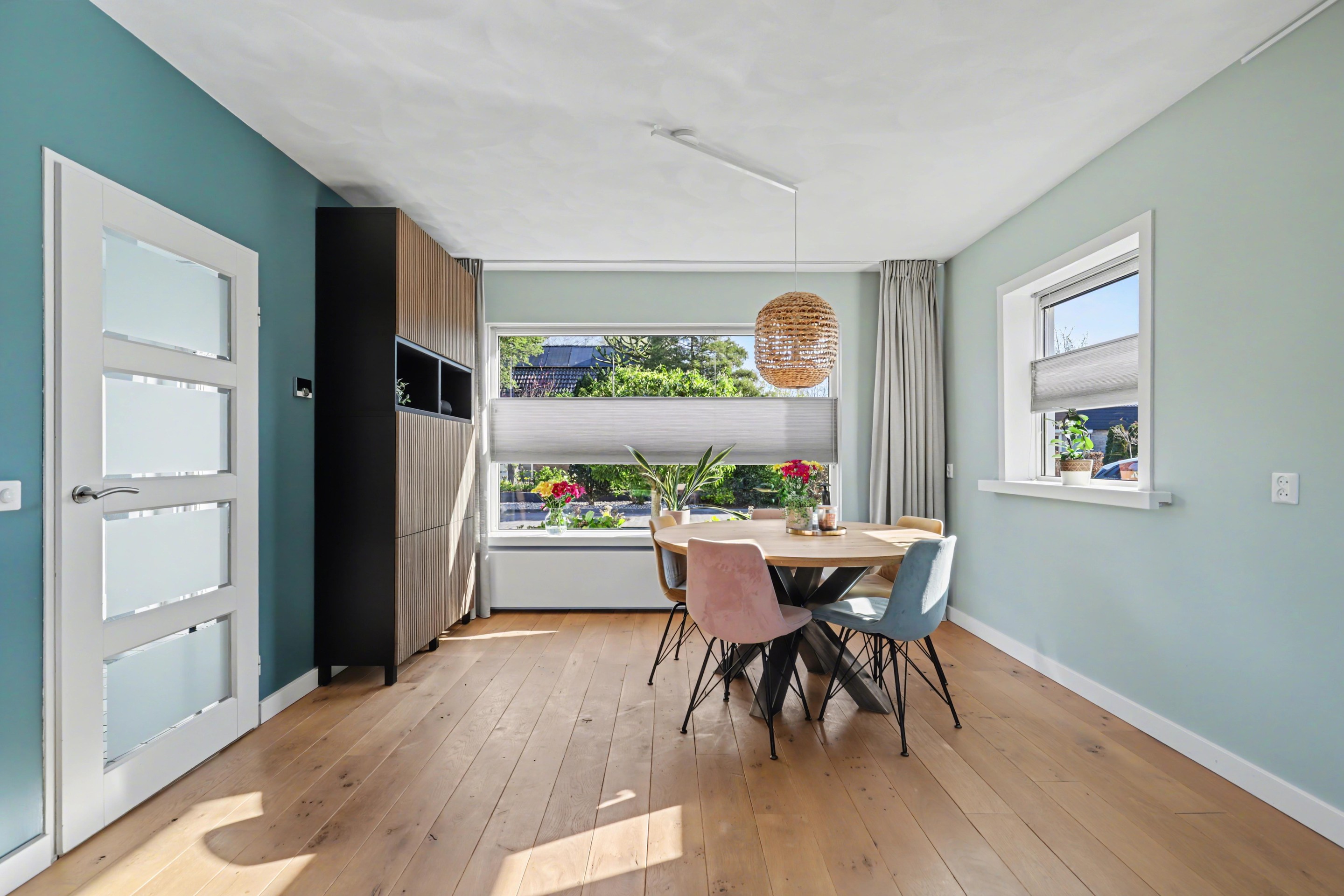 De zithoek is ruim opgezet en biedt volop plek om te ontspannen, terwijl de slimme indeling zorgt voor een prettige flow in de ruimte. De openslaande deuren geven toegang tot een verzorgde tuin waar je in alle rust kunt genieten van het buitenleven. Kortom: een lichte, moderne en instapklare woonkamer met een warme sfeer, de ideale plek om thuis te komen en te genieten.