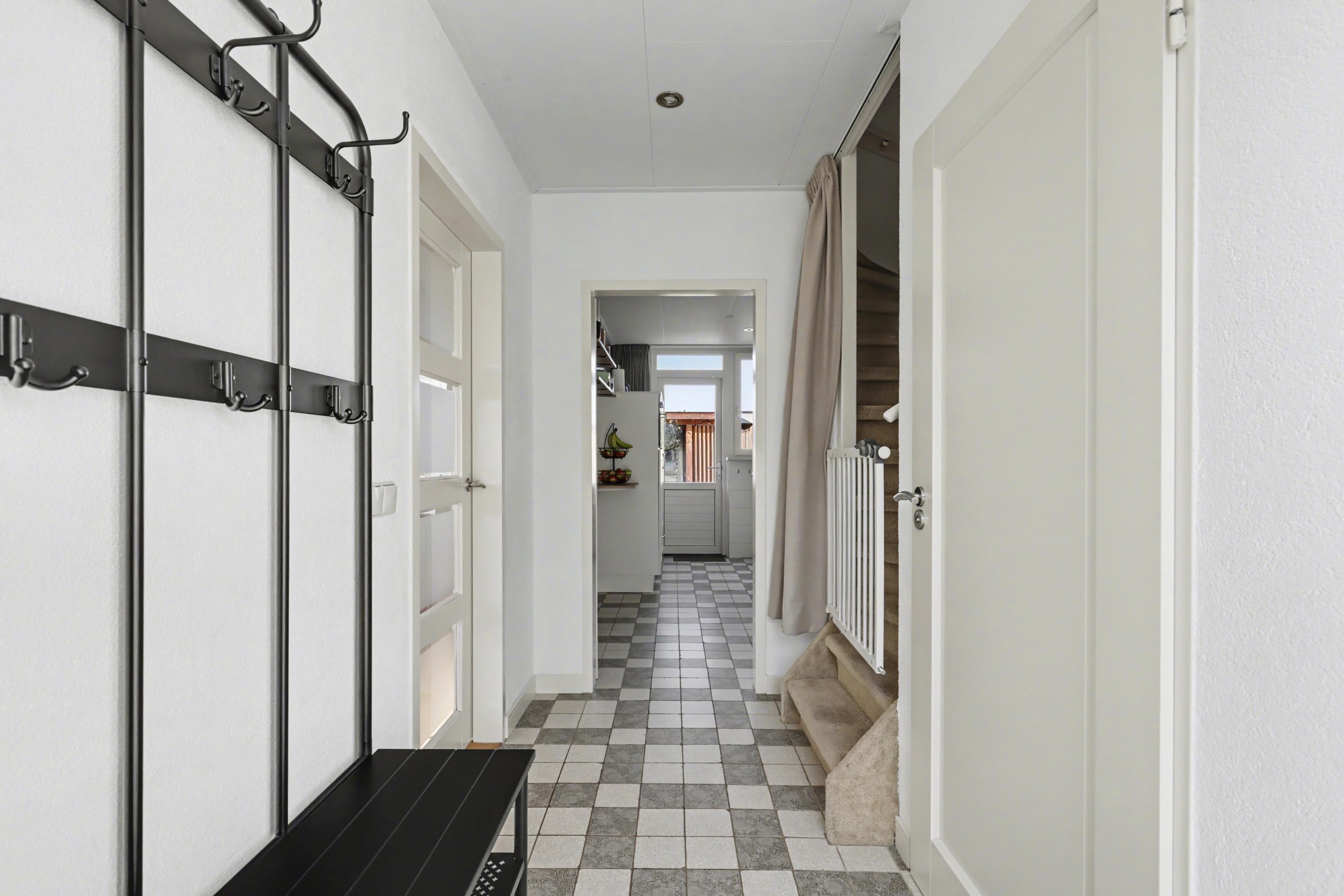 Via de ruime entree met meterkast en modern toilet met fonteintje, is er toegang tot zowel de woonkamer als de keuken.