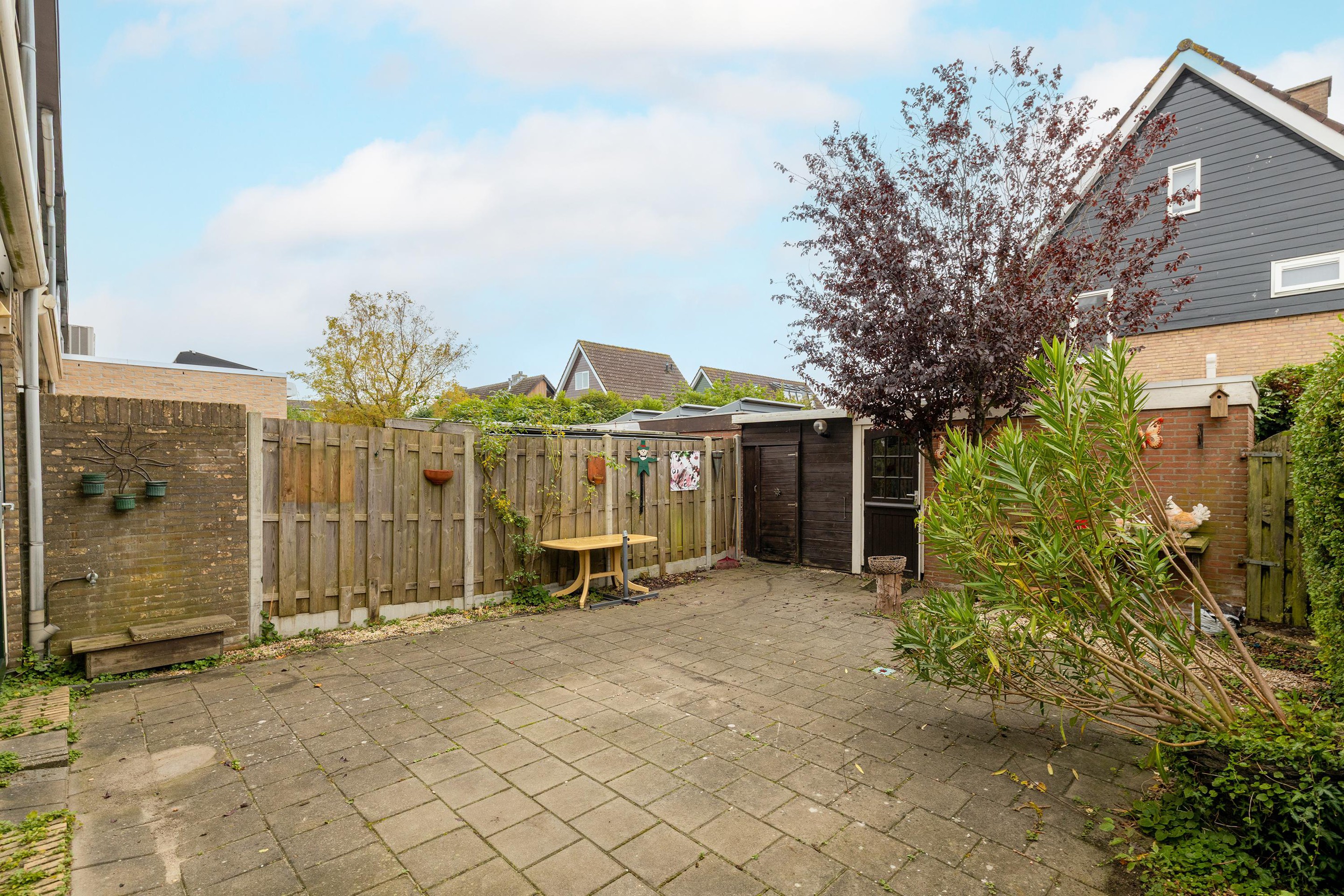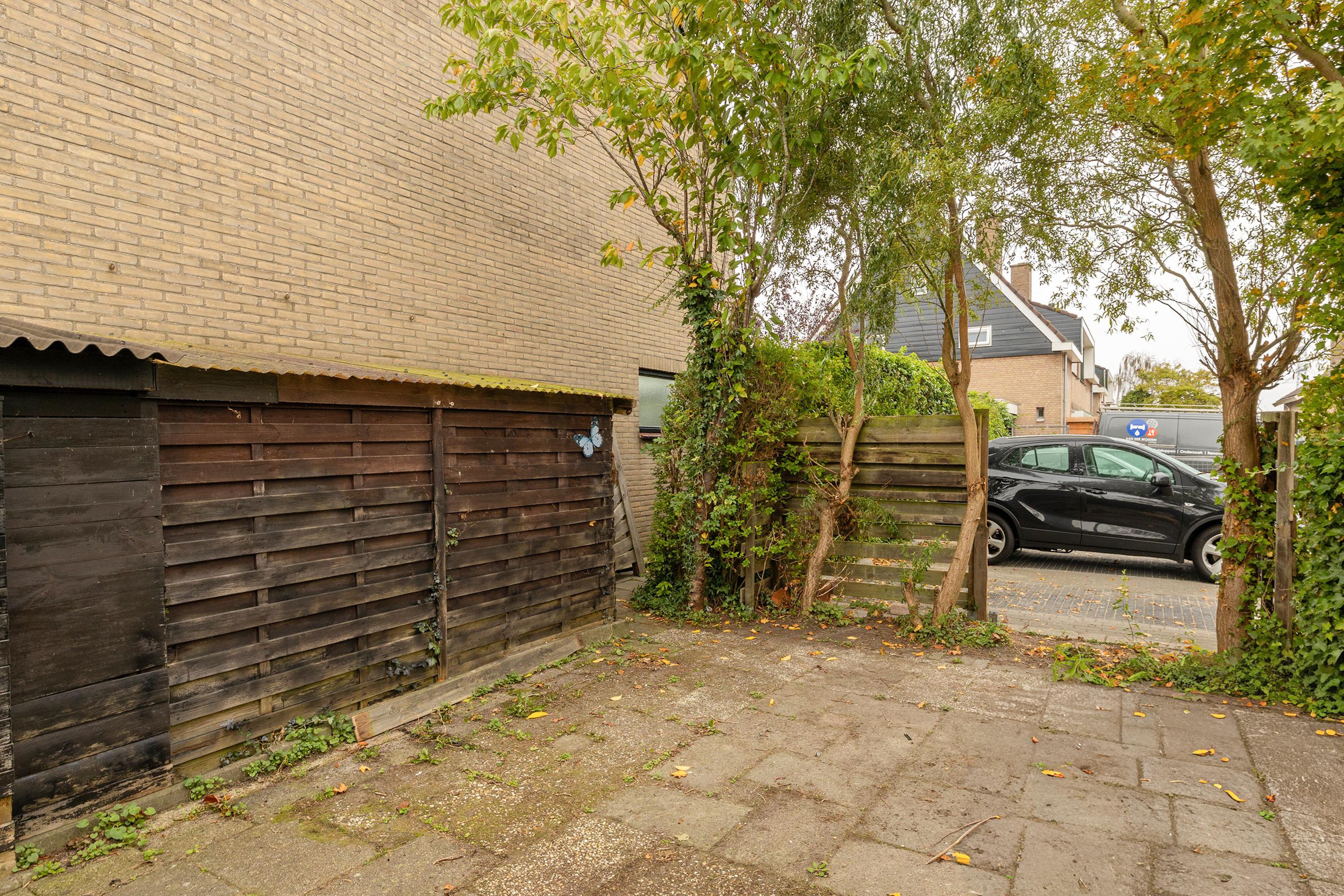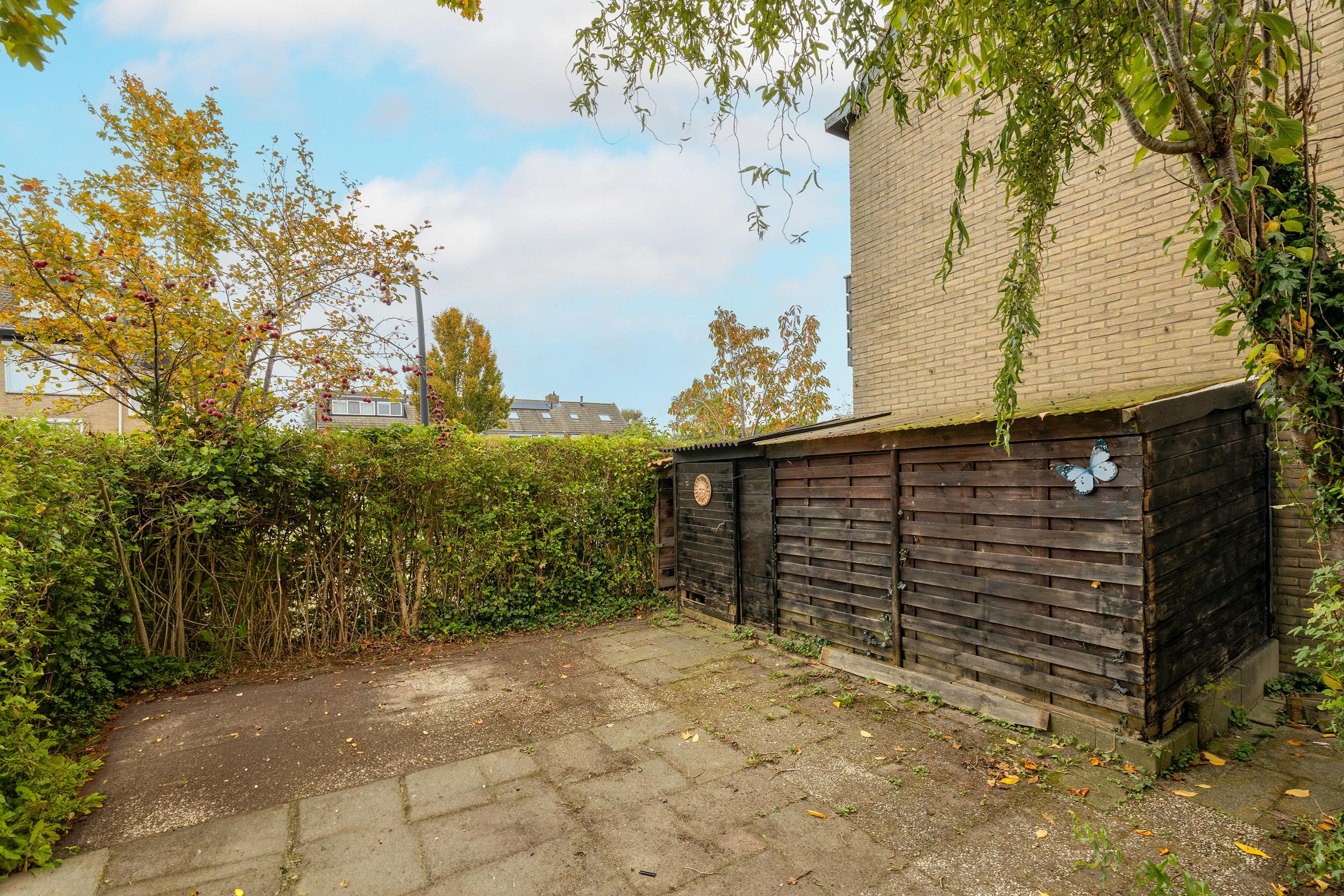 Tuin De achtertuin is grotendeels bestraat en biedt veel privacy. Achter in de tuin is een stenen berging met een houten aanbouw en een tuindeur, zodat je met je fiets met boodschappen achterom kunt. Aan de voorzijde is een kleine tuin, maar als je de houten berging aan de zijkant en wat struweel weghaalt, creëer je een mooie grote tuin met ruimte voor een extra buitenzitje, parkeerplaats, speelhoek enz.