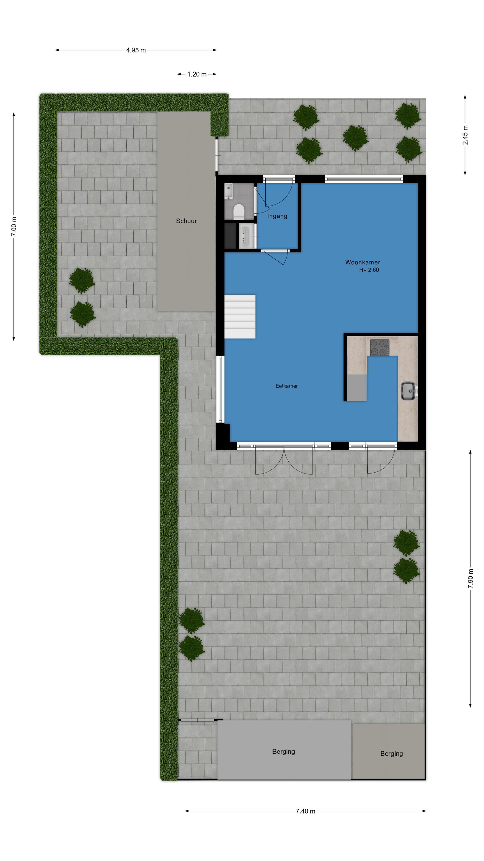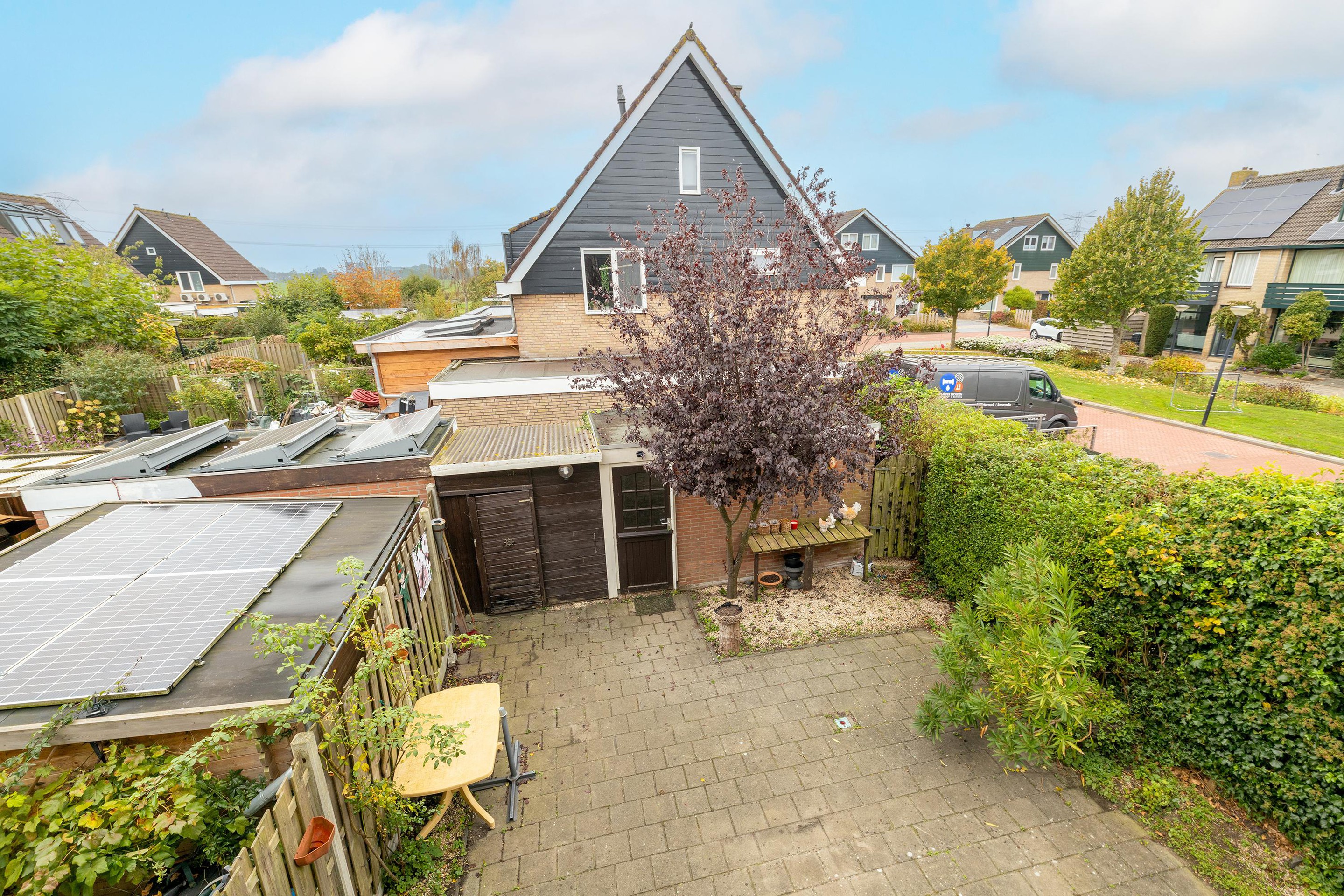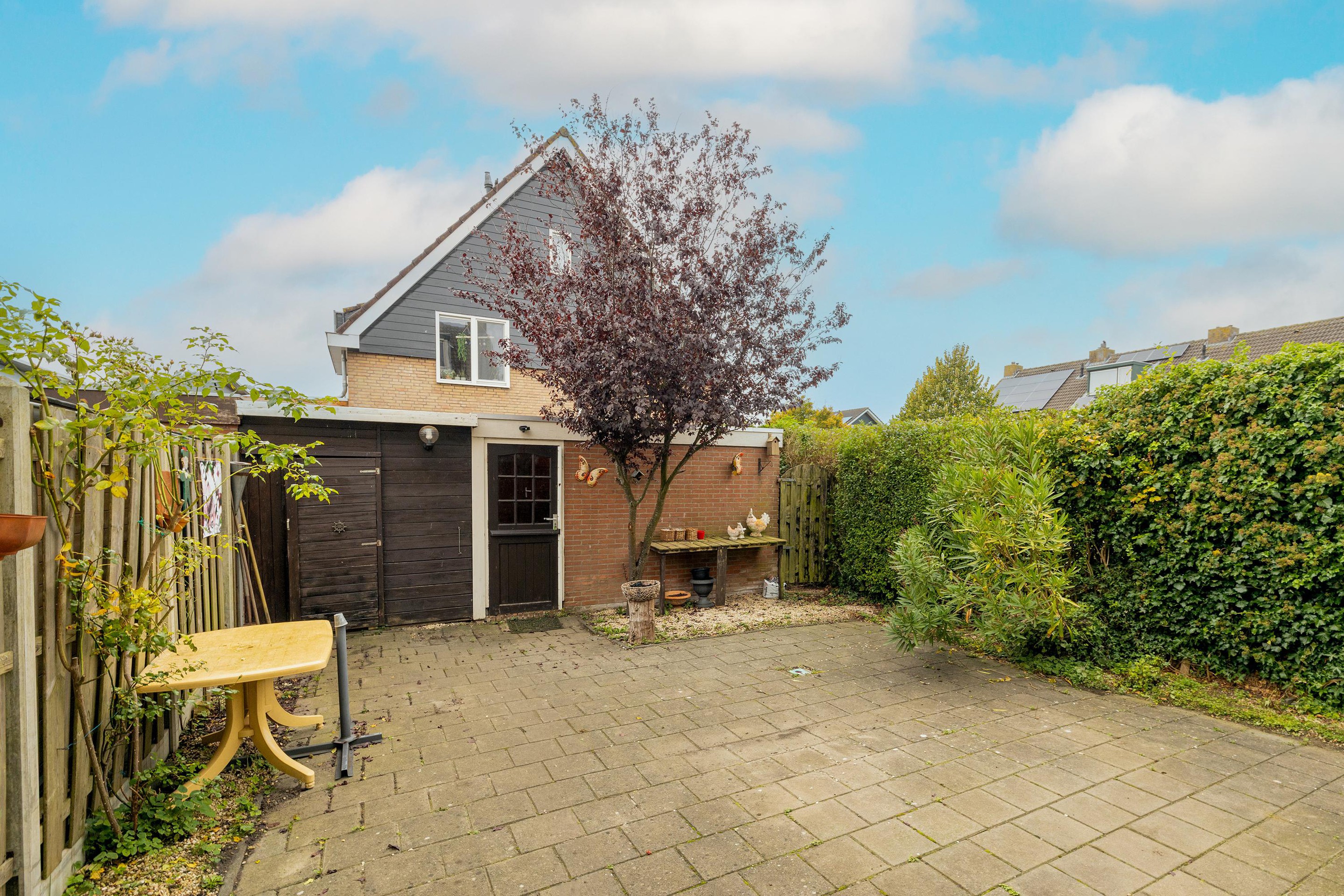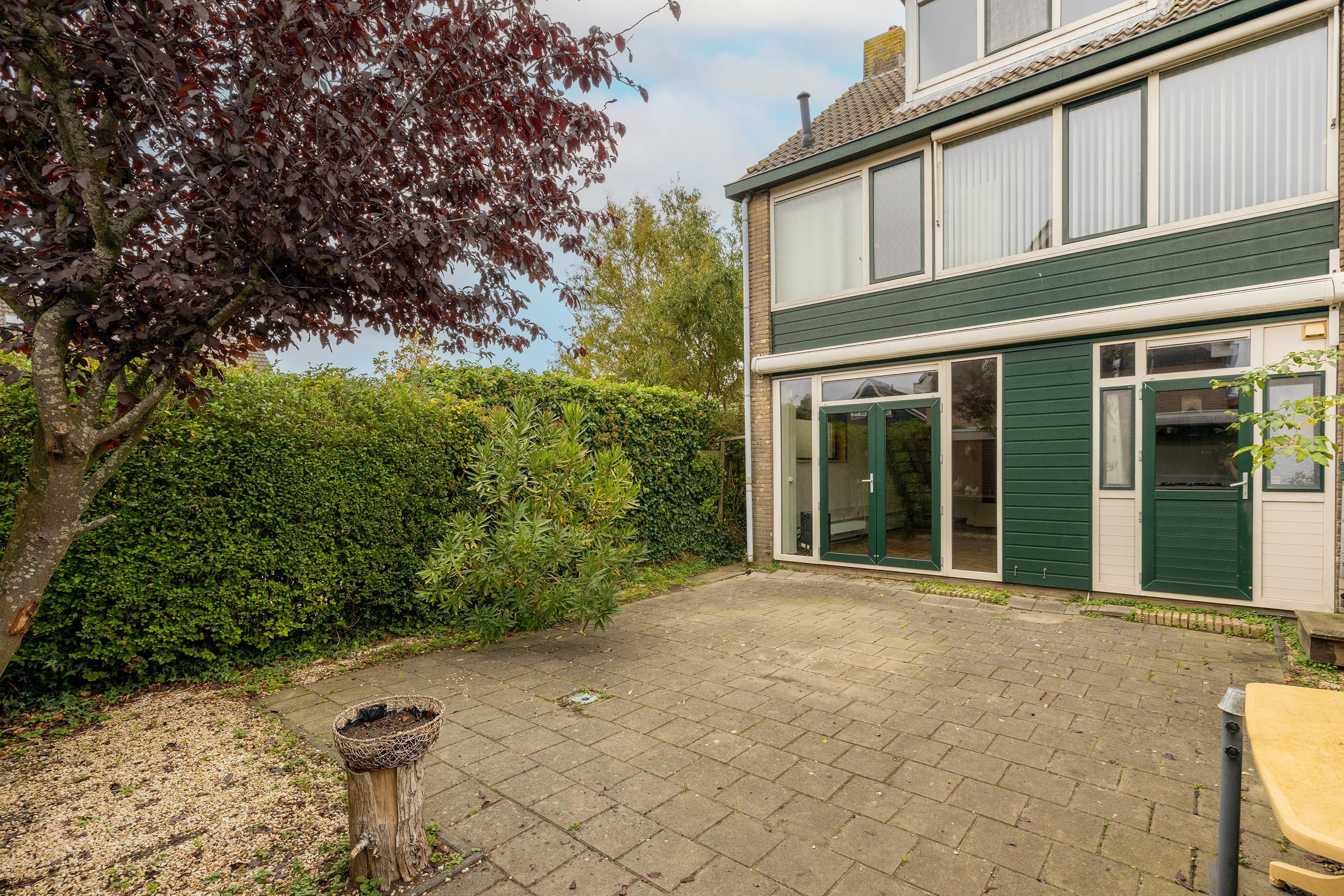 Tuin De achtertuin is grotendeels bestraat en biedt veel privacy. Achter in de tuin is een stenen berging met een houten aanbouw en een tuindeur, zodat je met je fiets met boodschappen achterom kunt. Aan de voorzijde is een kleine tuin, maar als je de houten berging aan de zijkant en wat struweel weghaalt, creëer je een mooie grote tuin met ruimte voor een extra buitenzitje, parkeerplaats, speelhoek enz.