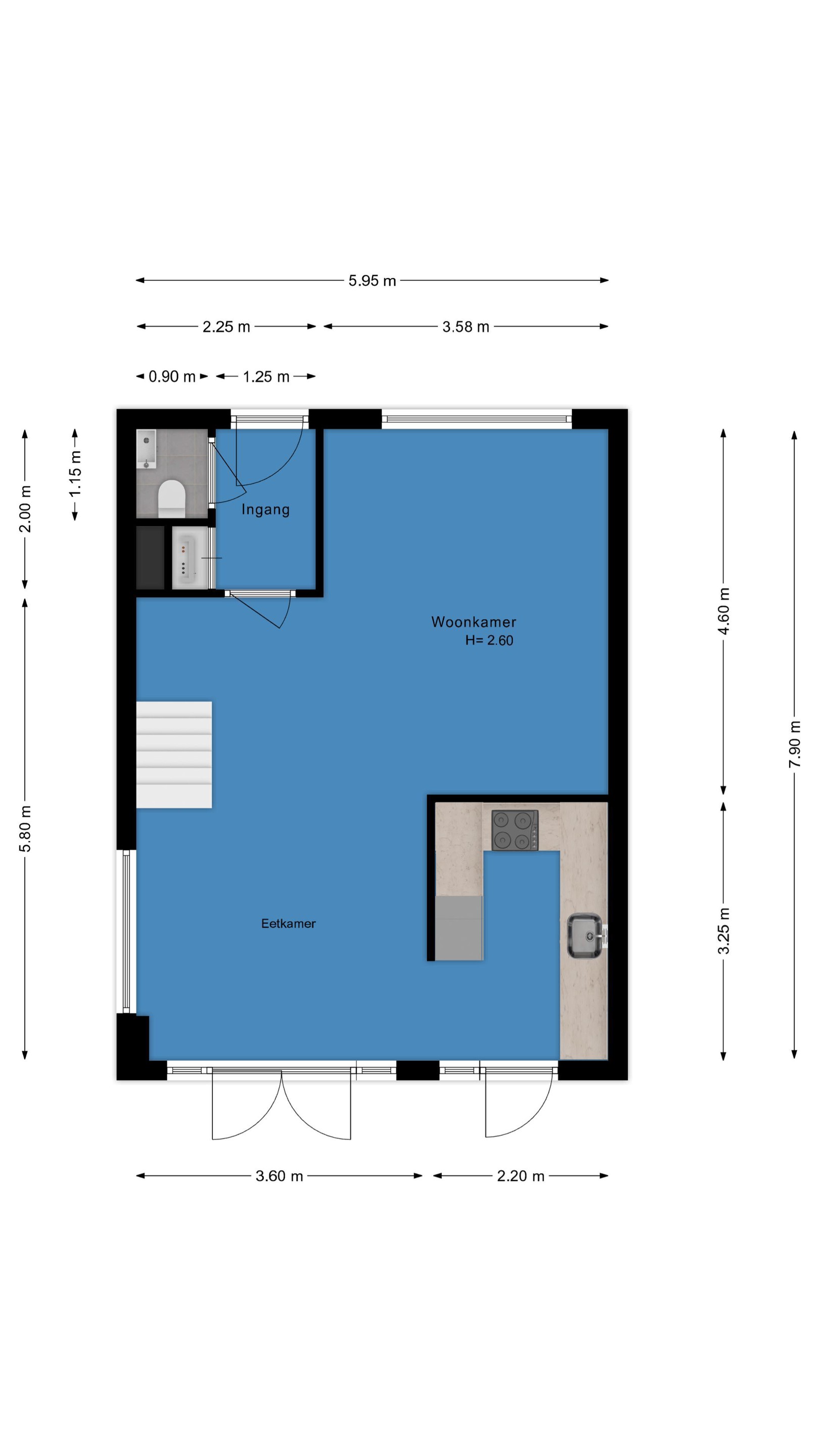 Begane grond Via het opstapje in de voortuin kom je binnen in de hal. Rechts is de eerste toiletruimte met verwarming en fonteintje. Daarnaast is de meterkast.