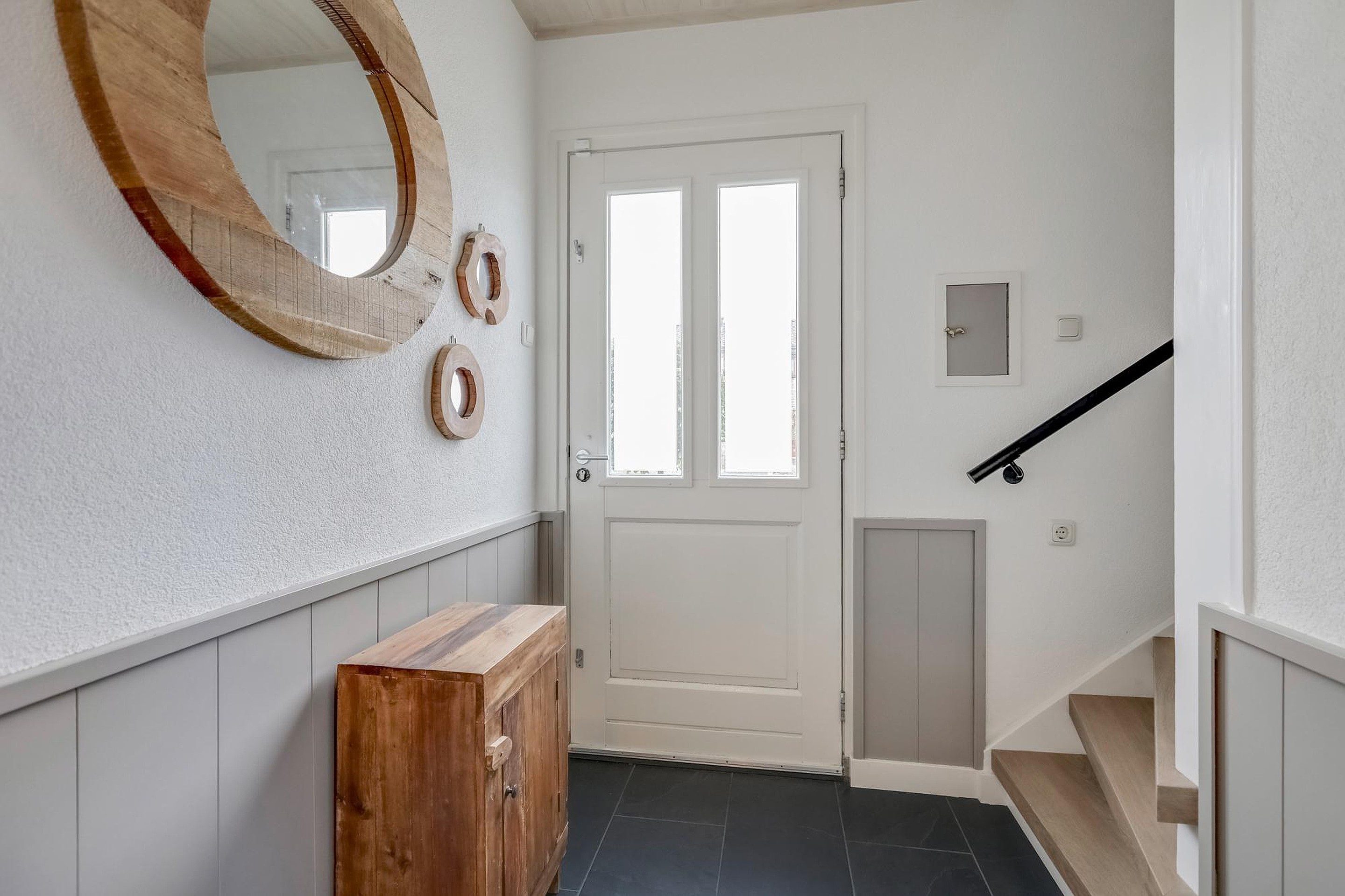 De woning beschikt over een gezellige doorzon-woonkamer van 35 m2, die direct in verbinding staat met een halfopen keuken van 10 m2. De keuken is voorzien van diverse inbouwapparatuur waaronder een kookplaat, afzuigkap, oven, koelkast en een vaatwasser. Vanuit de keuken is een “ouderwetse” kelder te bereiken, ideaal voor extra bergruimte. Het toilet bevindt zich in de bijkeuken aan de achterzijde van de woning die tevens voorzien is van de witgoedaansluitingen en de verdeler van de vloerverwarming. De entree bij de voordeur, inclusief garderobe biedt toegang tot de trap naar de bovenverdieping.