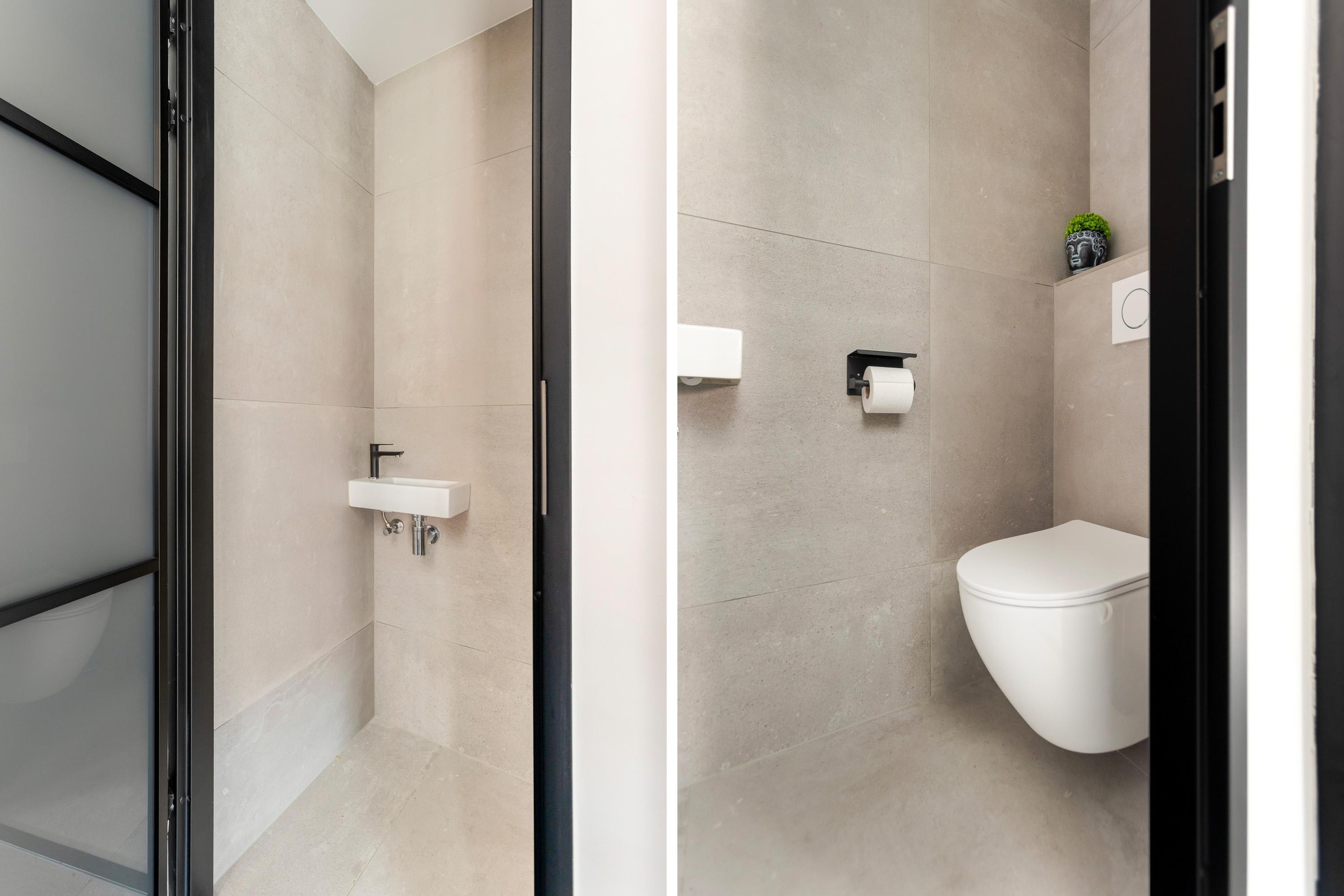 Via de hal met toilet en trapopgang kom je in de lichte woonkamer met tegelvloer en vloerverwarming. De ruimte heeft een prettige indeling met grote ramen en een open verbinding naar de keuken. Deze moderne keuken aan de voorzijde is uitgerust met hoogwaardige inbouwapparatuur: een inductiekookplaat met geïntegreerde afzuiging, combi-oven, Quooker, dubbele spoelbak, vaatwasser, koelkast en vriezer. Een heerlijke plek om te koken en gezellig samen te eten.