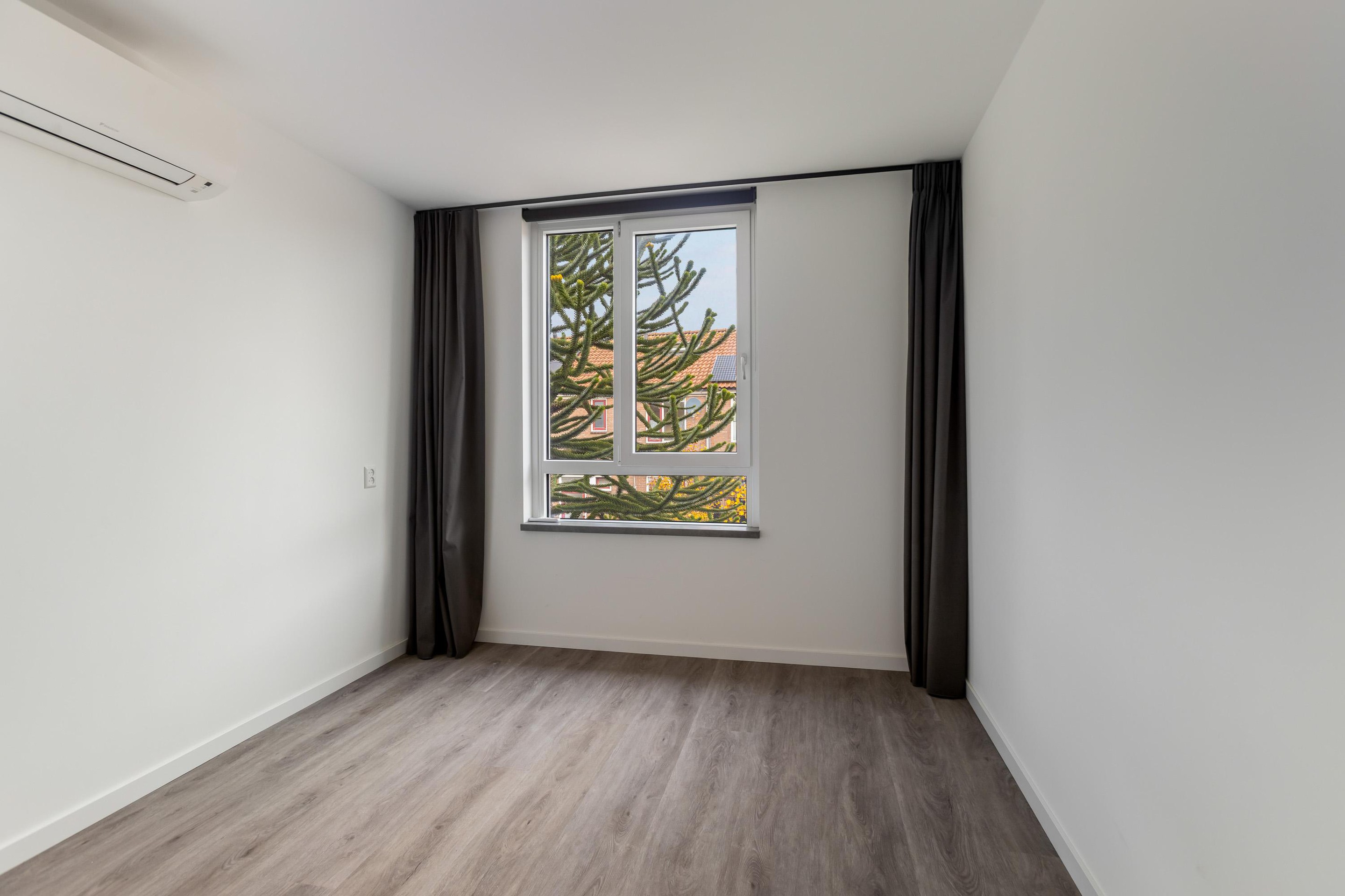 De zolderverdieping is verrassend ruim dankzij de brede dakkapel. Hier bevindt zich de derde slaapkamer, afgewerkt met een PVC-vloer en voorzien van airconditioning. Daarnaast is op deze verdieping de aansluiting voor de wasmachine aanwezig – praktisch en netjes weggewerkt.
