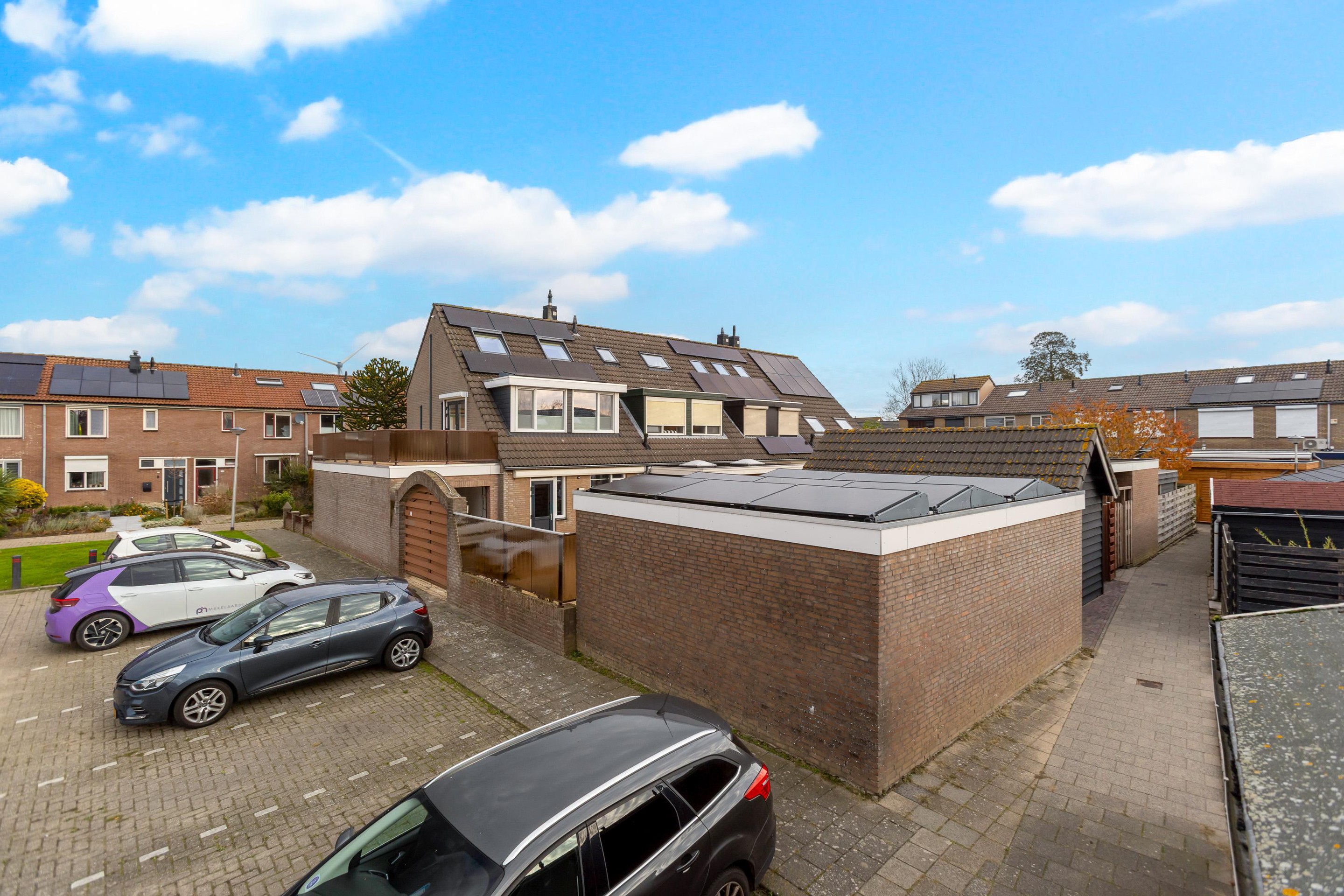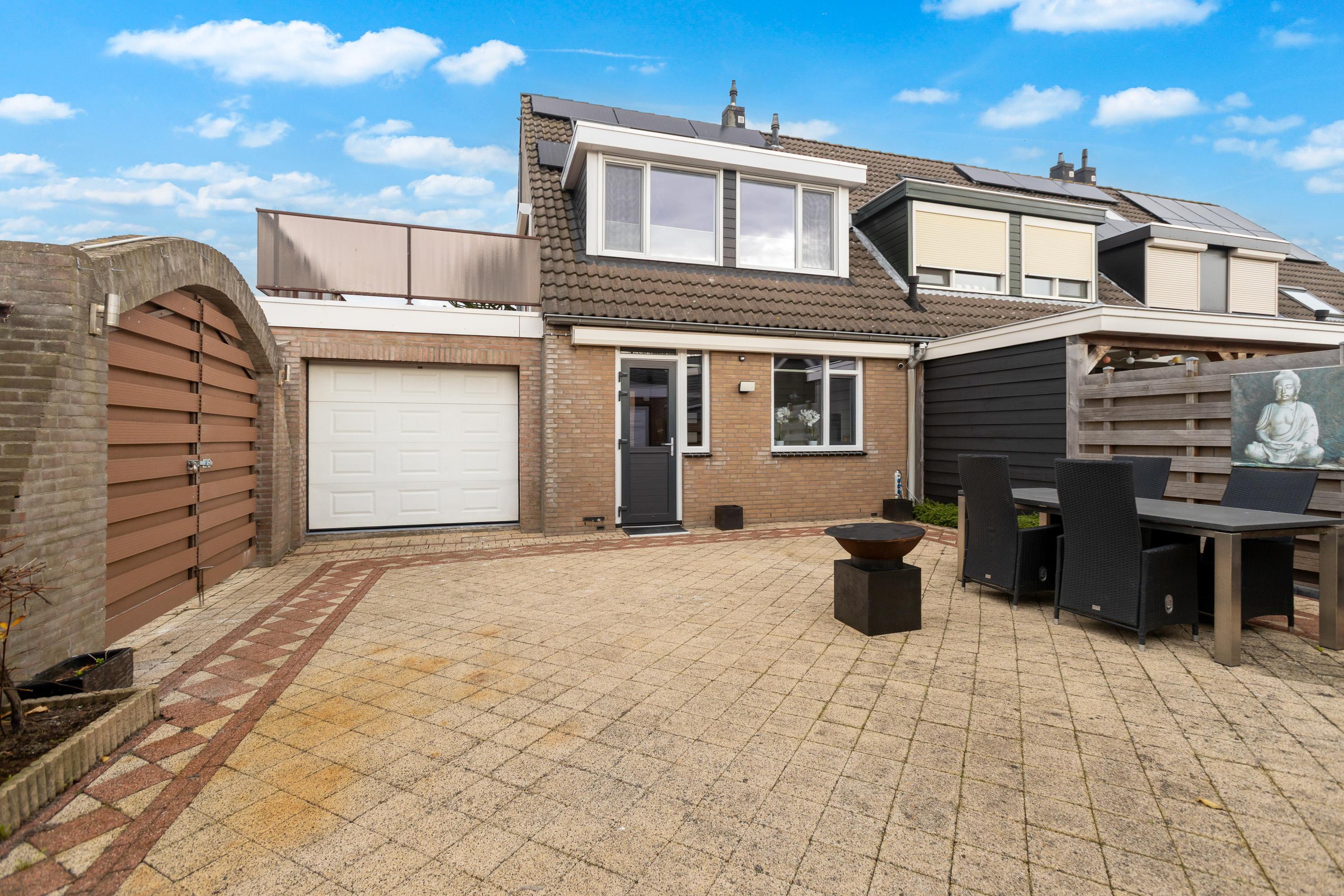 Rondom de woning ligt een verzorgde tuin met veel privacy. Aan de zijkant bevindt zich een eigen uitrit naar de straat en toegang tot maar liefst drie garages: twee vrijstaande en één aangebouwde. Deze zeldzame hoeveelheid bergruimte maakt de woning ideaal voor hobbyisten, zelfstandigen of verzamelaars. De garages zijn uitstekend bereikbaar en bieden volop gebruiksmogelijkheden – van opslag tot werkplaats.