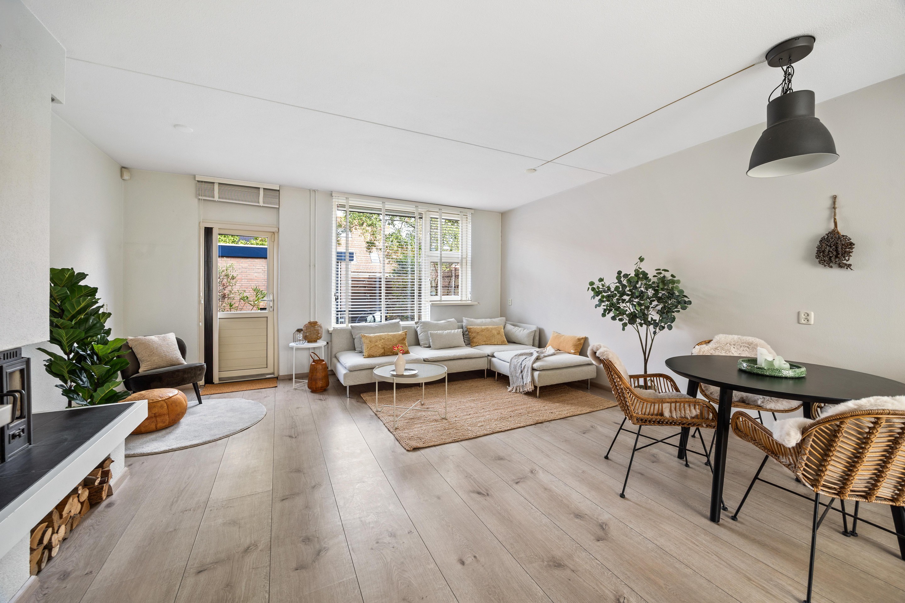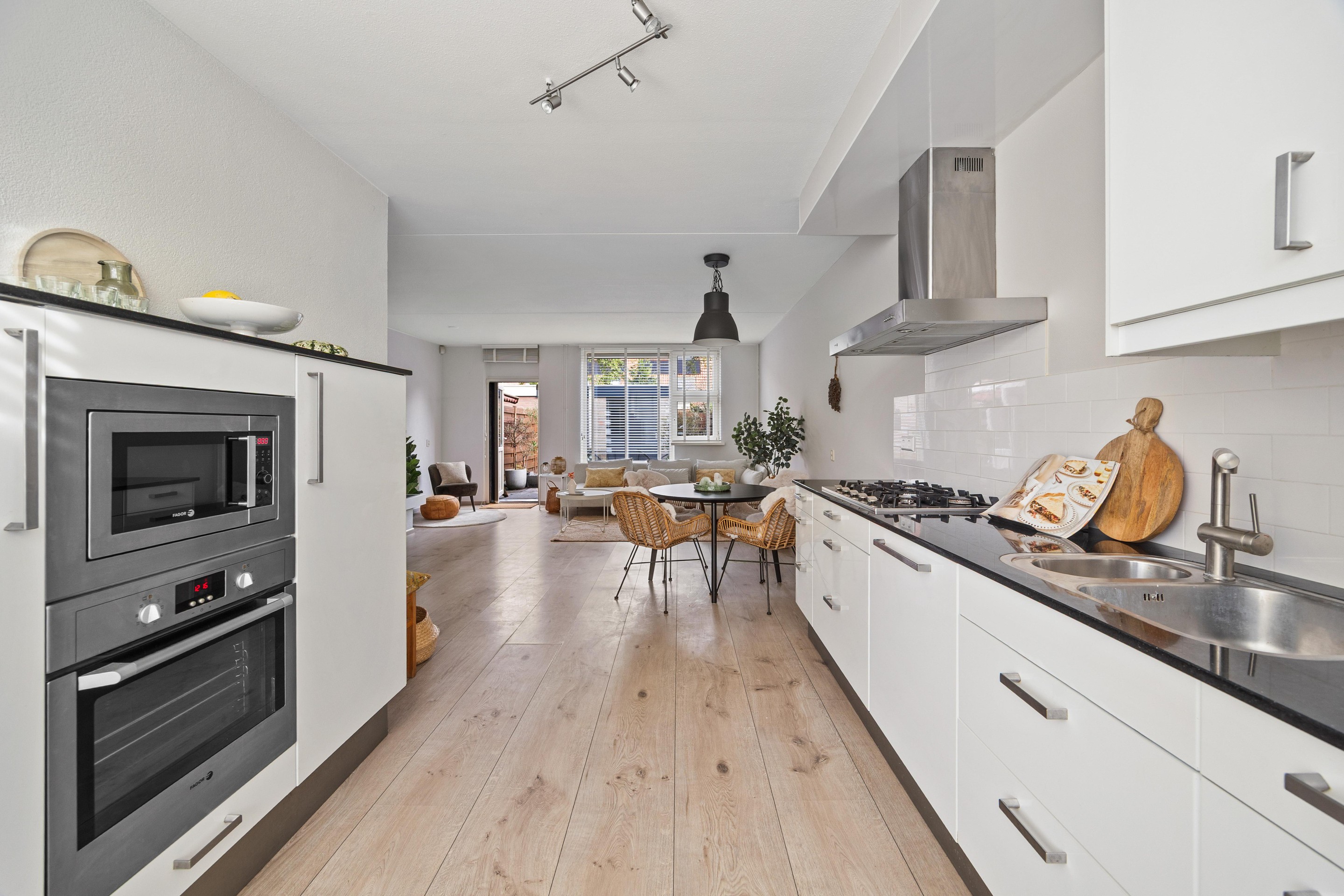 Entree, ruime hal met toilet met fonteintje, meterkast, trapopgang naar de eerste verdieping. Aan de voorzijde van de woning is de moderne open keuken gesitueerd voorzien van diverse inbouwapparatuur. Lichte, tuingerichte woonkamer met ruime trapkast. Vanuit de woonkamer toegang tot de achtertuin van bijna 8 meter diep. Aparte berging met elektra en achterom aanwezig.