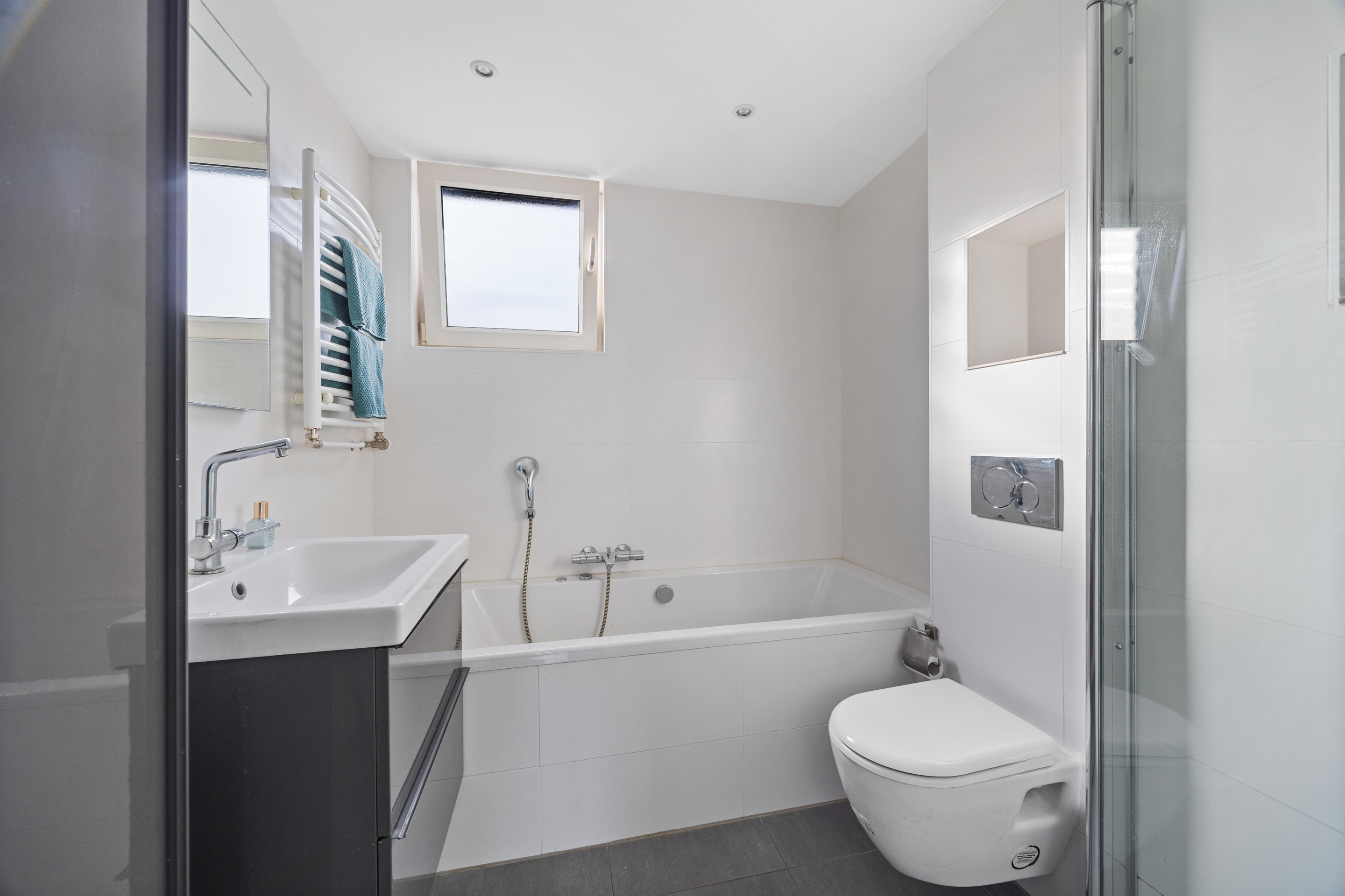 Royale overloop, ruime moderne badkamer voorzien van douche, bubbelbad, wastafel en tweede toilet. En twee slaapkamers aan de achterzijde, een ruime voorslaapkamer.