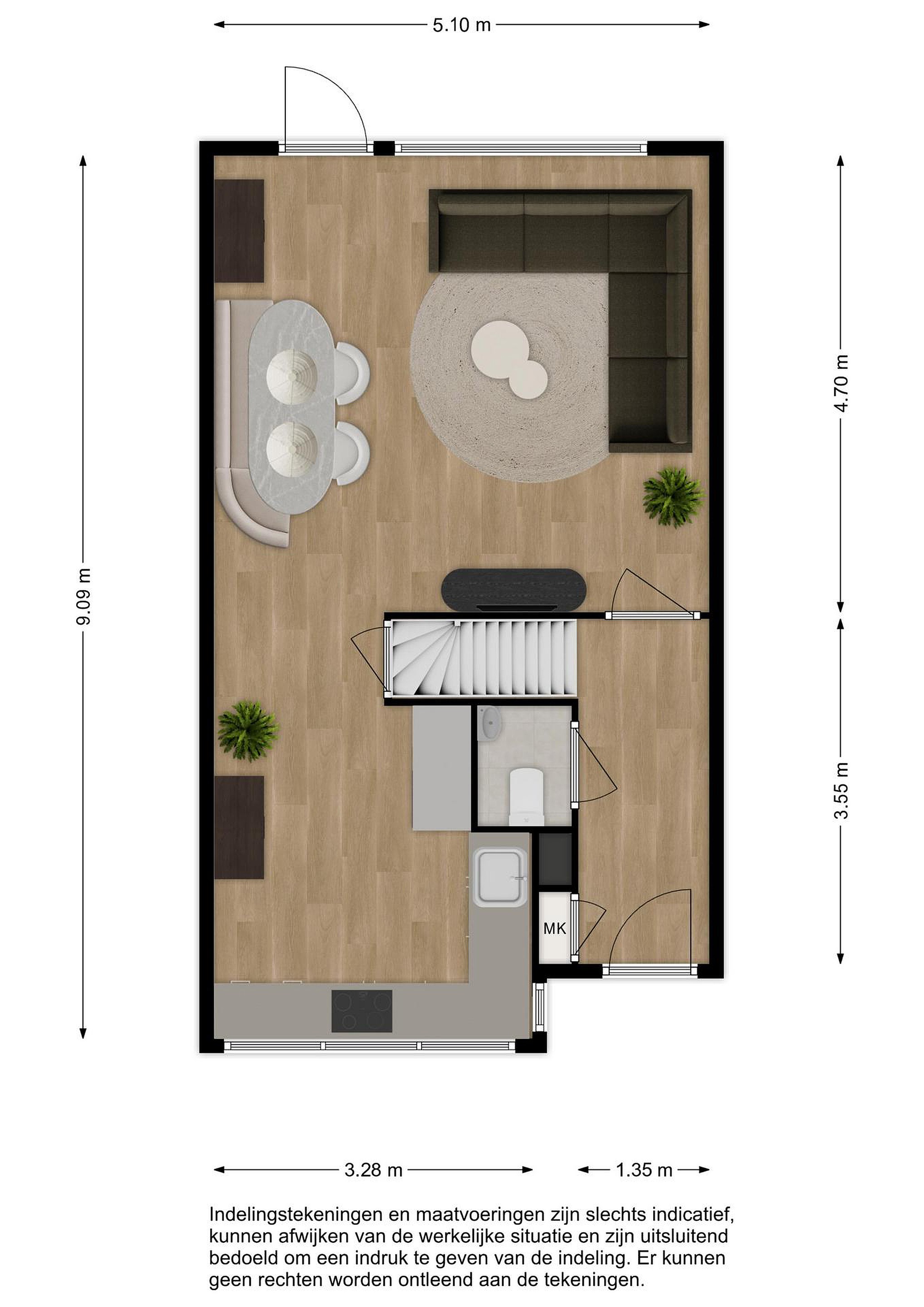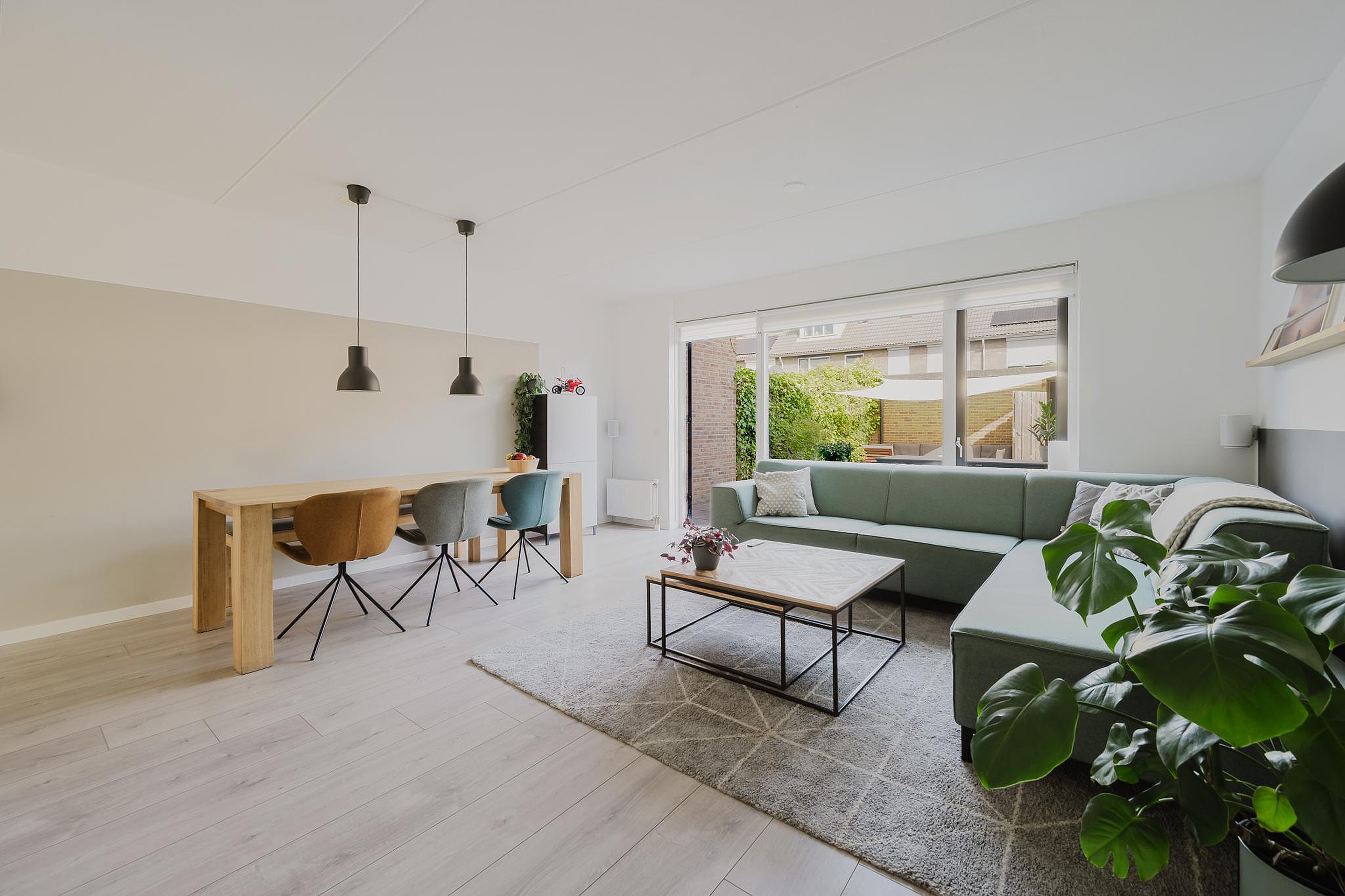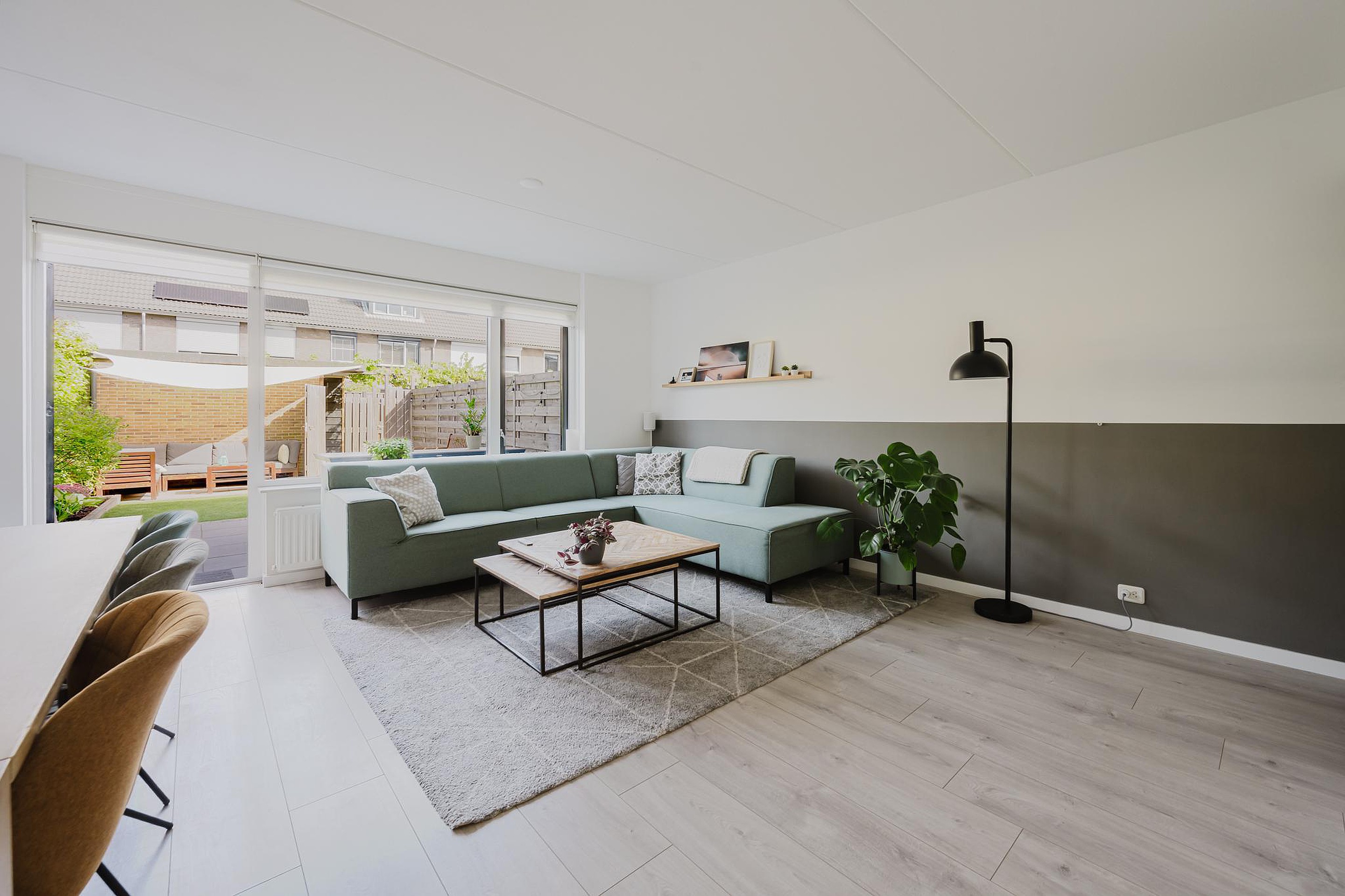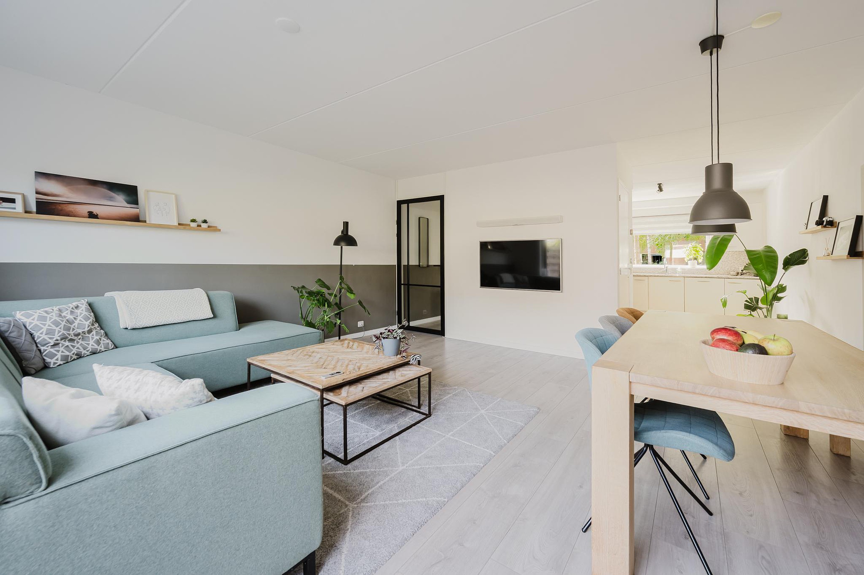De woonkamer is voorzien van een moderne binnendeur welke een luxe uitstraling geeft. De deur naar de trapkast is verplaatst naar de keuken waardoor er meerdere mogelijkheden zijn voor de opstelling in de woonkamer.