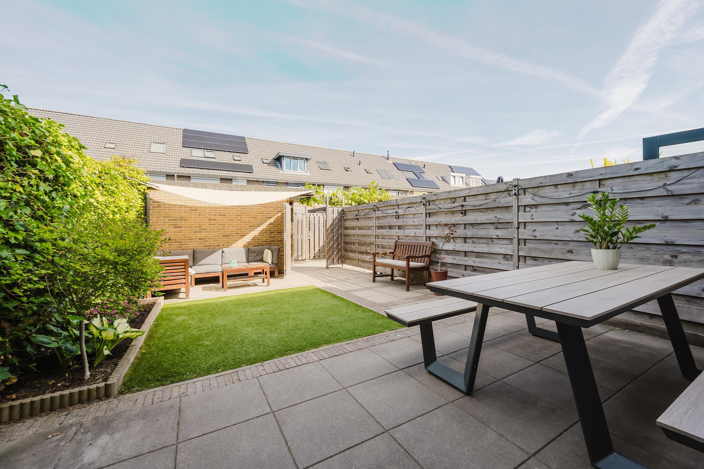 Via de tuingerichte woonkamer bereik je de achtertuin gelegen op het noorden. De tuin is volledig gemoderniseerd, heeft een vrijstaande stenen berging en ook is de tuin bereikbaar via een achterom.