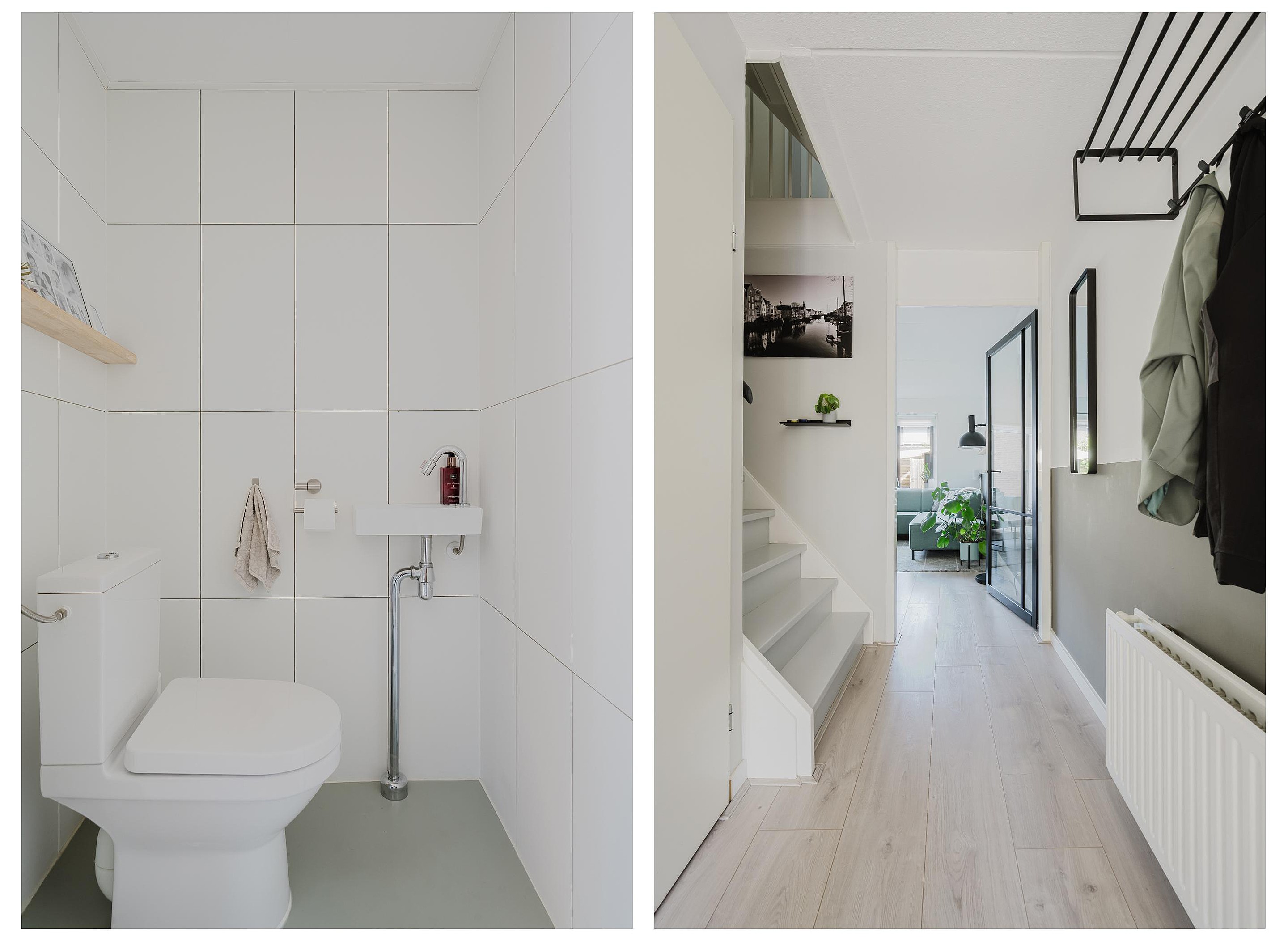 De hal biedt toegang tot de meterkast, het toilet, de trapopgang en de woonkamer.