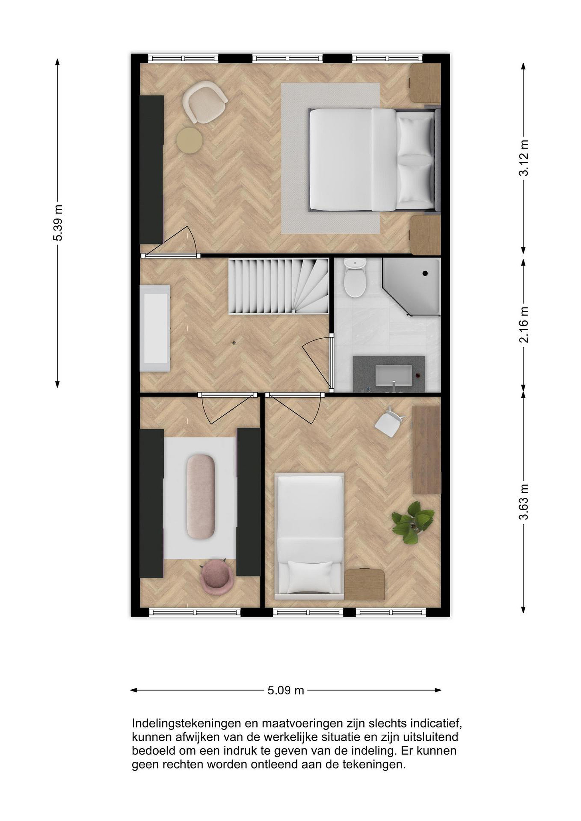 De volledige eerste verdieping is voorzien van een stijlvolle laminaatvloer en heeft een strak gestuukte wandafwerking.