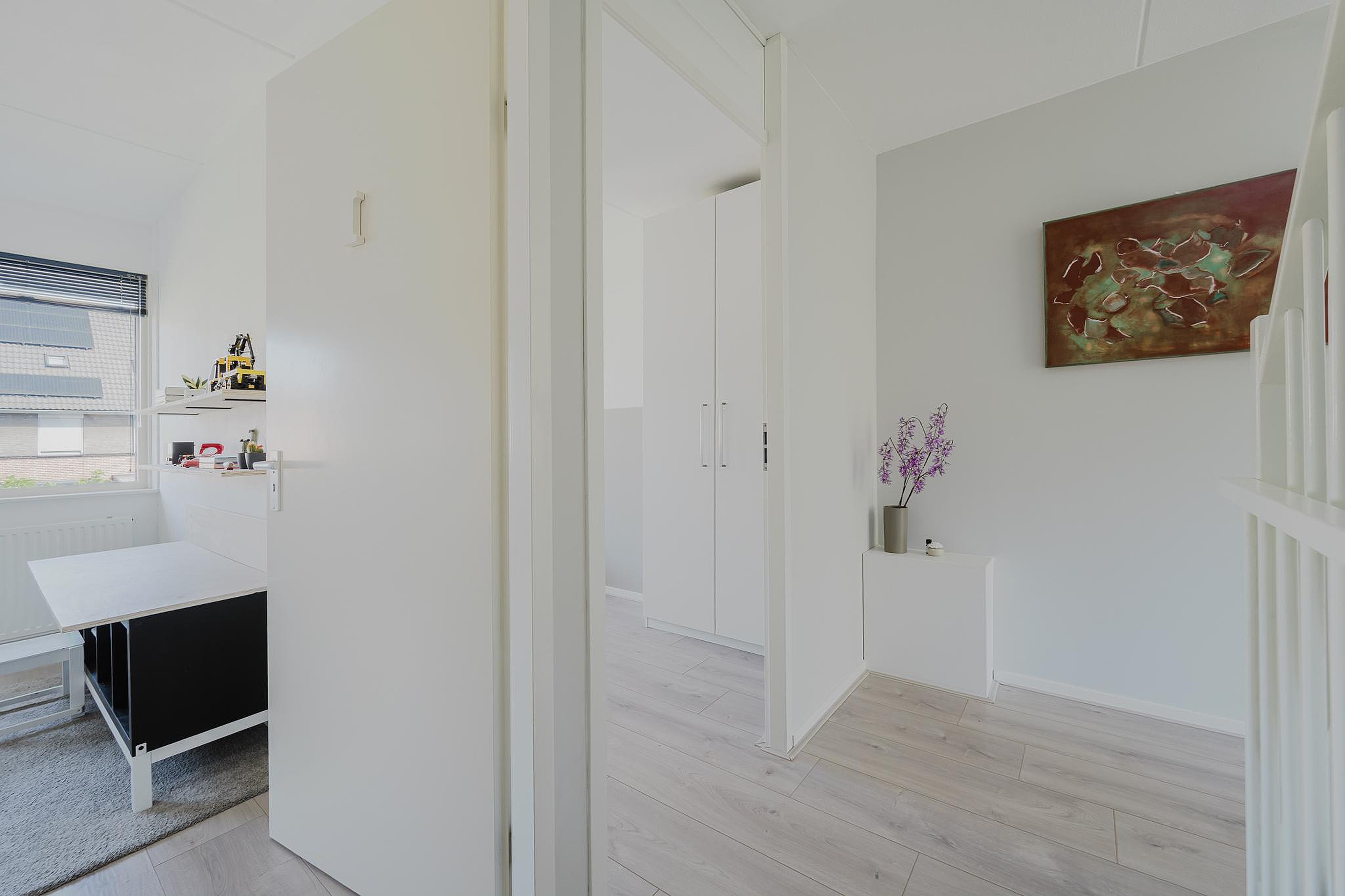 Via de trapopgang bereik je de eerste verdieping welke is verdeeld in een overloop met trapopgang naar de tweede verdieping, drie ruime slaapkamers en de badkamer.