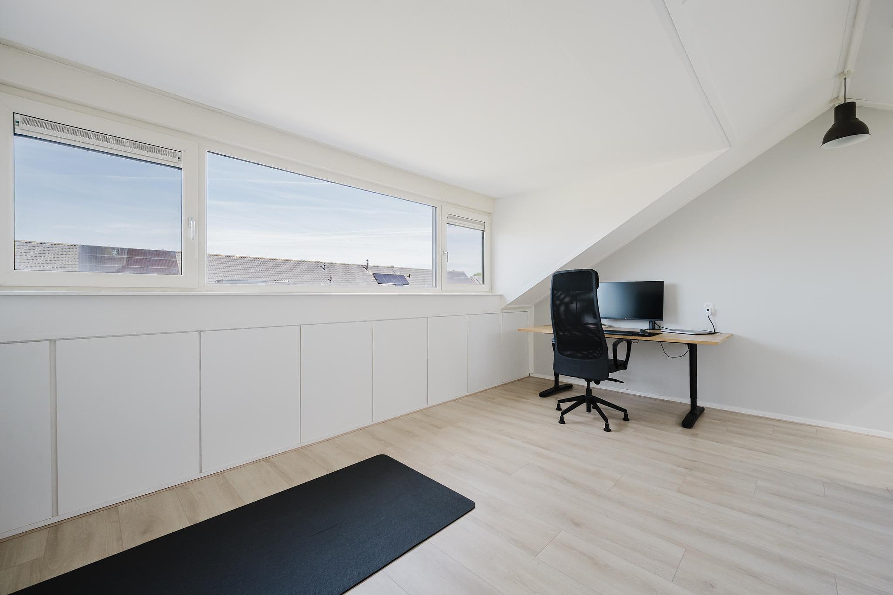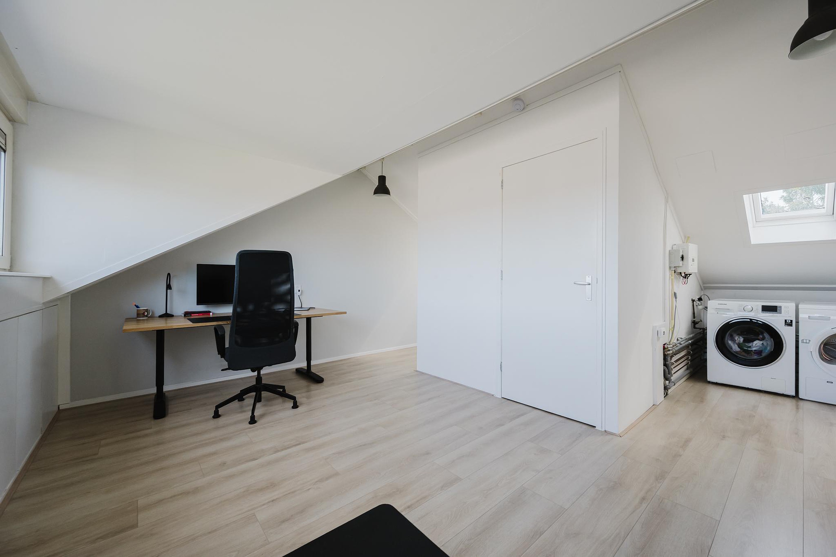 De dakkapel is voorzien van elektrisch bedienbare rolluiken. Tevens zijn op deze verdieping de cv-installatie, de aansluiting voor wasmachine- en droger, de mechanische ventilatie en de omvormer voor de zonnepanelen gesitueerd.