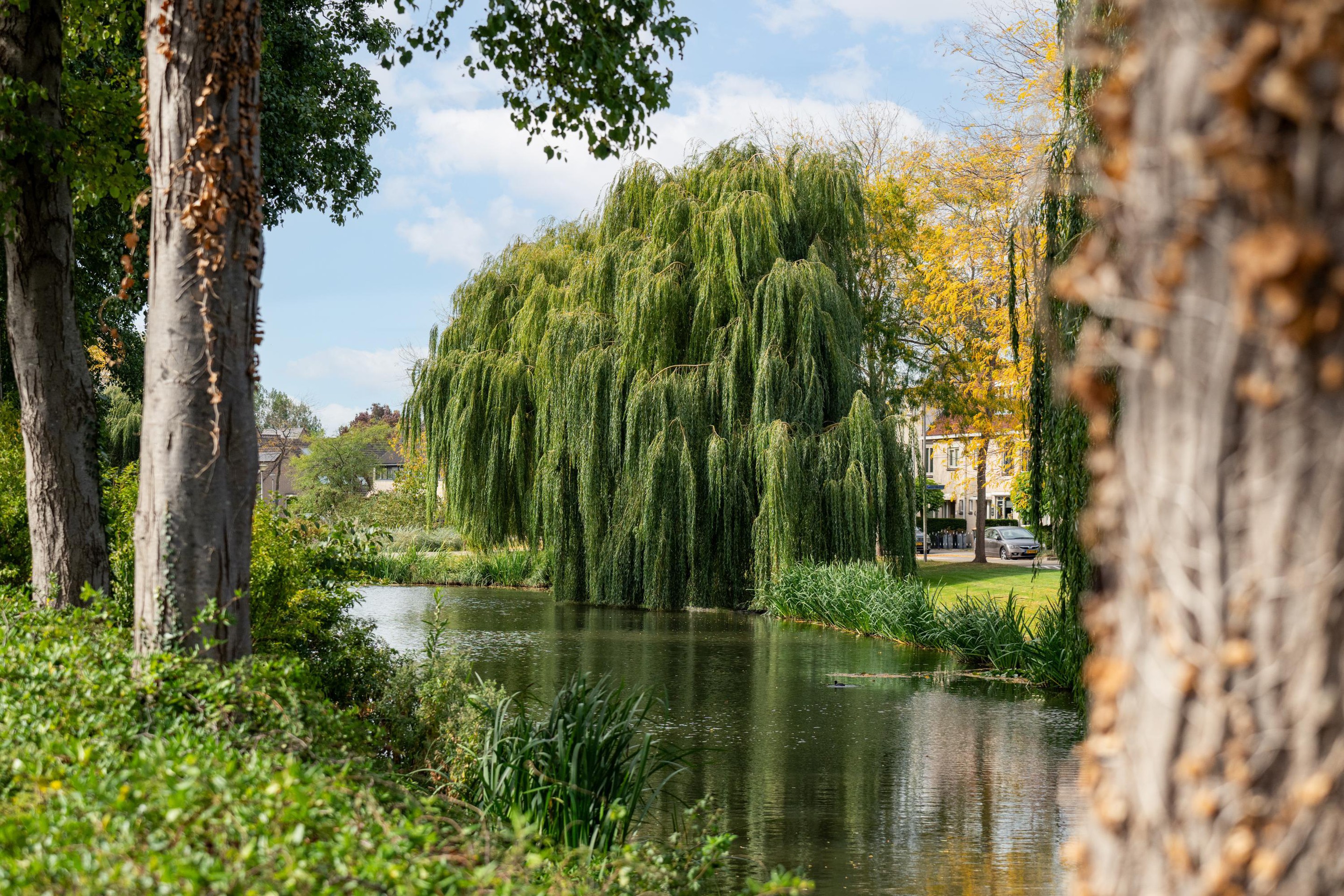Aan de voorzijde bevindt zich de ruime keuken, voorzien van diverse inbouwapparatuur en met een vrij uitzicht over het groen en een klein watertje.