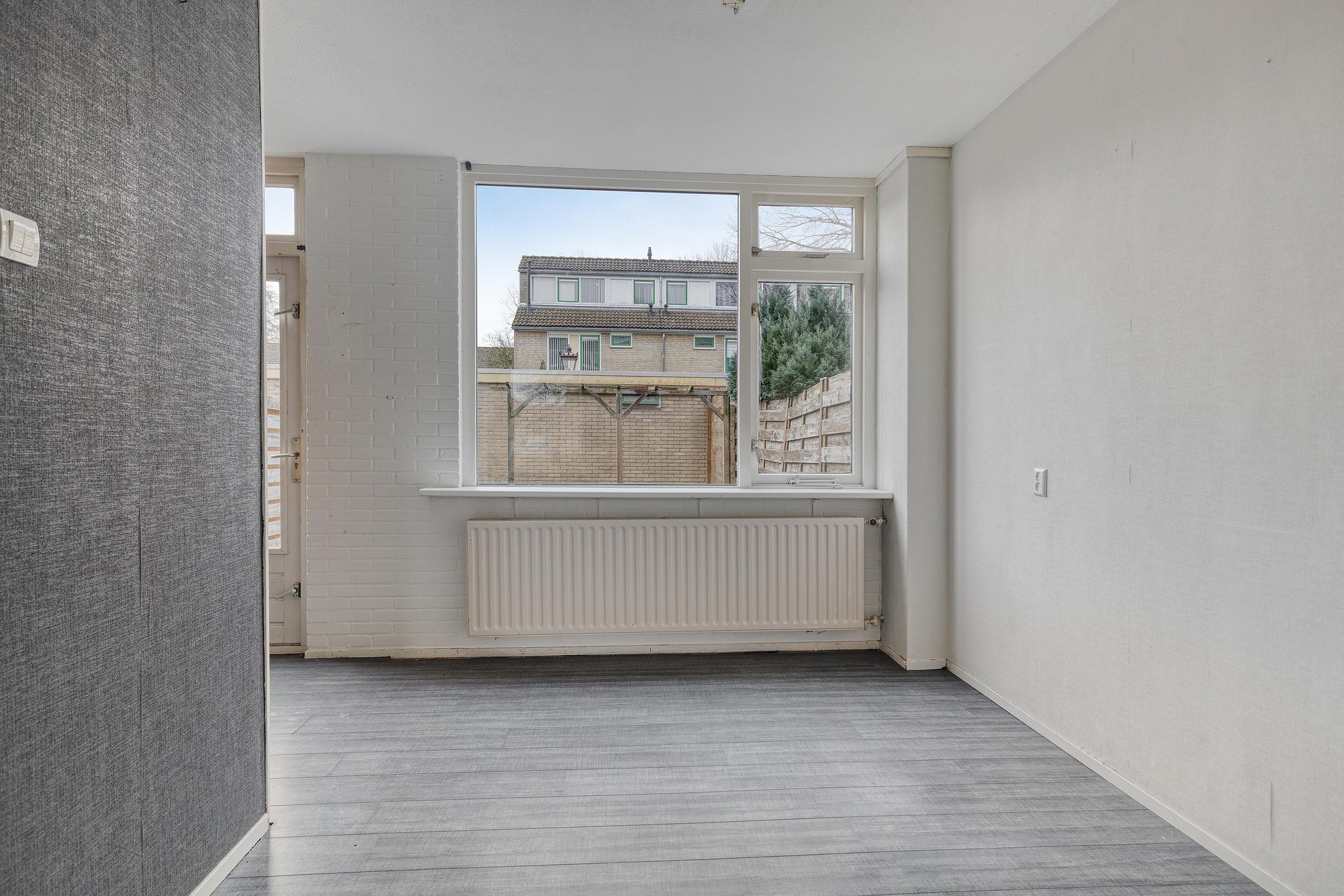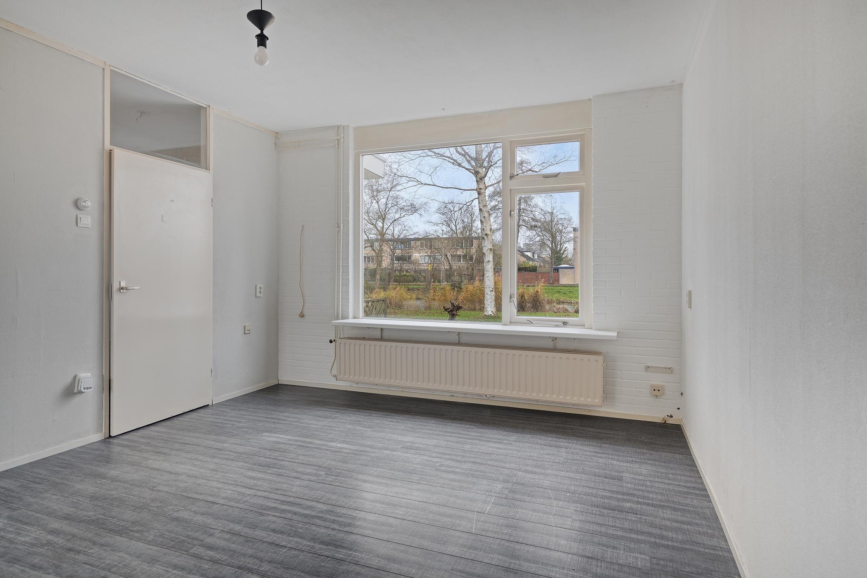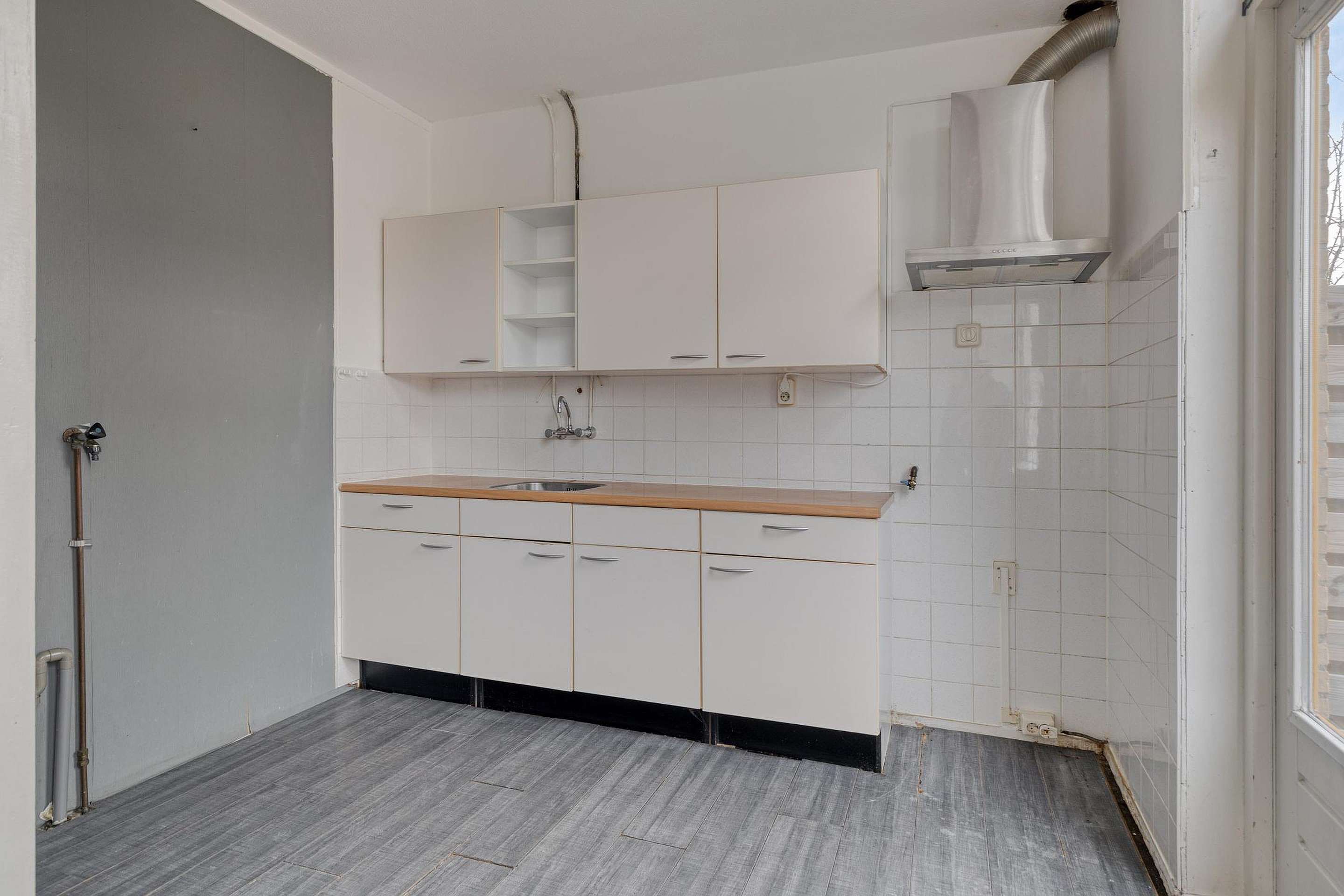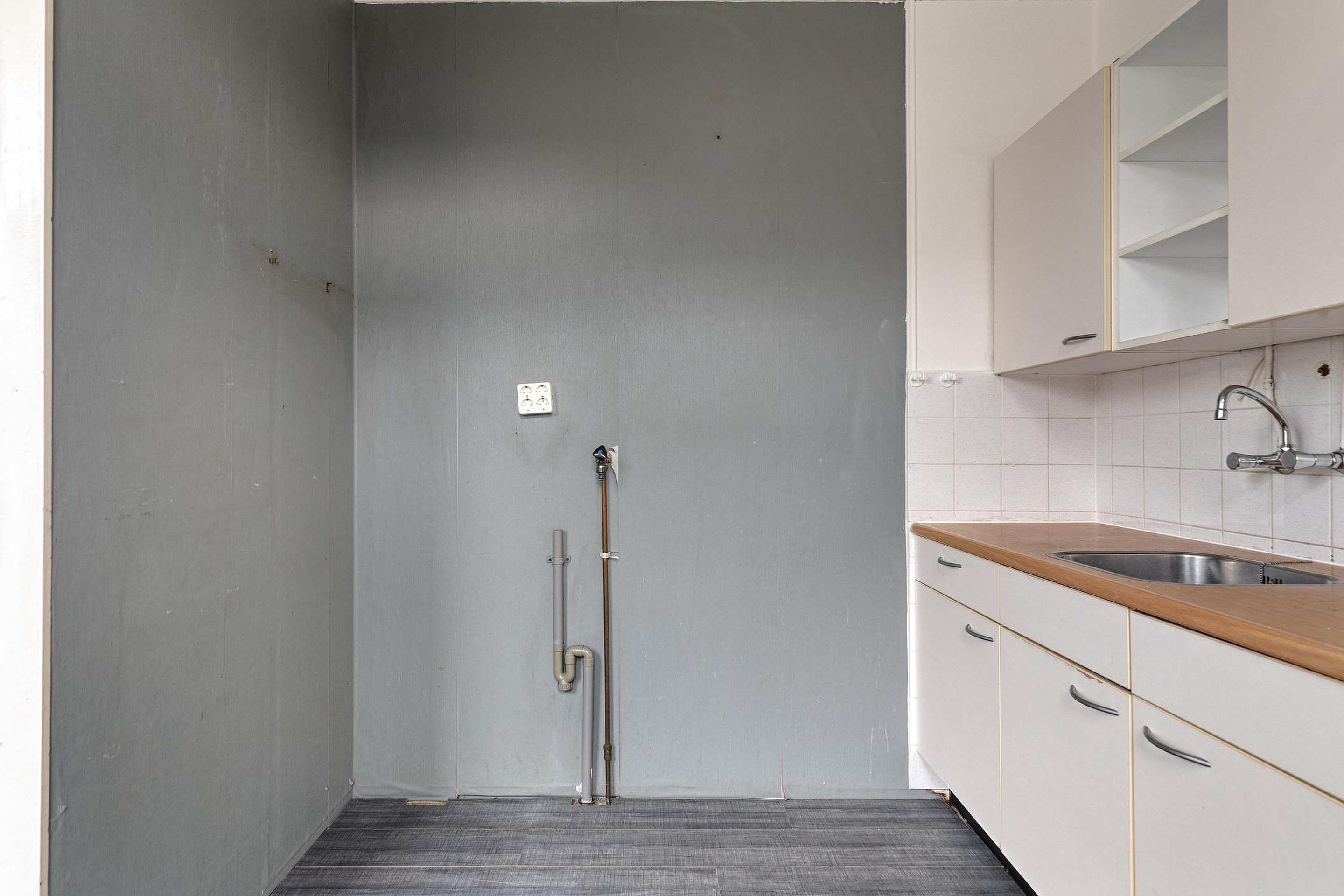 De keuken grenst aan de woonkamer en is toe aan vernieuwing – een perfecte kans om jouw ideale kookruimte te realiseren. Denk aan een moderne open keuken of een praktische indeling die past bij jouw woonstijl.