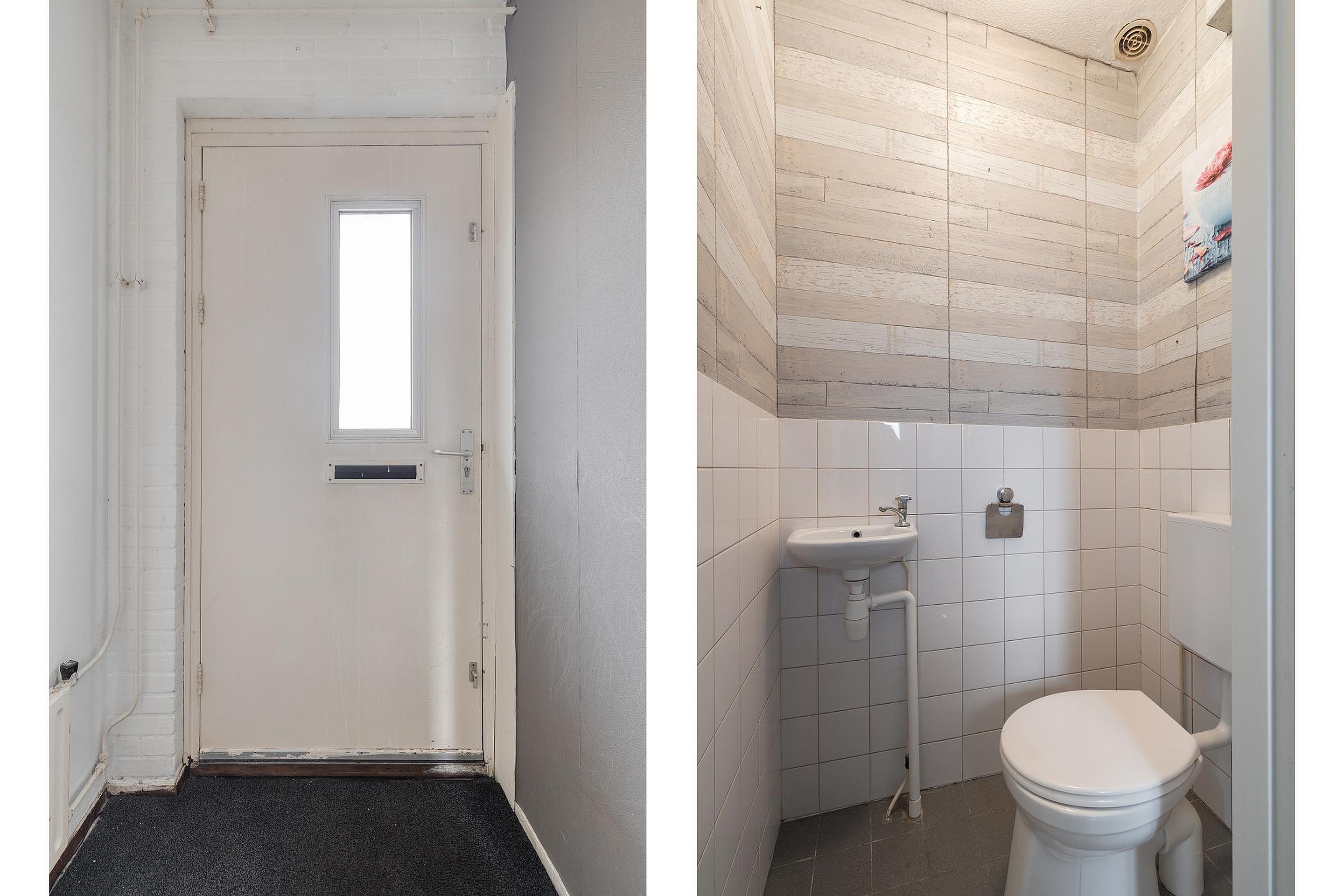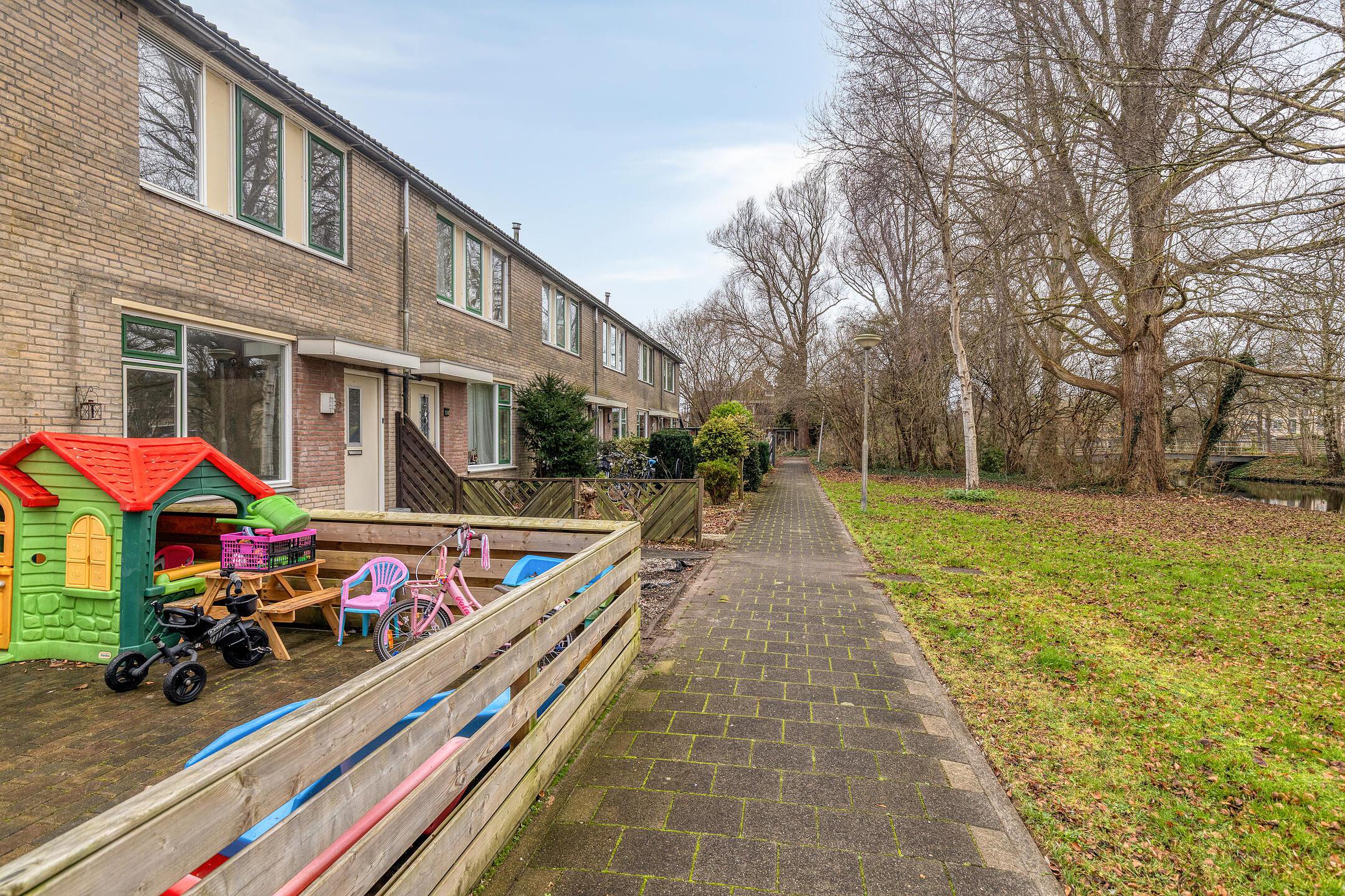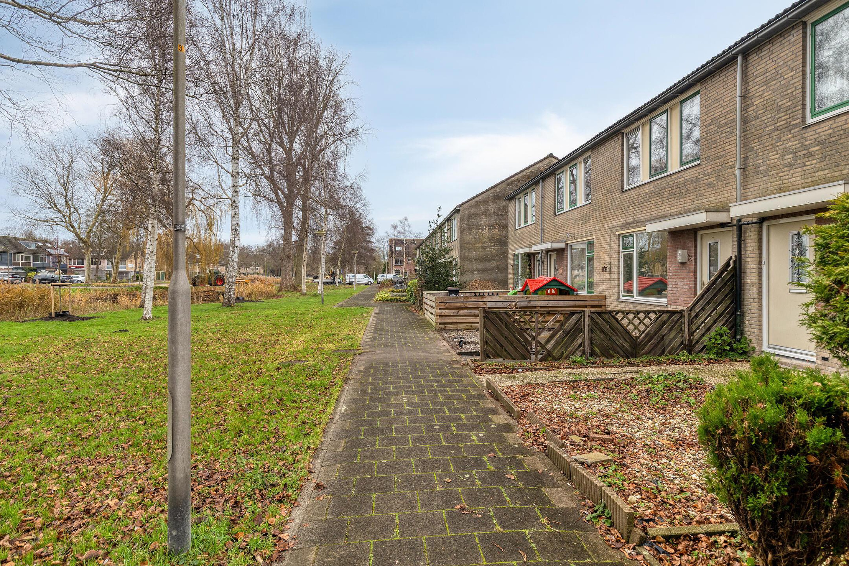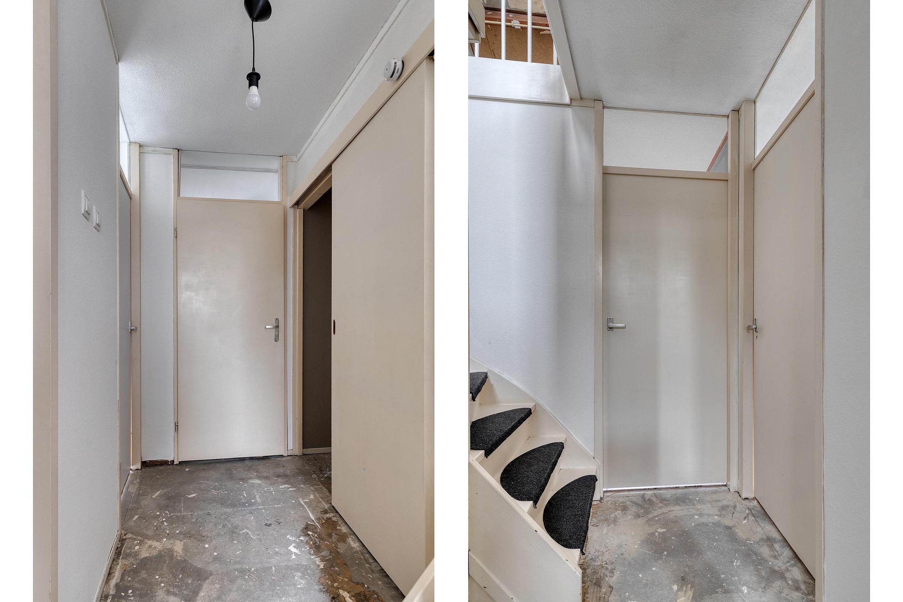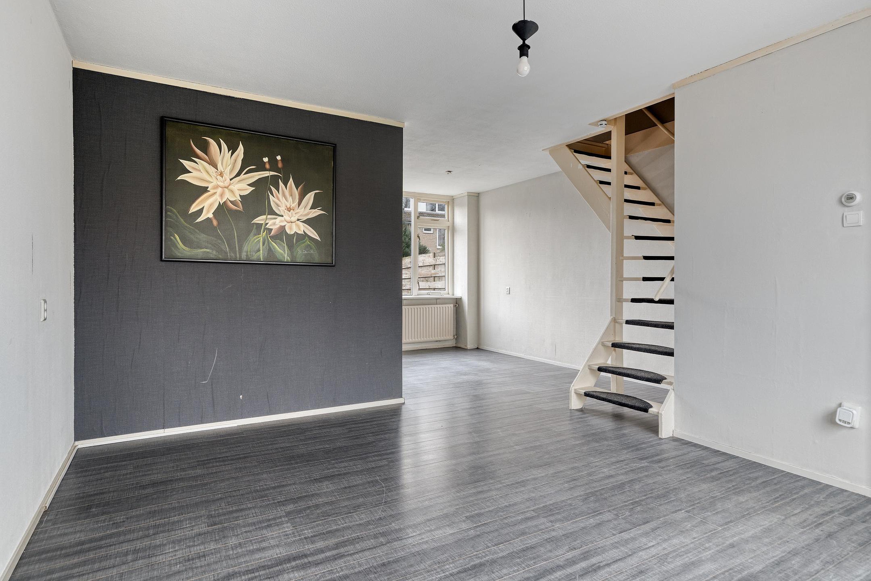 De woning ligt aan een rustige groenstrook met voetpad, terwijl achter de woning voldoende parkeergelegenheid aanwezig is. Via de voordeur kom je in de hal met plek voor een kapstok, toegang tot het toilet en de woonkamer met open trap naar de eerste verdieping.