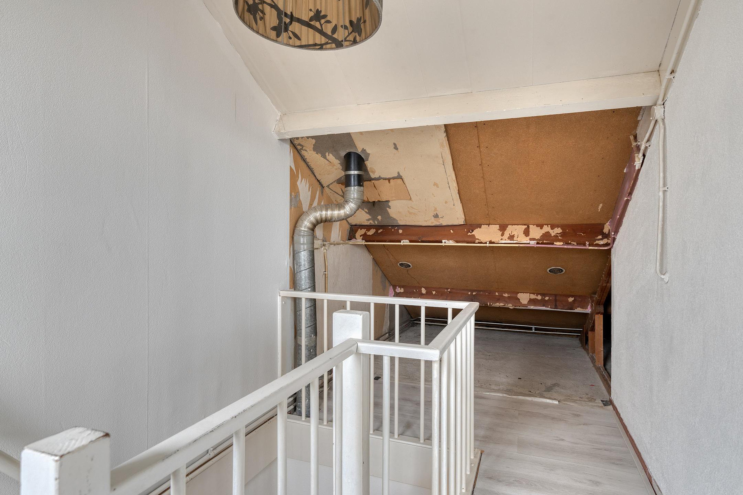 De vaste trap brengt je naar de ruime zolder en tevens vierde slaapkamer. Deze extra verdieping is perfect als werkruimte, speelkamer of voor het opbergen van seizoensspullen.