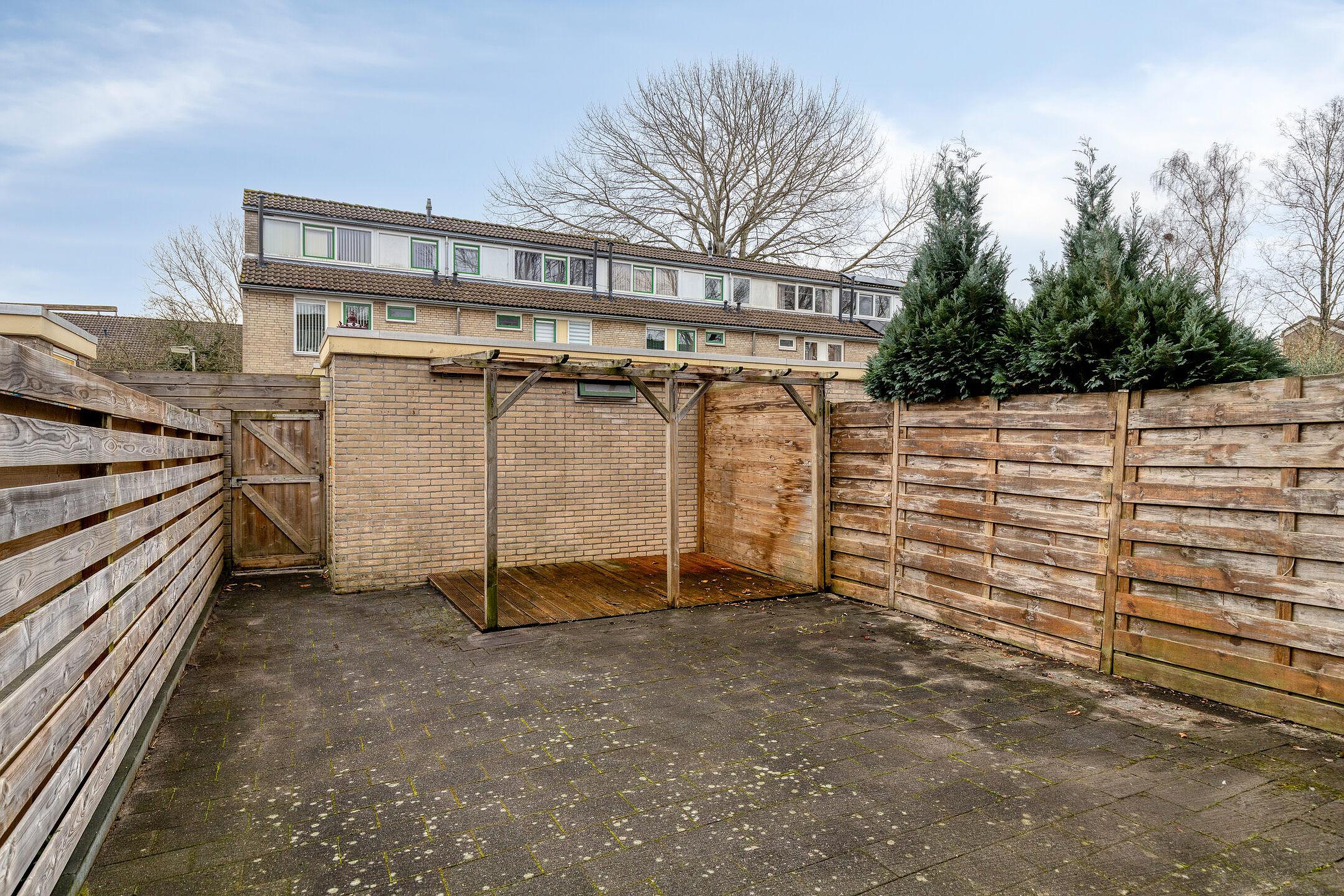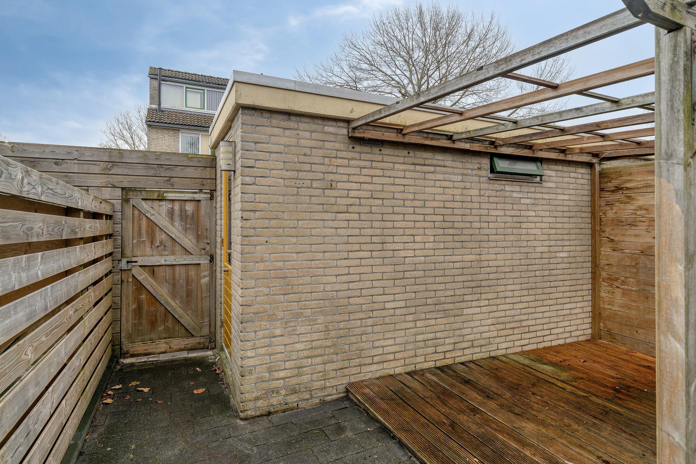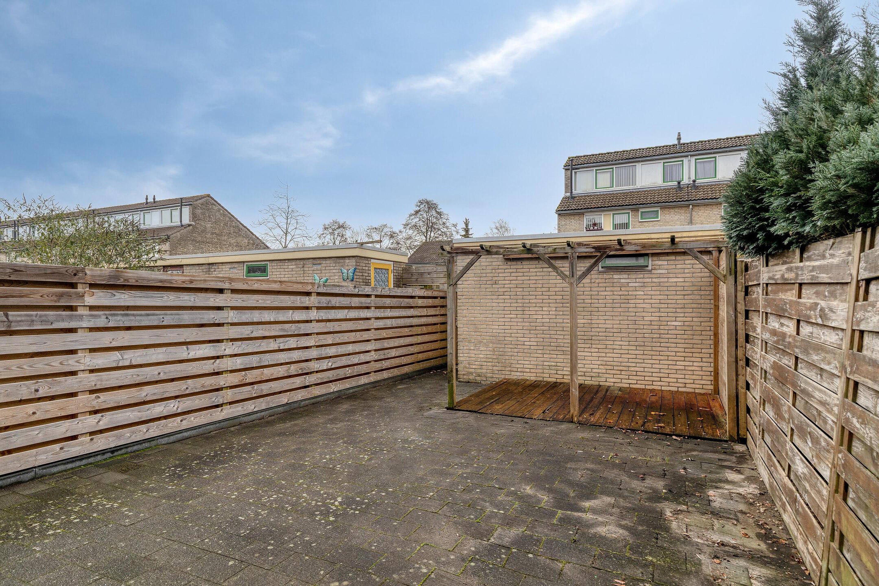 De zonnige achtertuin heeft een open ligging en biedt volop ruimte voor een loungehoek of buitentafel. De berging is ideaal voor fietsen en tuinspullen, en via de achterom bereik je eenvoudig de tuin.