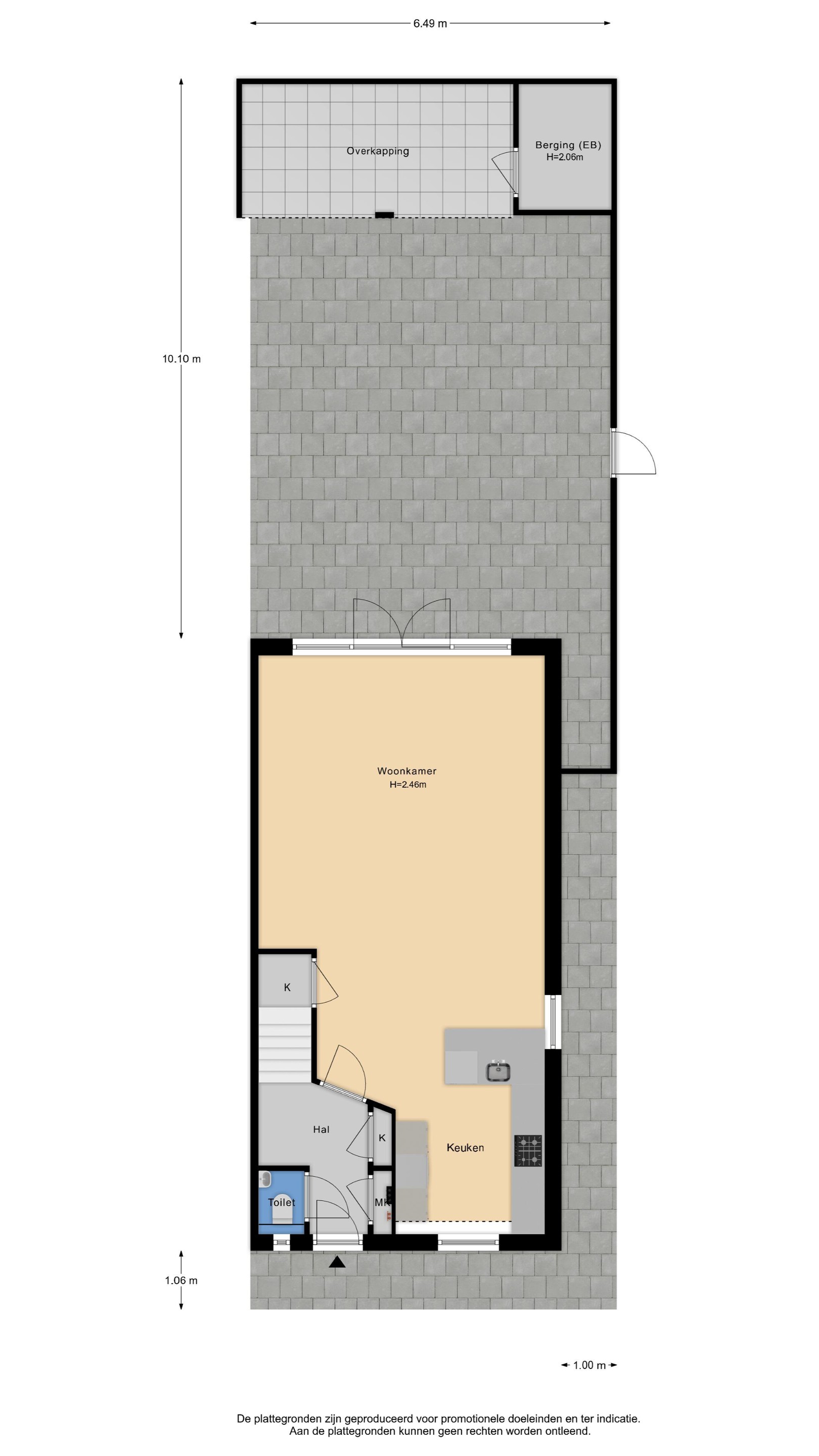 Entree, hal met meterkast/opstelling stadsverwarmingsunit, modern toilet, trapopgang naar verdieping, luxe straatgerichte keuken, voorzien van diverse inbouwapparatuur en een spoeleiland met Quooker en bar, extra lichtinval door het zijraam, zeer ruime uitgebouwde woonkamer met openslaande deuren naar de diepe achtertuin op het zuidwesten. De begane grond is voorzien van vloerverwarming. De tuin, met zijpoort, heeft verder nog een heerlijke veranda met houtkachel en een berging.