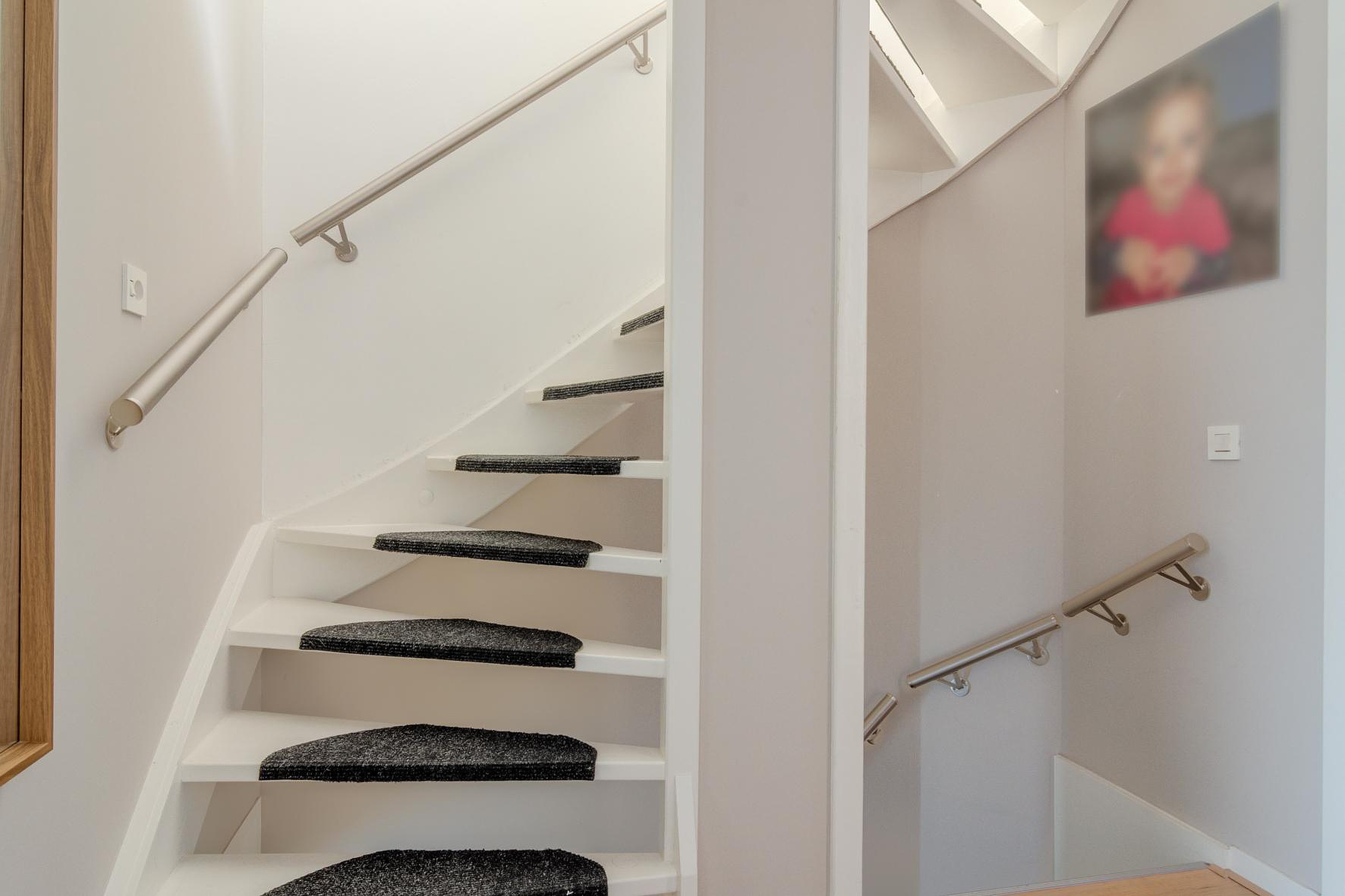 Vaste trap naar de tweede verdieping met overloop, wasruimte en een ruime 3de slaapkamer met dakkapel.