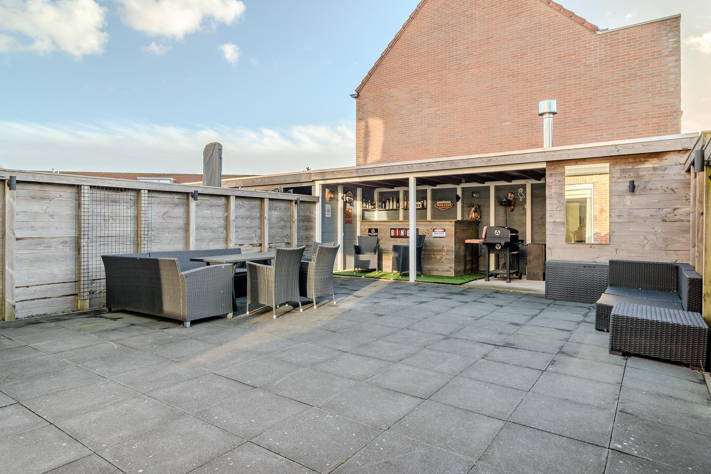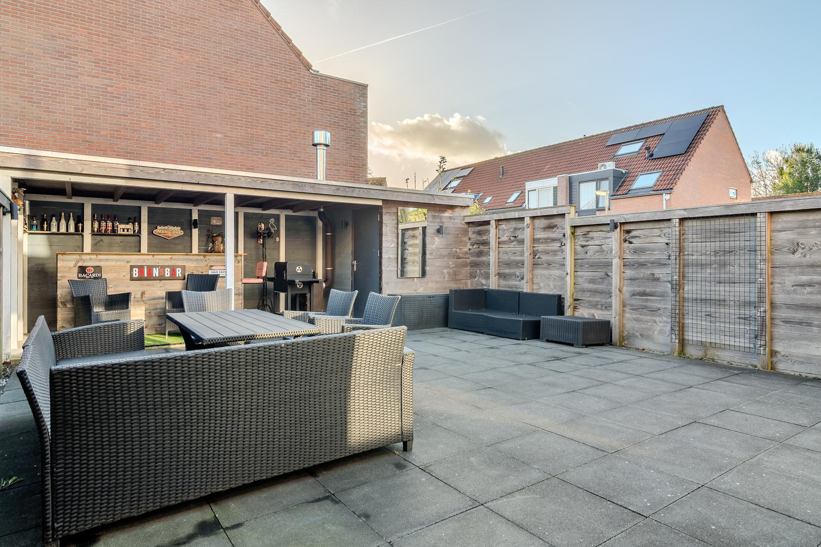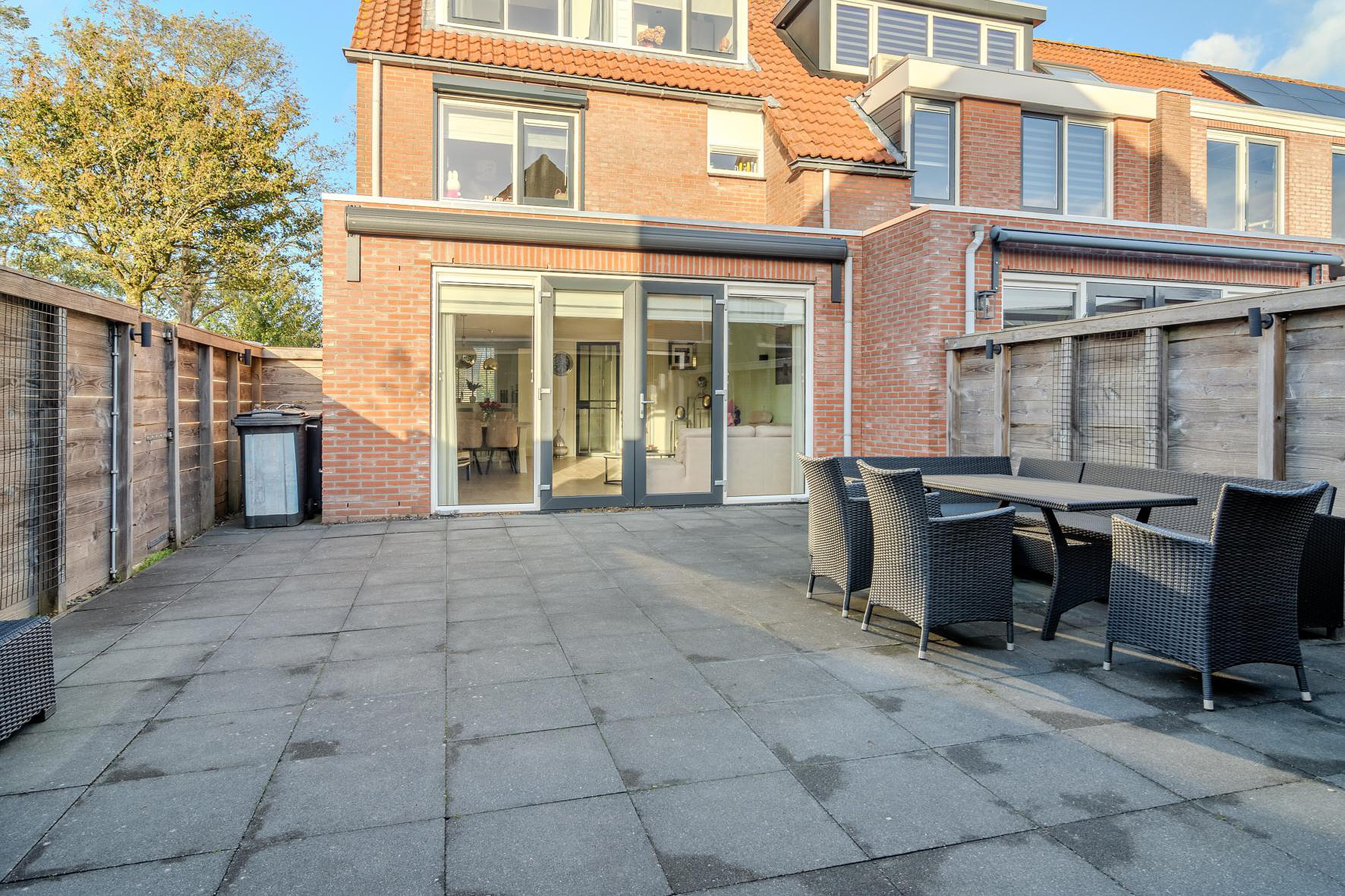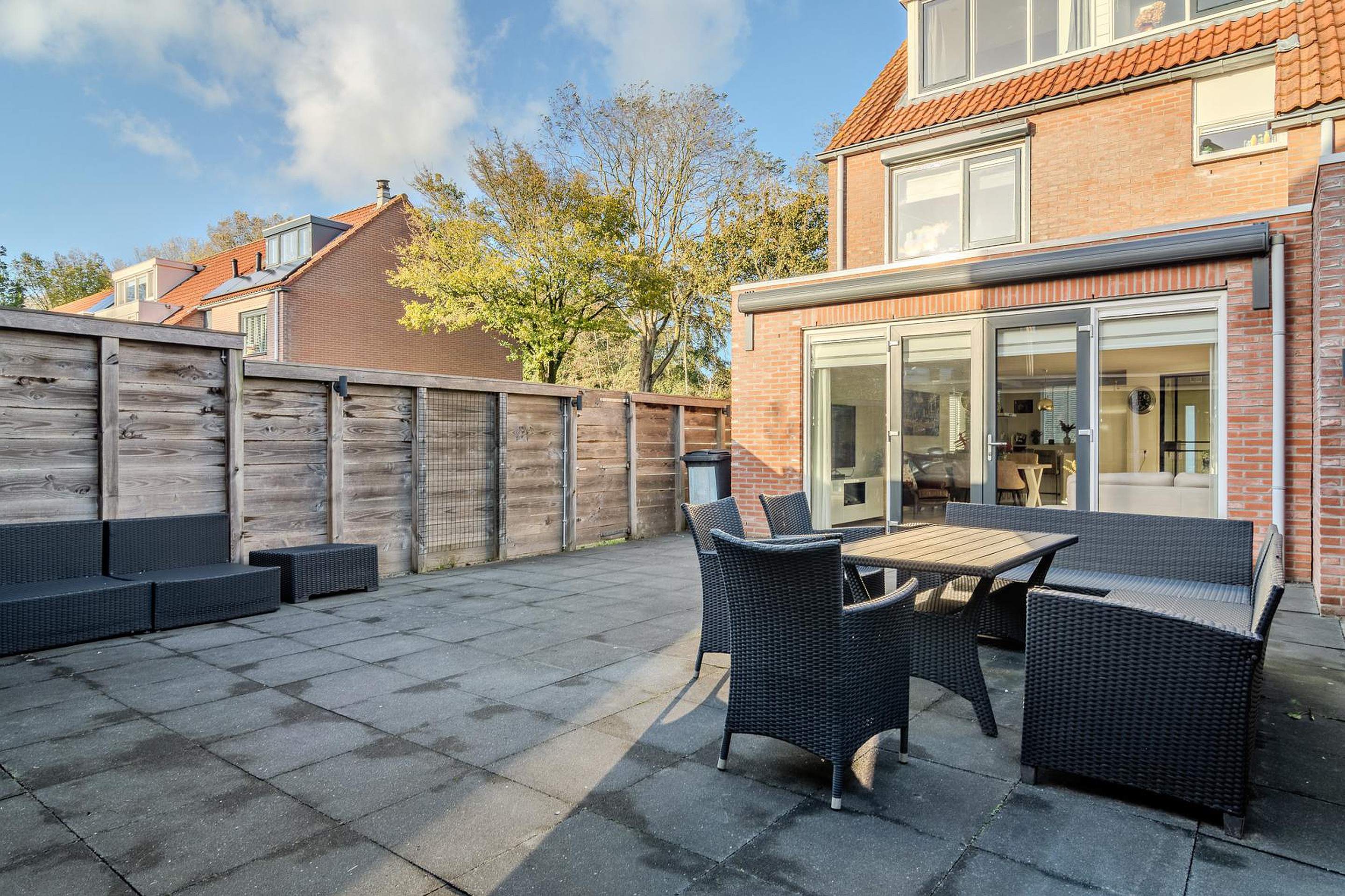 De tuin is een fijne plek om te ontspannen, met een zijpoort, berging en een sfeervolle veranda met houtkachel.