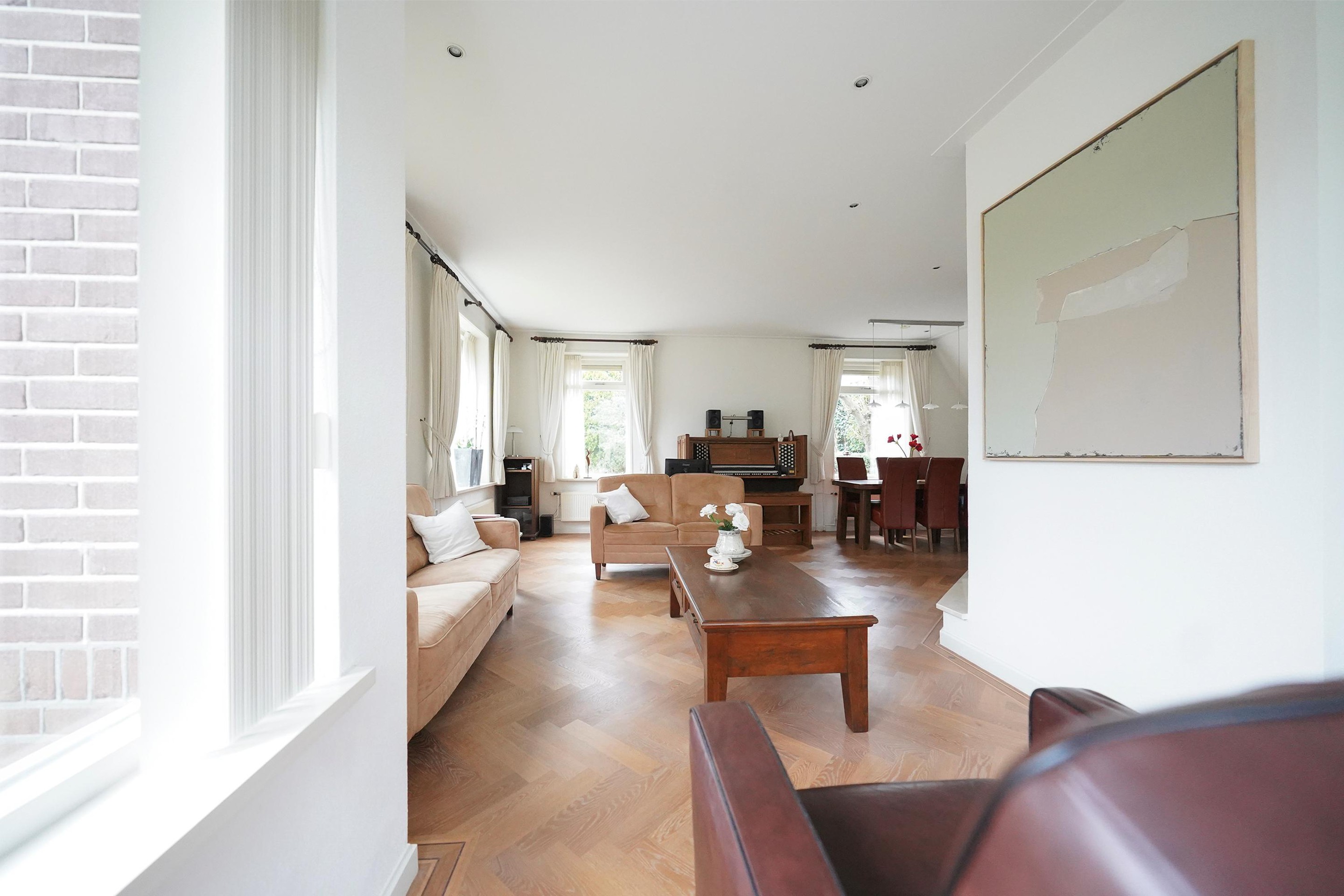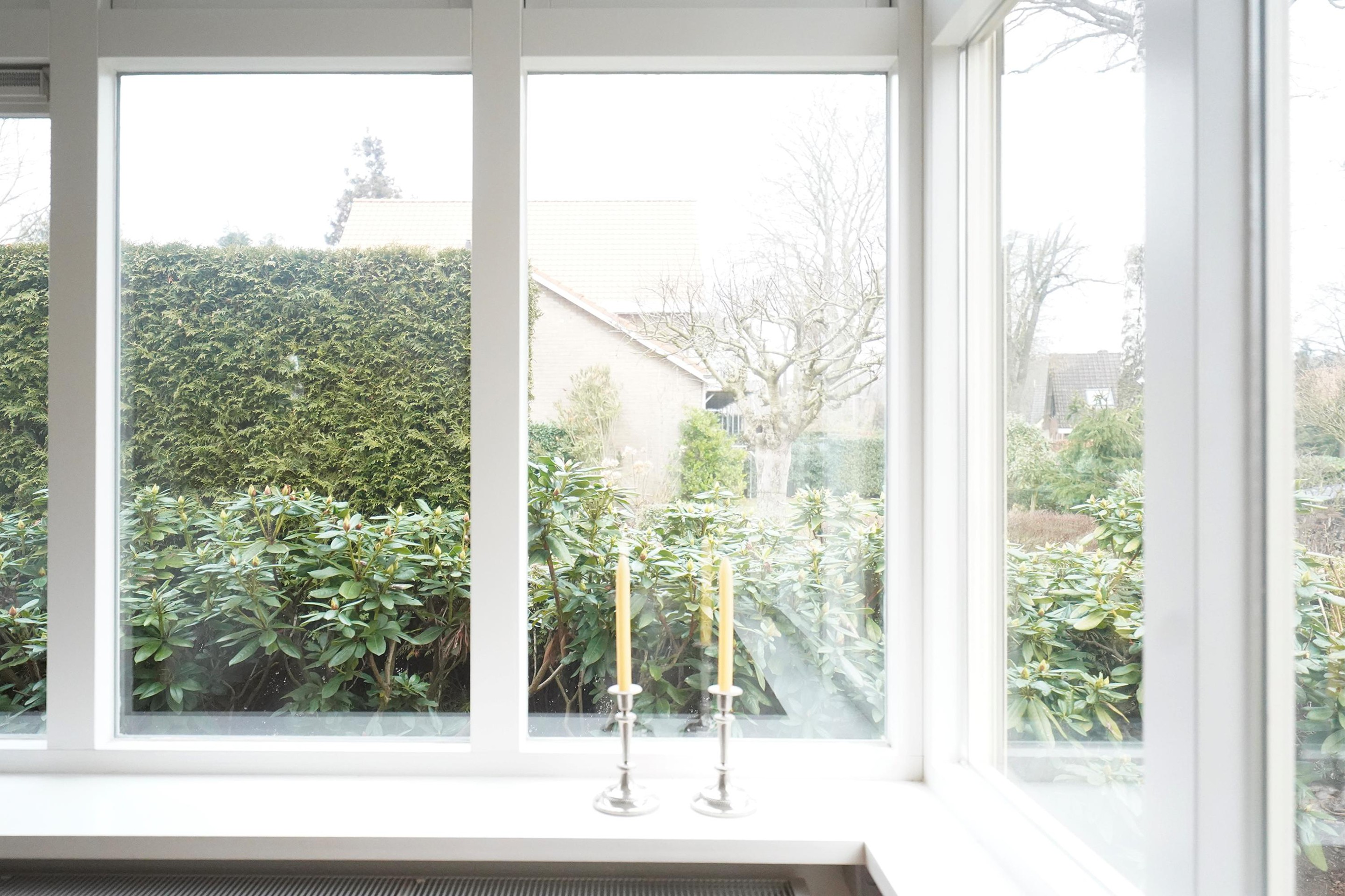 De uitbouw met grote ramen zorgt voor een heerlijke leefruimte vol daglicht. De gashaard brengt gezelligheid, het strak gestucte plafond met dimbare spots rust in het interieur. Dit is zo’n plek waar je automatisch even gaat zitten en denkt: ja… dit voelt goed.