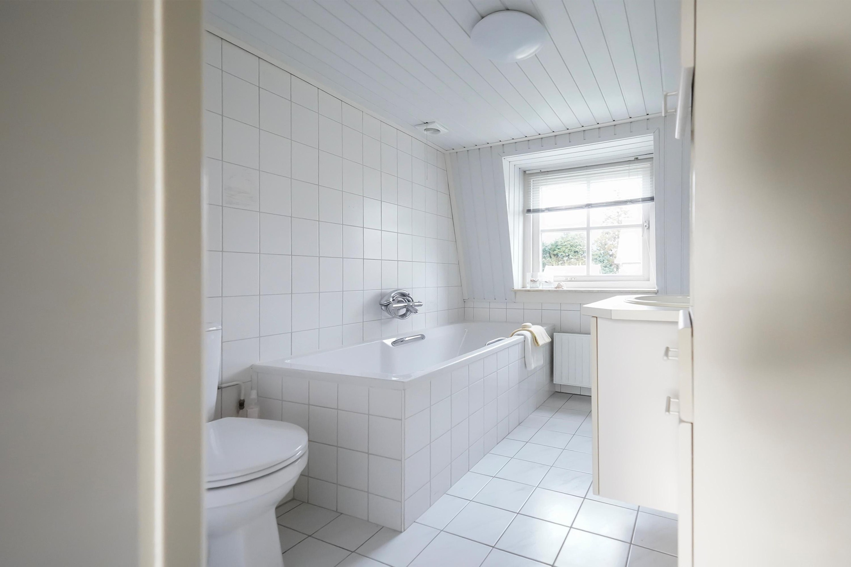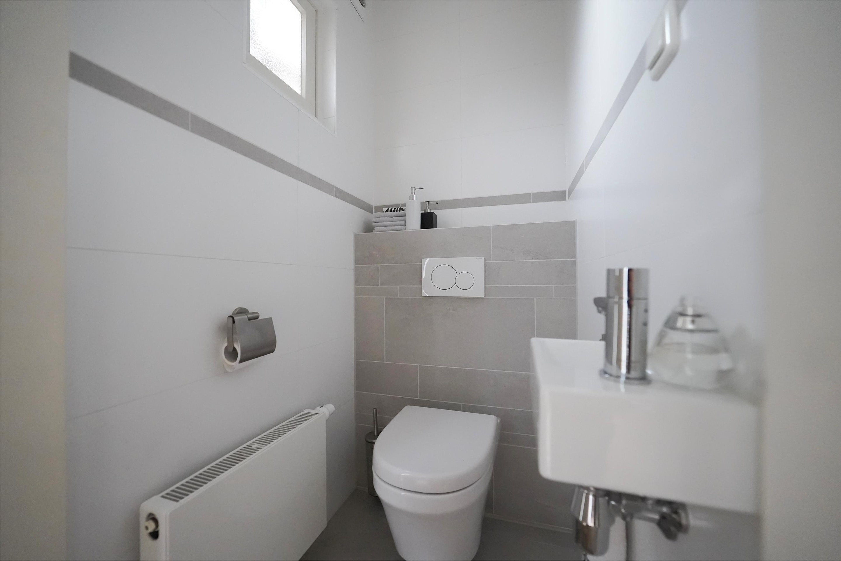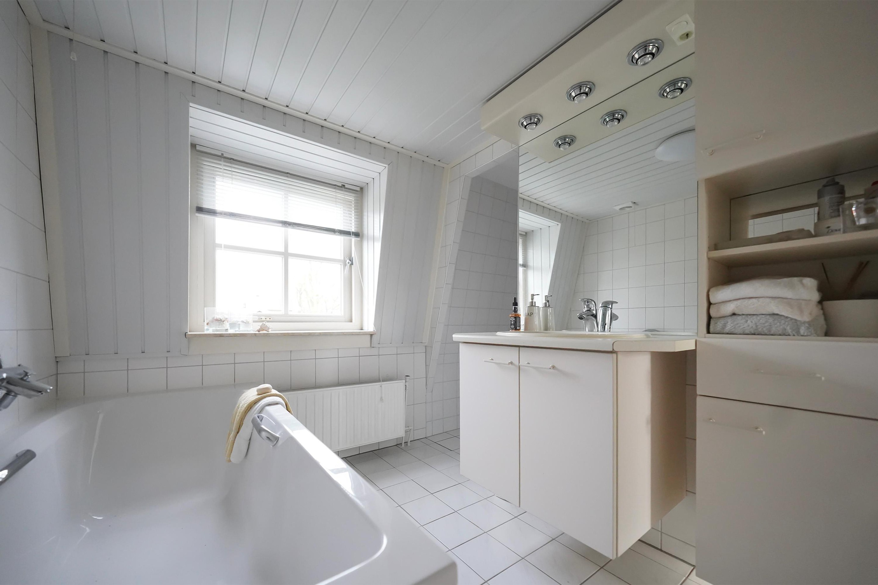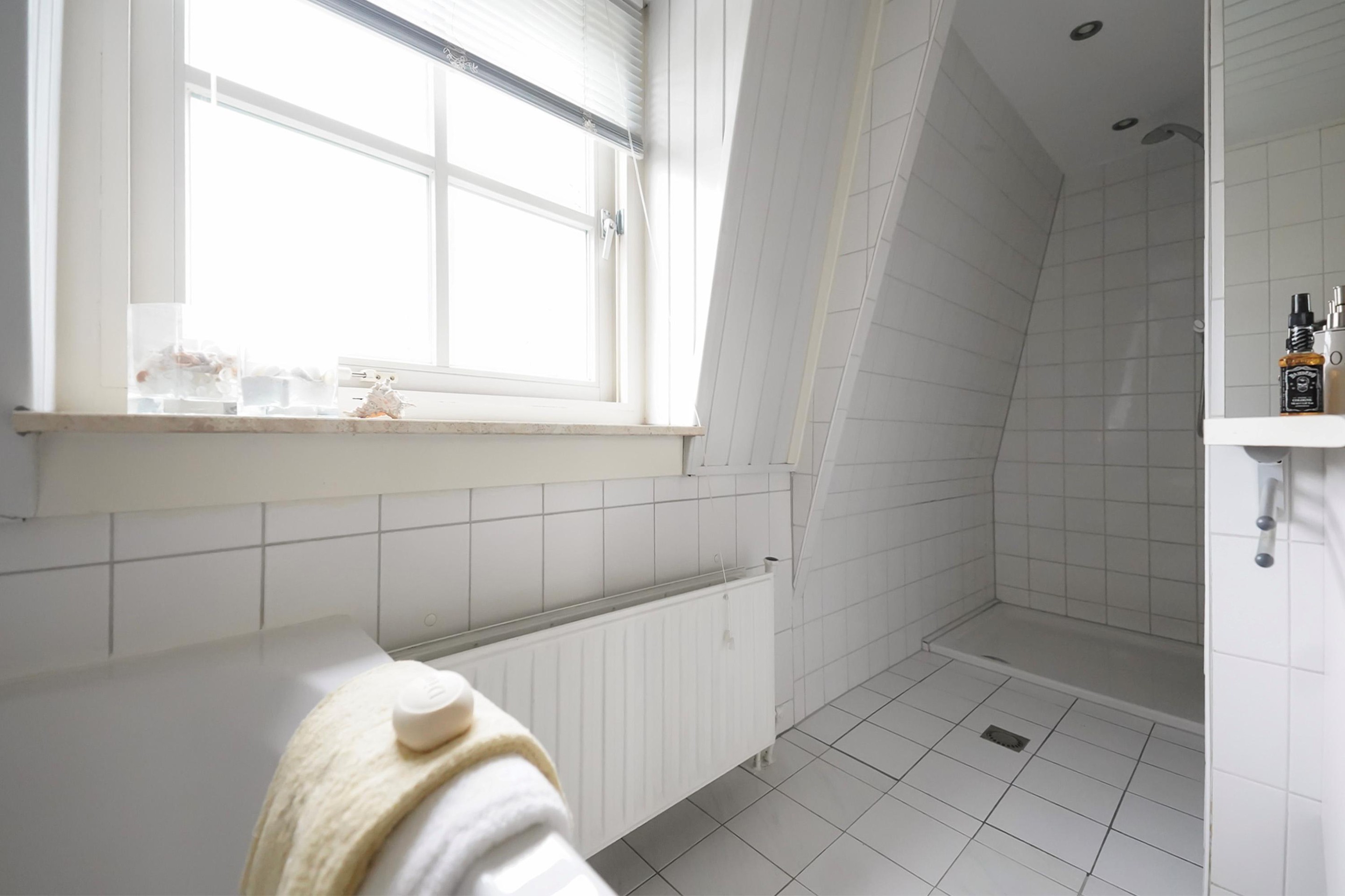De badkamer is compleet en verzorgd, met inloopdouche, ligbad, toilet en wastafelmeubel. Vanaf de overloop is ook een praktische inloopkast bereikbaar.