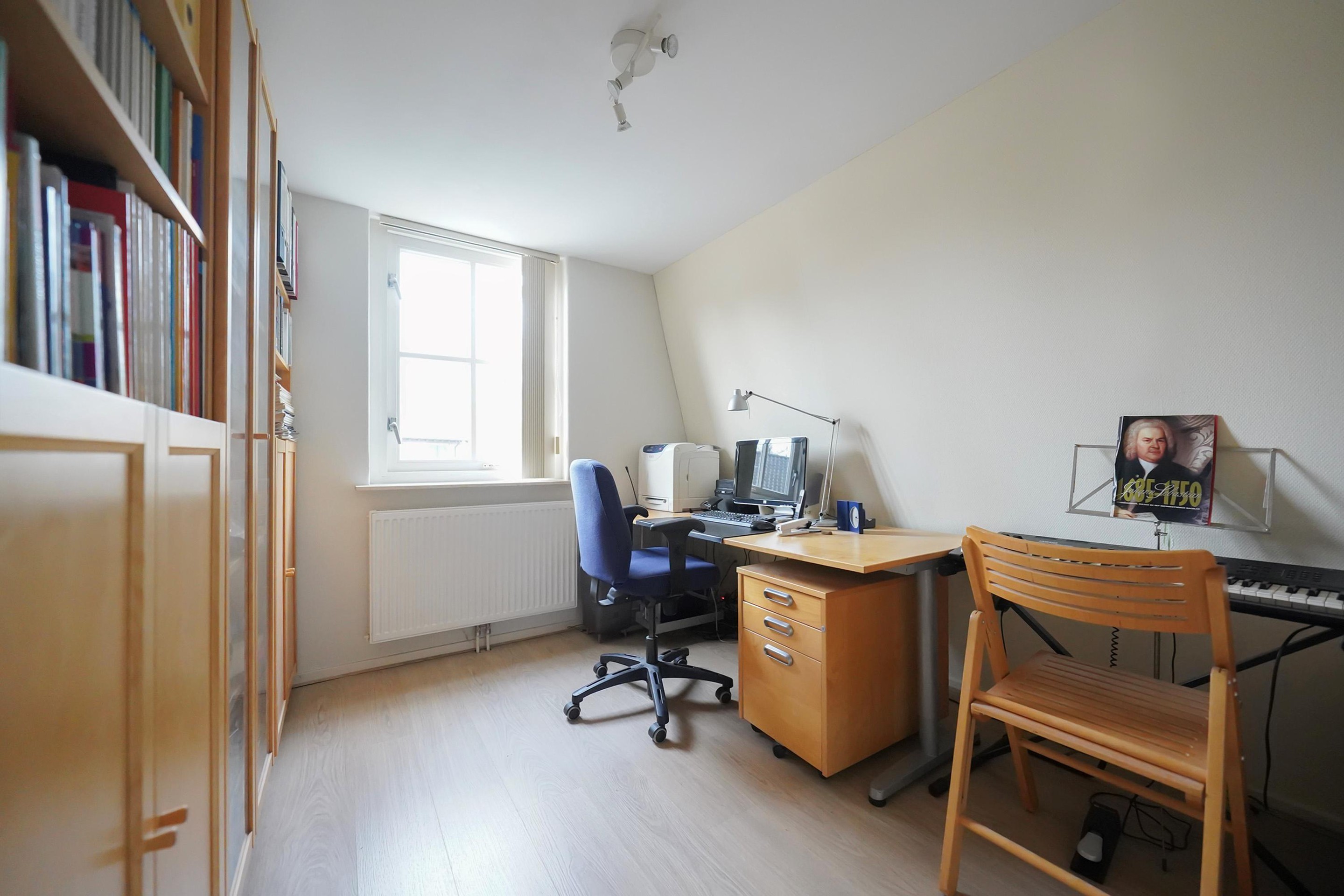 Op de eerste verdieping ligt aan de voorzijde de ruime masterbedroom met uitzicht op het charmante straatbeeld. Aan de achterzijde twee fijne slaapkamers, waarvan één met toegang tot een groot dakterras. Perfecte kamers voor kinderen, werken aan huis of logees.