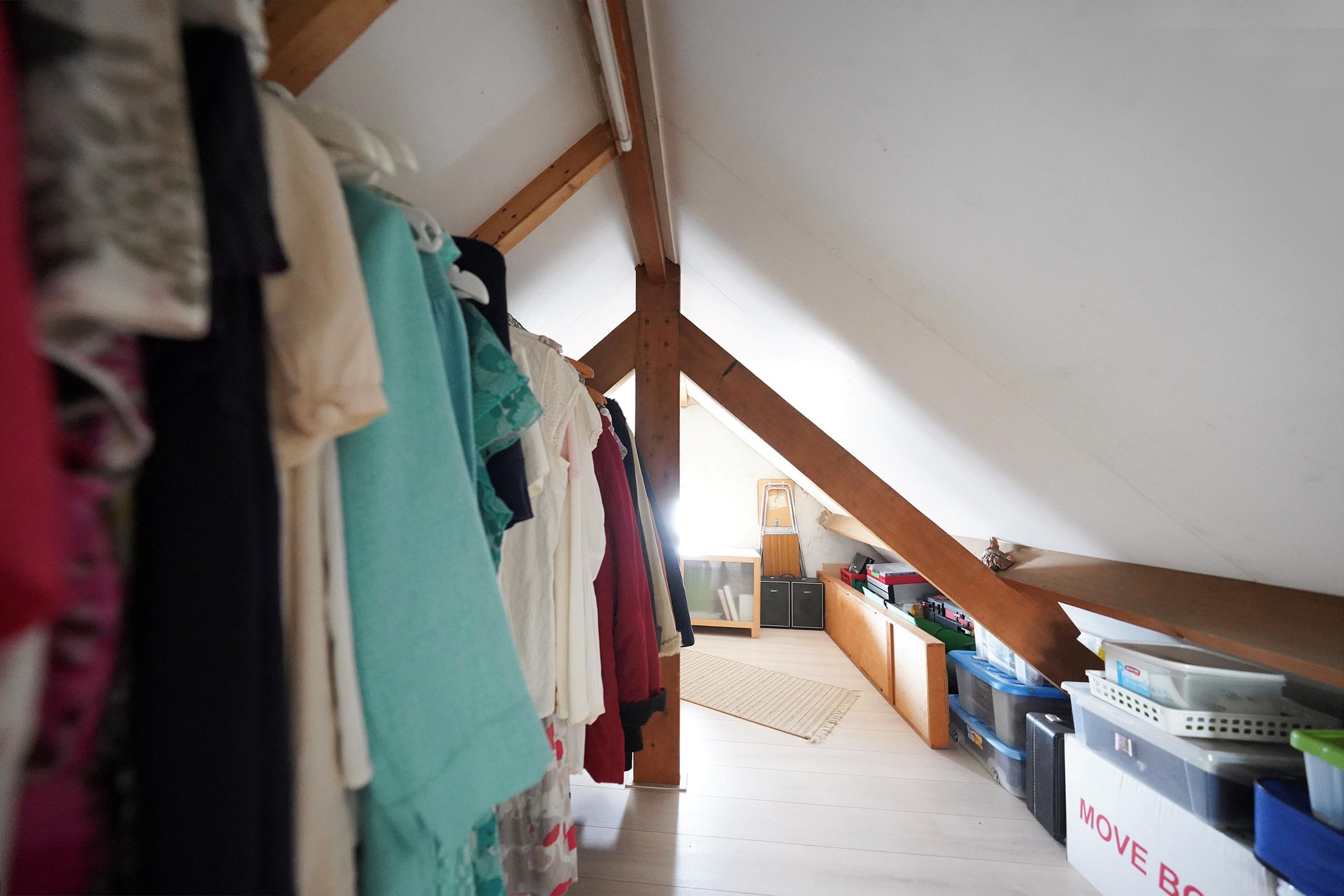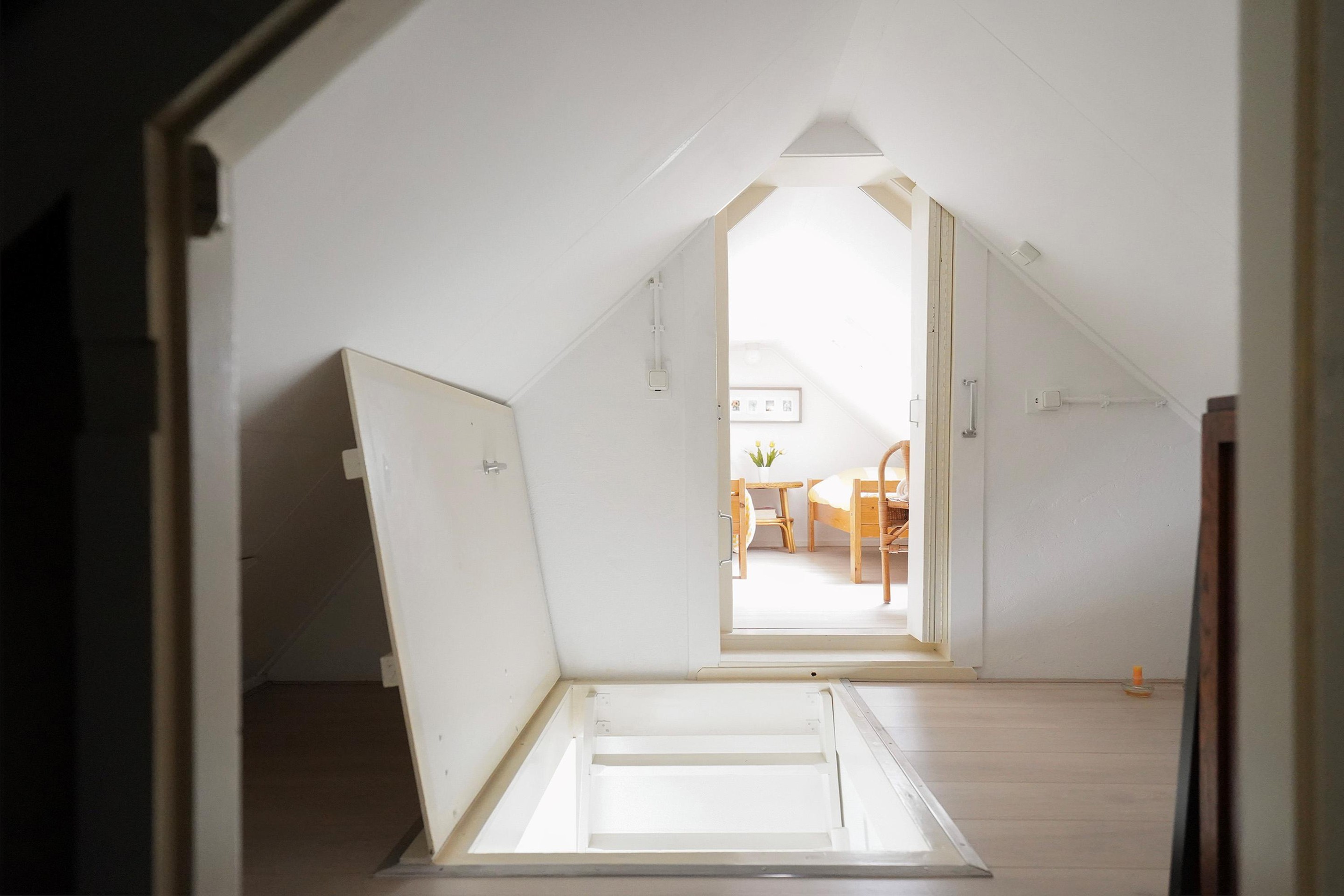 Nog een verdieping hoger brengt de vaste trap ons op zolder.