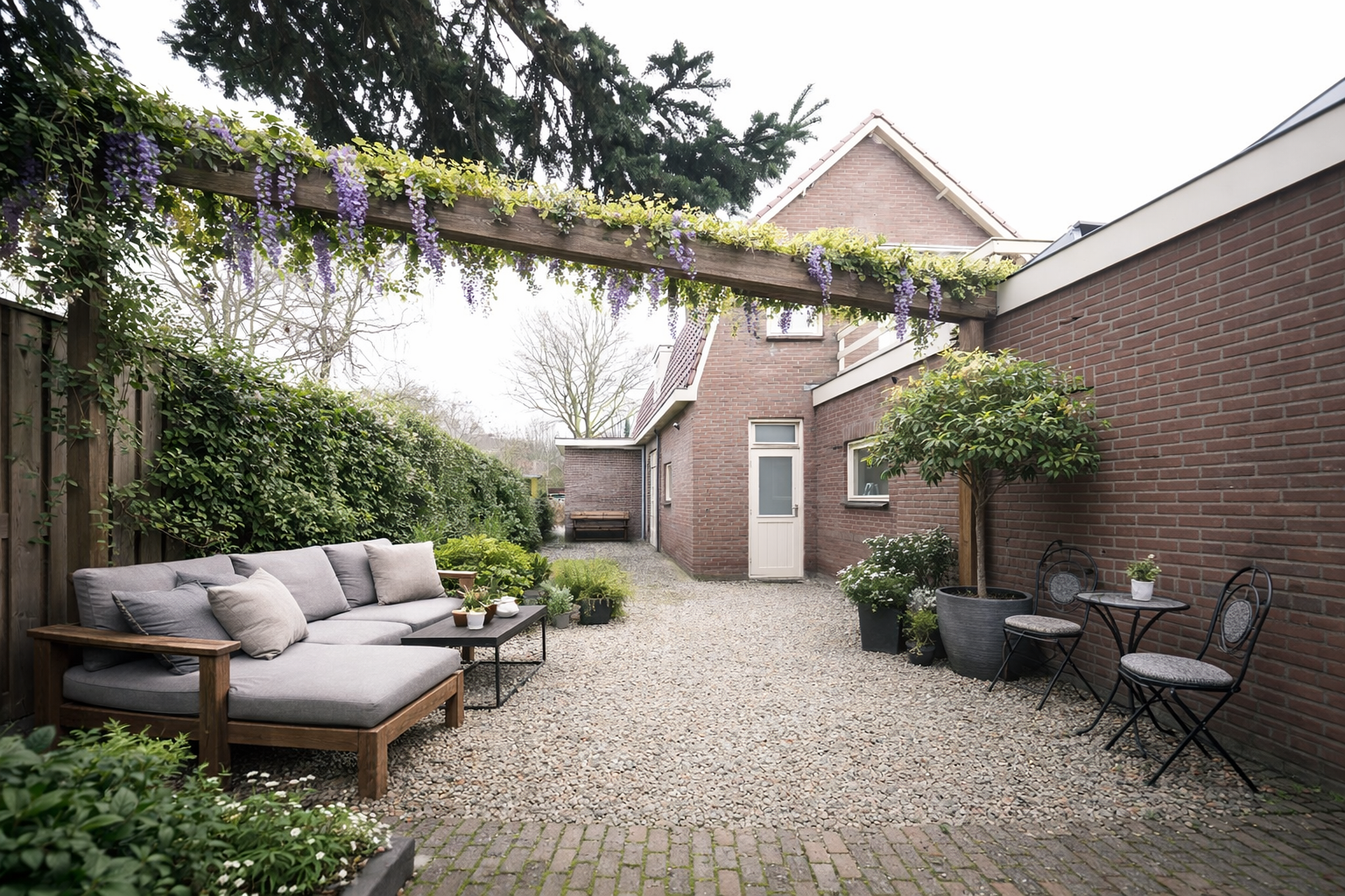 Ook buiten voelt deze woning bijzonder prettig aan. De tuin ligt op het westen, waardoor je hier in de middag en avond van de zon geniet. Zodra de deuren opengaan, loopt binnen moeiteloos over in buiten, precies zoals je dat wilt op zomerdagen. De zijtuin biedt een beschutte en rustige plek met veel privacy. Hier ruimte om een sfeervolle stadstuin in jaren ’30-stijl te creëren: denk aan gebakken klinkers, een groene haag, bloeiende border en een fijne zitplek onder de pergola. Een tuin met dezelfde charme en warmte als de woning zelf, waar je kunt ontspannen, borrelen of gewoon even niets hoeft.