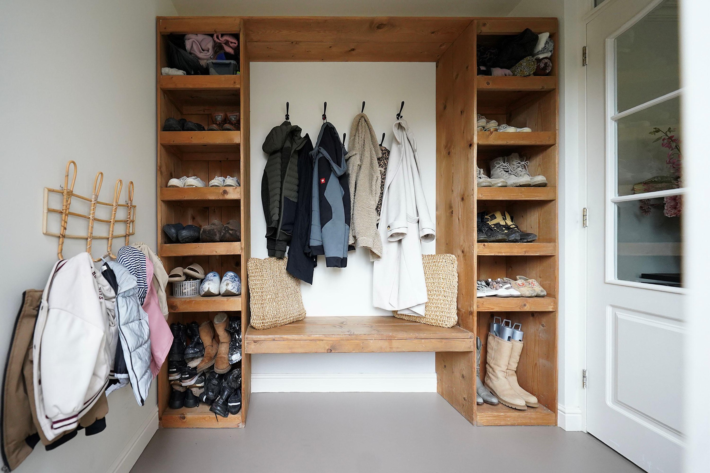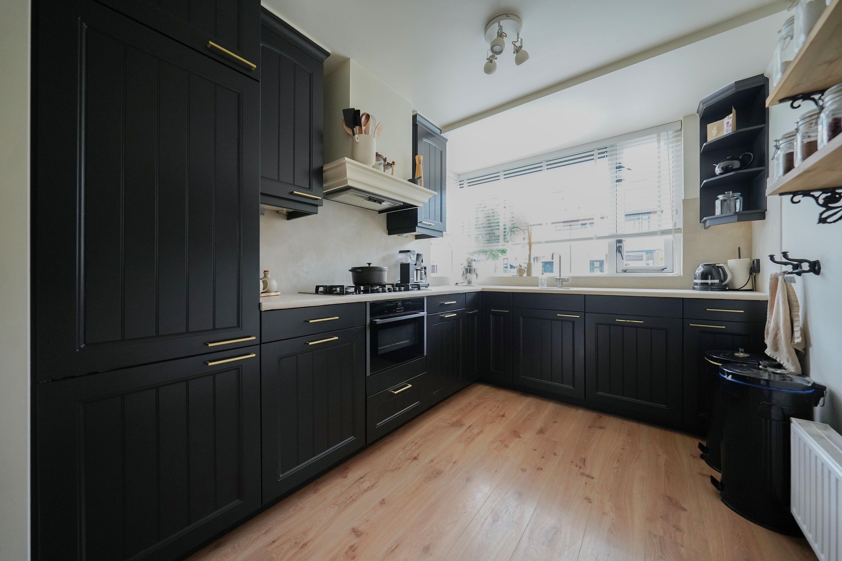 Zoals al gezegd vind ik deze woningen altijd een hele vriendelijke, zonnige uitstraling hebben. Dit komt door de openheid van de erkers aan de voorzijde en de gekozen warme kleur steen. Bij aankomst valt mij meteen op dat ik een verzorgde woning binnenstap met sfeer en gezelligheid. De voordeur is voorzien van een overstek dus je kan lekker droog binnen stappen. De hal is goed van formaat waarbij linksom meteen de vernieuwde toiletruimte is gesitueerd met hangend toilet en mooie wastafel, afgewerkt met prachtige tegels. Via een deur met glas lopen we de living binnen waarbij de keuken aan de voorzijde is gelegen en de woonkamer aan de achterzijde. Een brede leefruimte met grote raampartijen! Door de uitgebouwde erker aan de voorzijde is de hoekkeuken echt ruim van opzet en daarbij voorzien van een hoog blad. Hier kan je fijn naar buiten. De keuken is al wat jaren oud maar heel leuk gepimpt en voorzien van nieuwe inbouwapparatuur. Aan de achterzijde van de woning is een uitbouw waar nu mooi plek is gemaakt voor de jassen en de schoenen. Slim! We lopen meteen even naar buiten want het is echt wel uniek hoe vrij je hier aan de achterzijde zit. De tuin is heel speels ingericht met zelfs een heel leuk kippenhok! (eventueel ter overname). De grote tafel met robuuste stoelen laten ook wel zien dat hier goed de ruimte voor is. De vrijstaande stenen berging is achterin de tuin gelegen en daar is een overkapping aangebouwd waar nu de fietsen gestald staan. Deze woning heeft precies geen achterpad waardoor de tuin nog dieper is. Leuk is het stalen sierhekwerk als achter toegang. De tuin is op het westen gelegen wat betekent dat je met name inde middag en avond heerlijk van het zonnetje kan genieten in de achtertuin.