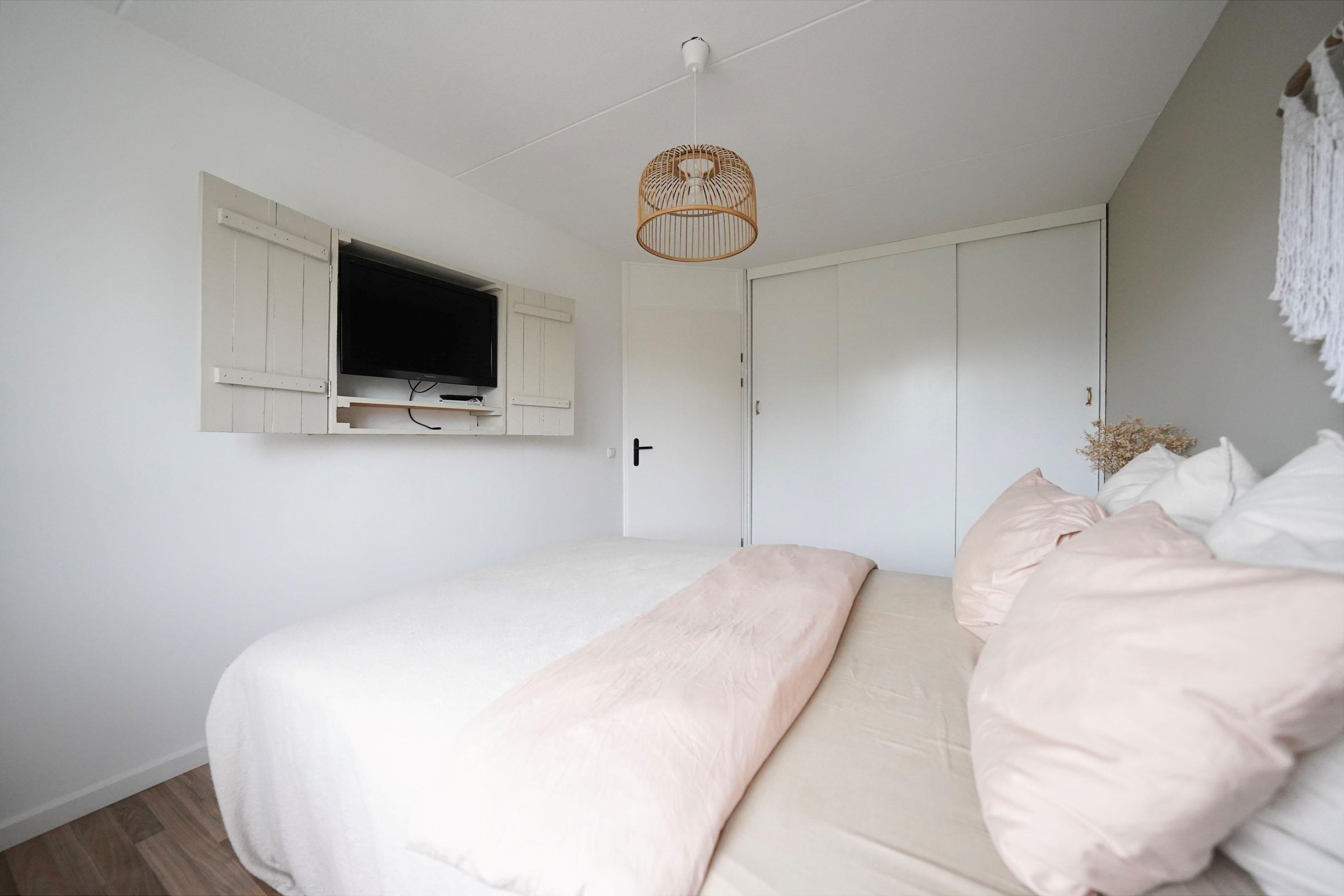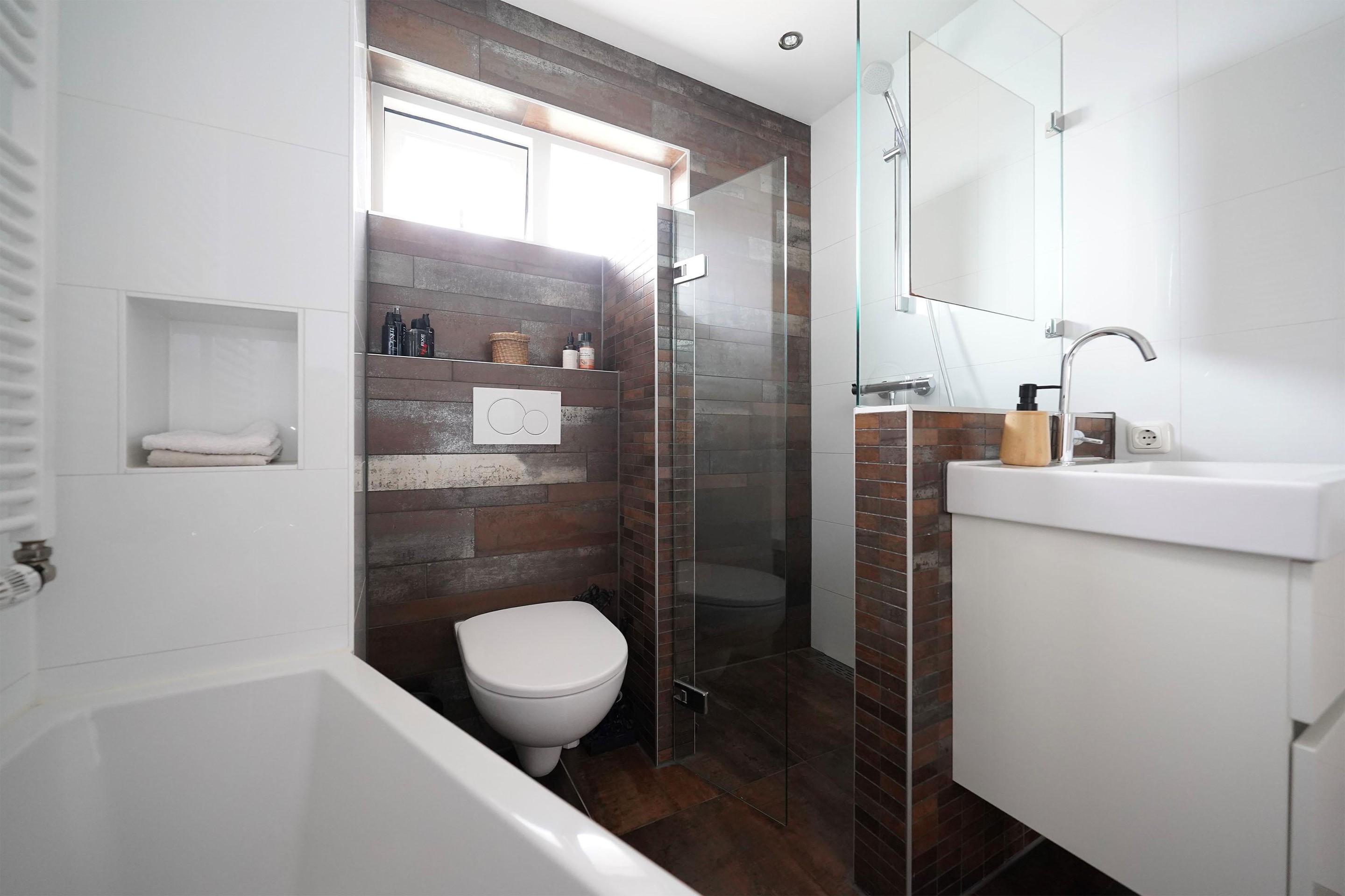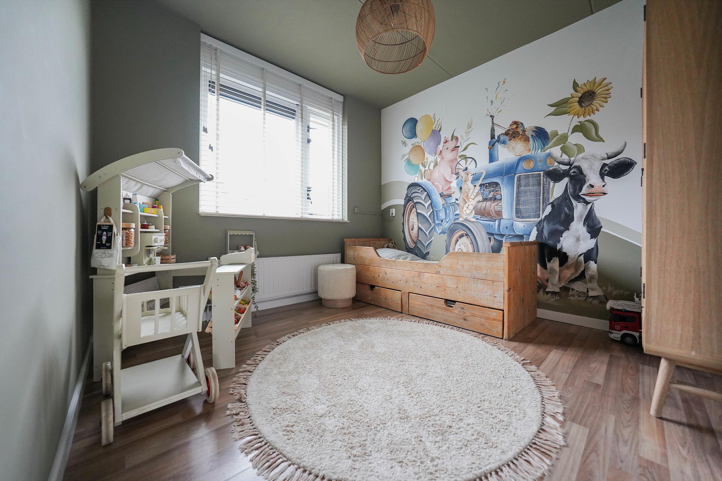 Op naar boven via een mooie trap met houten tredes en een houten trapleuning. Mooi en sfeervol! Verrassend is de ruime overloop op de eerste verdieping met ook nog eens 3 echt fijne slaapkamers. De ouderslaapkamer is echt heerlijk raam zoals je wel op de foto’s kunt zien. De kinderkamers zijn prachtig ingericht wat wellicht wel een beetje verklapt wie hier woont. De eigenaresse maakt namelijk zelf prachtige muurschilderingen! Alle kamers zijn voorzien van elektrische rolluiken. De badkamer is aan de voorzijde gelegen en is heel speels ingedeeld waardoor er ook echt ruimte is voor een inloopdouche, een ligbad, een 2e toilet en een goed wastafelmeubel. Hoe slim!