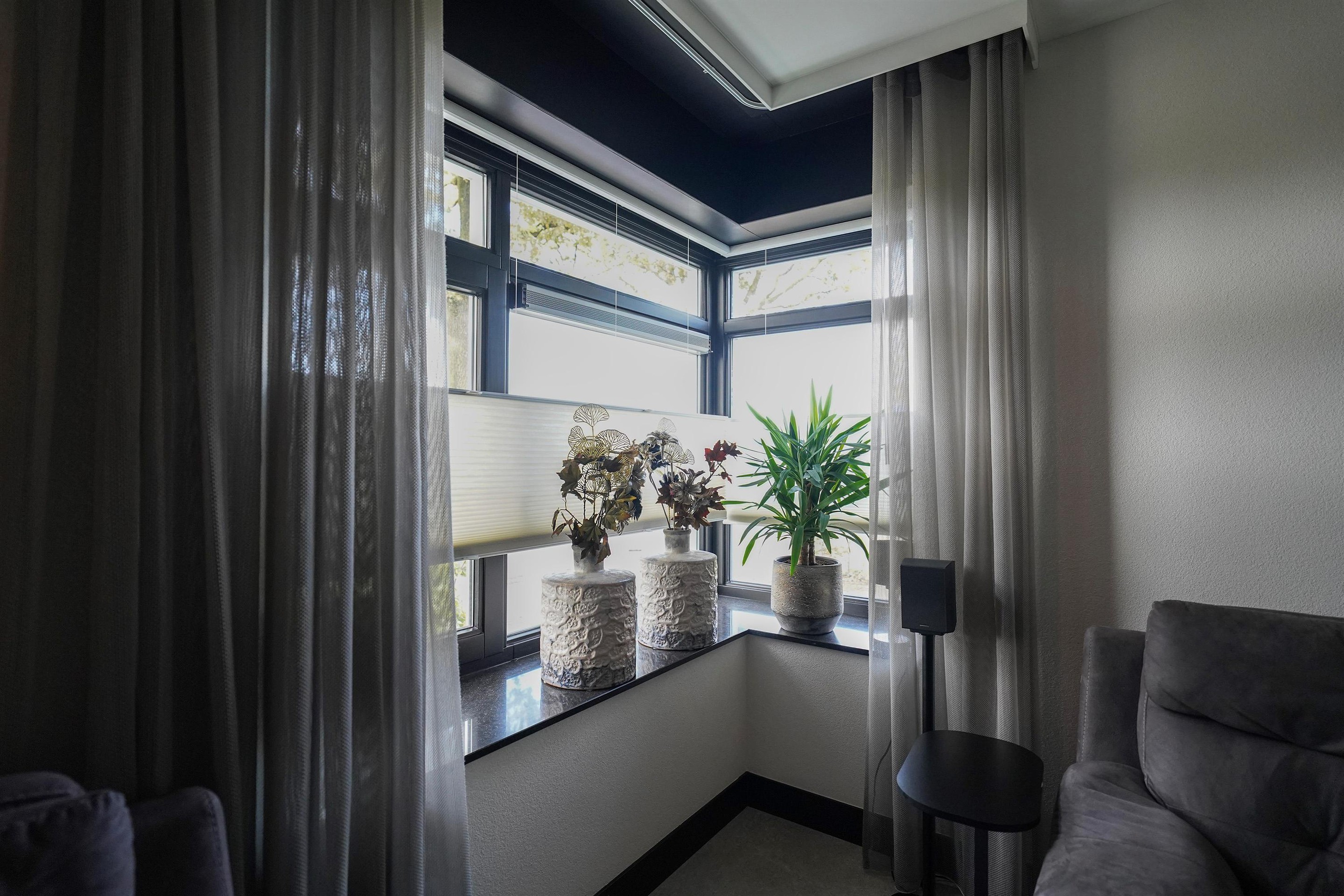 Vanuit de keuken is ook de geïsoleerde aanbouw te bereiken en dit is ook meteen een handige achteringang van je woning. Wat mij opvalt is dat hier ook echt gedacht is aan veel daglicht door het gebruik van grote raampartijen. Via deze aanbouw is er ook een deur naar de tuin aanwezig.