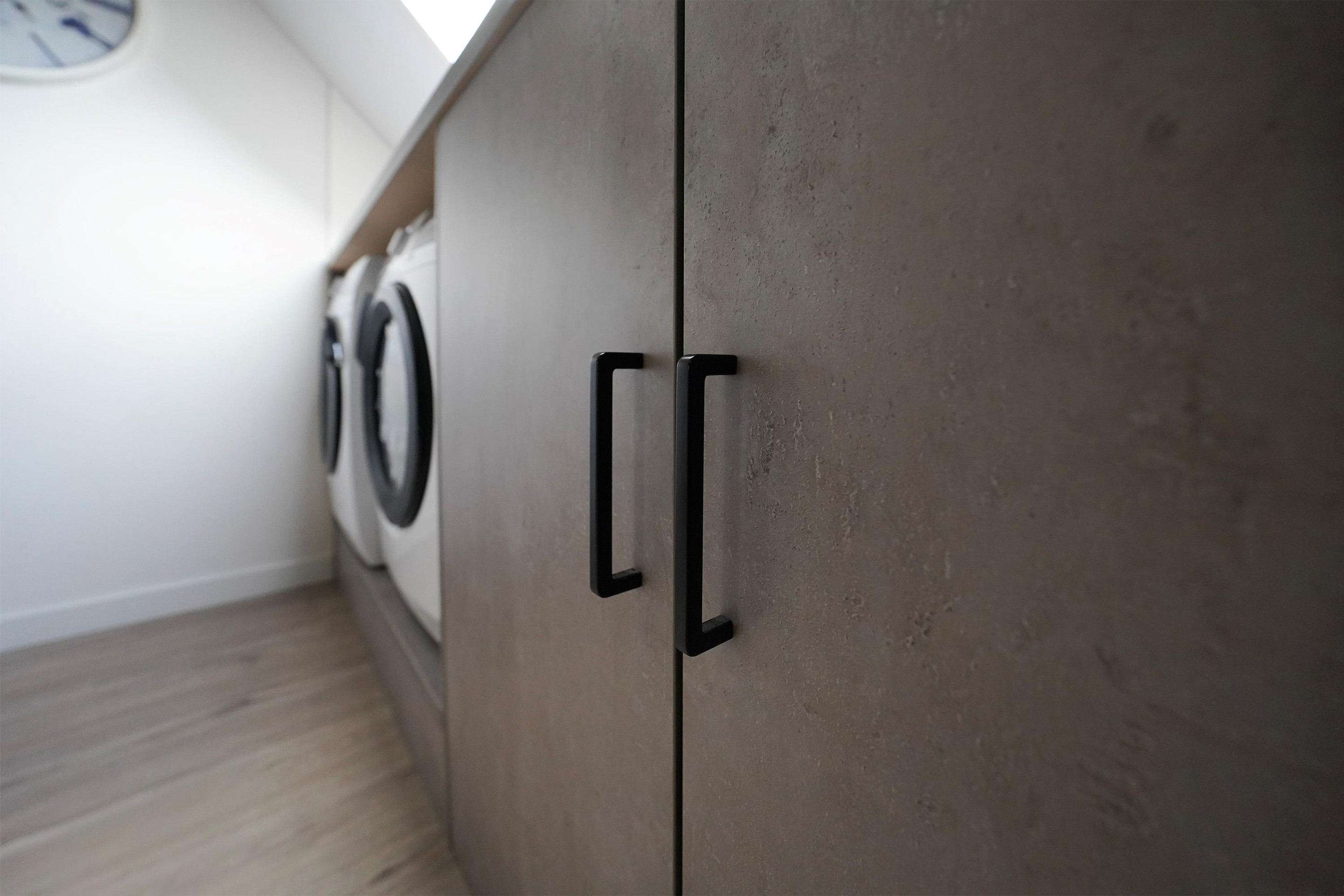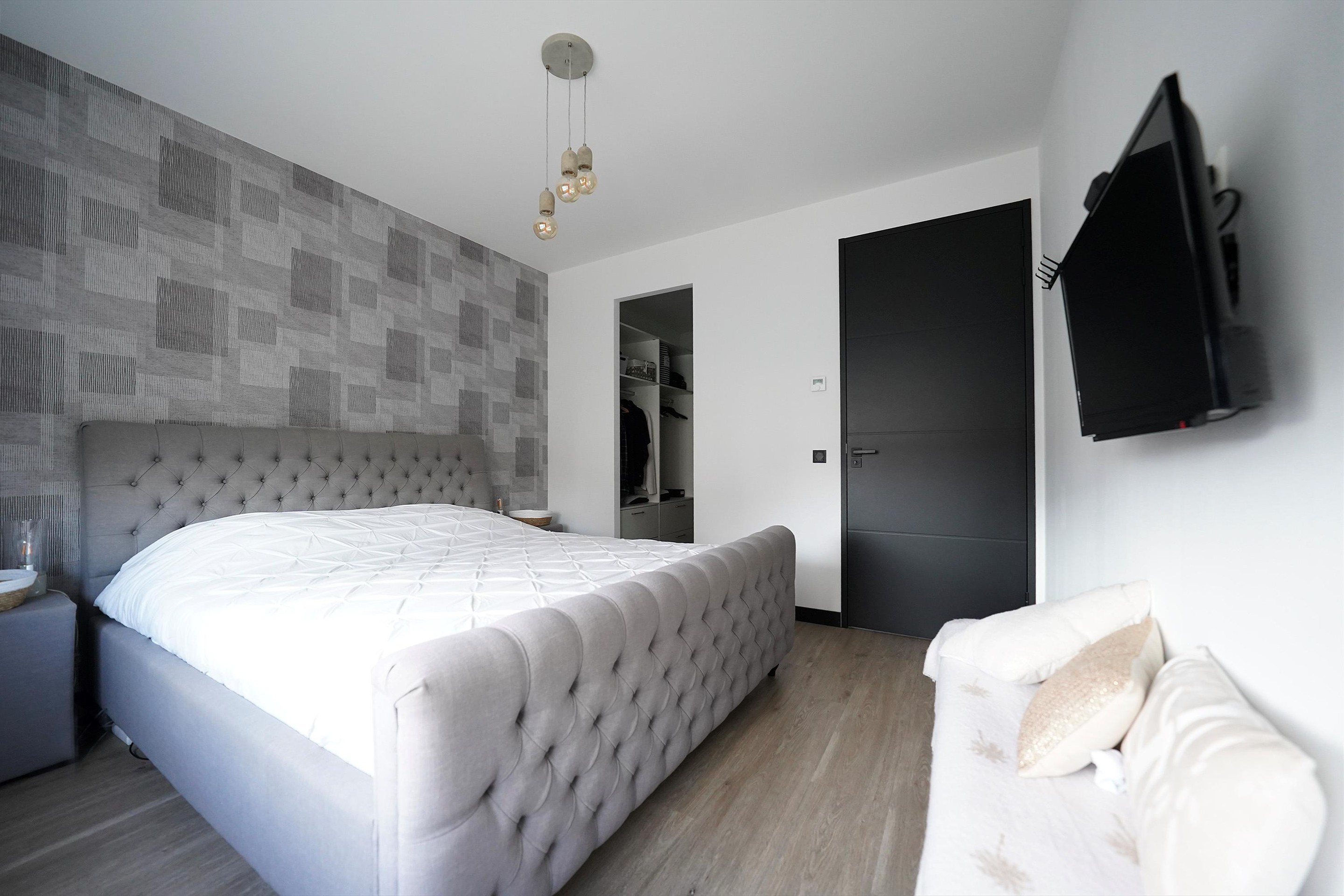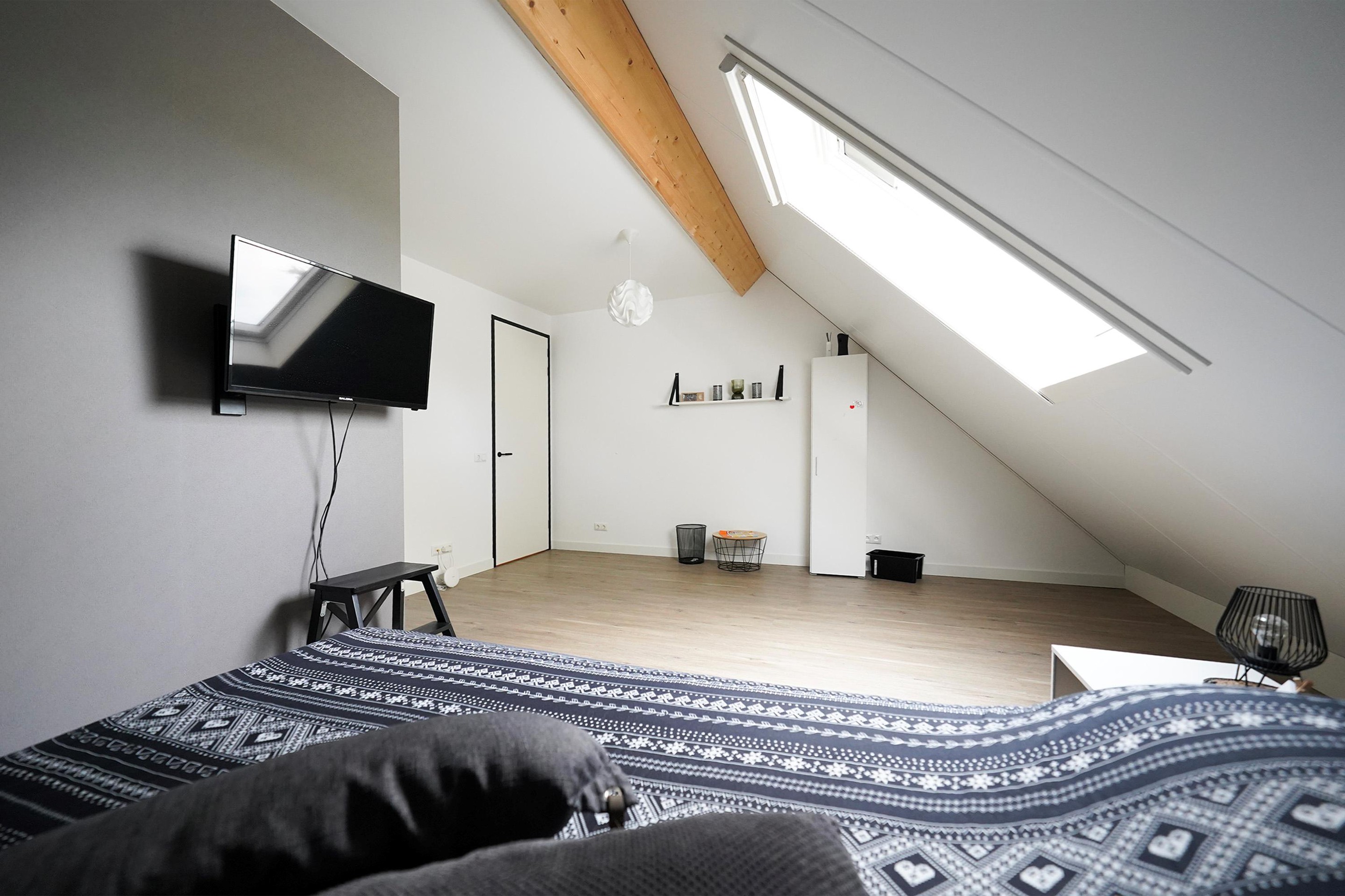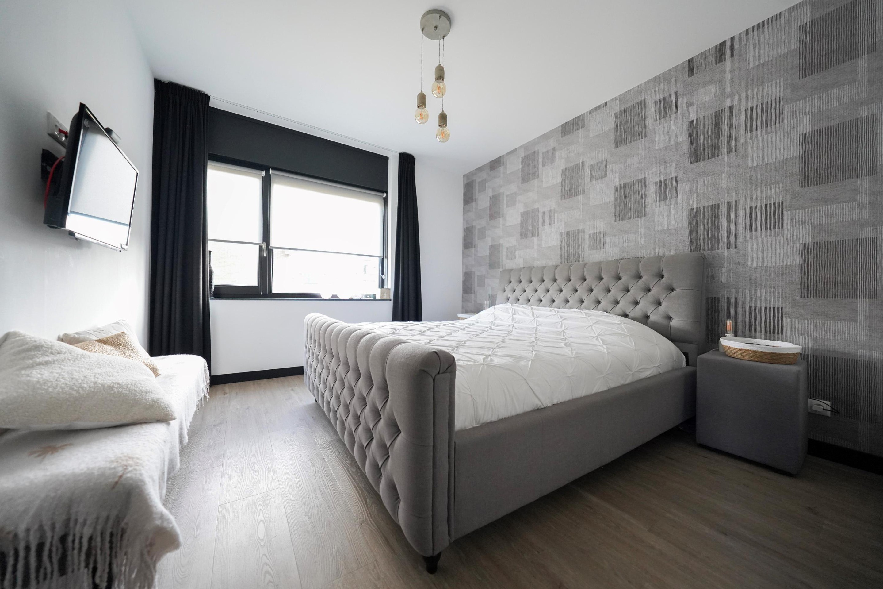Weer via een mooie zwarte trap gaan we door naar een volwaardige 2e verdieping met ontzettend veel ruimte. Hier bevindt zich een ruime overloop waar ook de wasmachine en droger, netjes ingebouwd, zijn gesitueerd. Ook is er een enorm grote 4e slaapkamer aanwezig tevens voorzien van een inloopkast. Verder is er een machinekamer waar alle installaties zoals de warmtepomp en de boiler zijn geplaatst en zo ook fijn uit het zicht zijn.