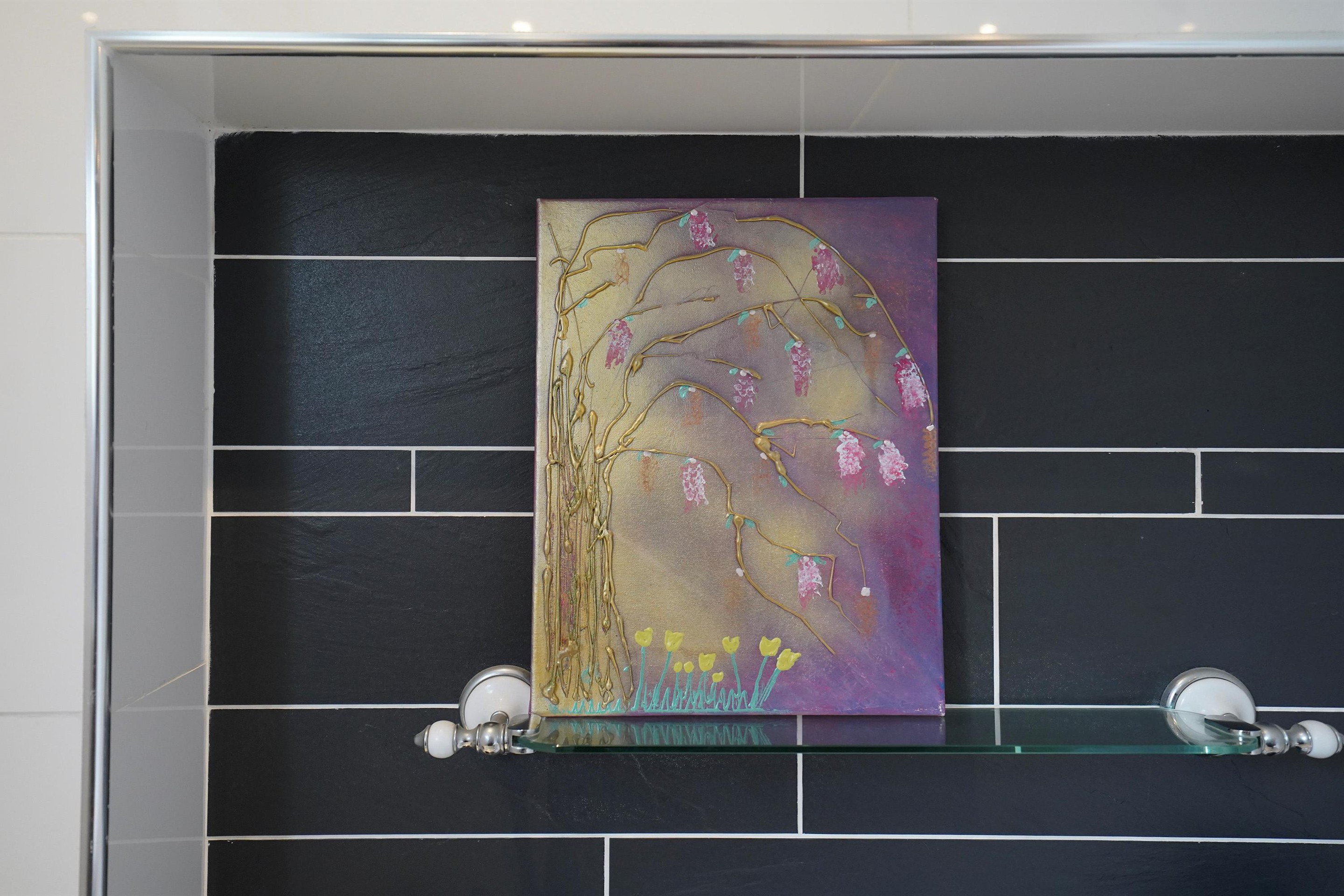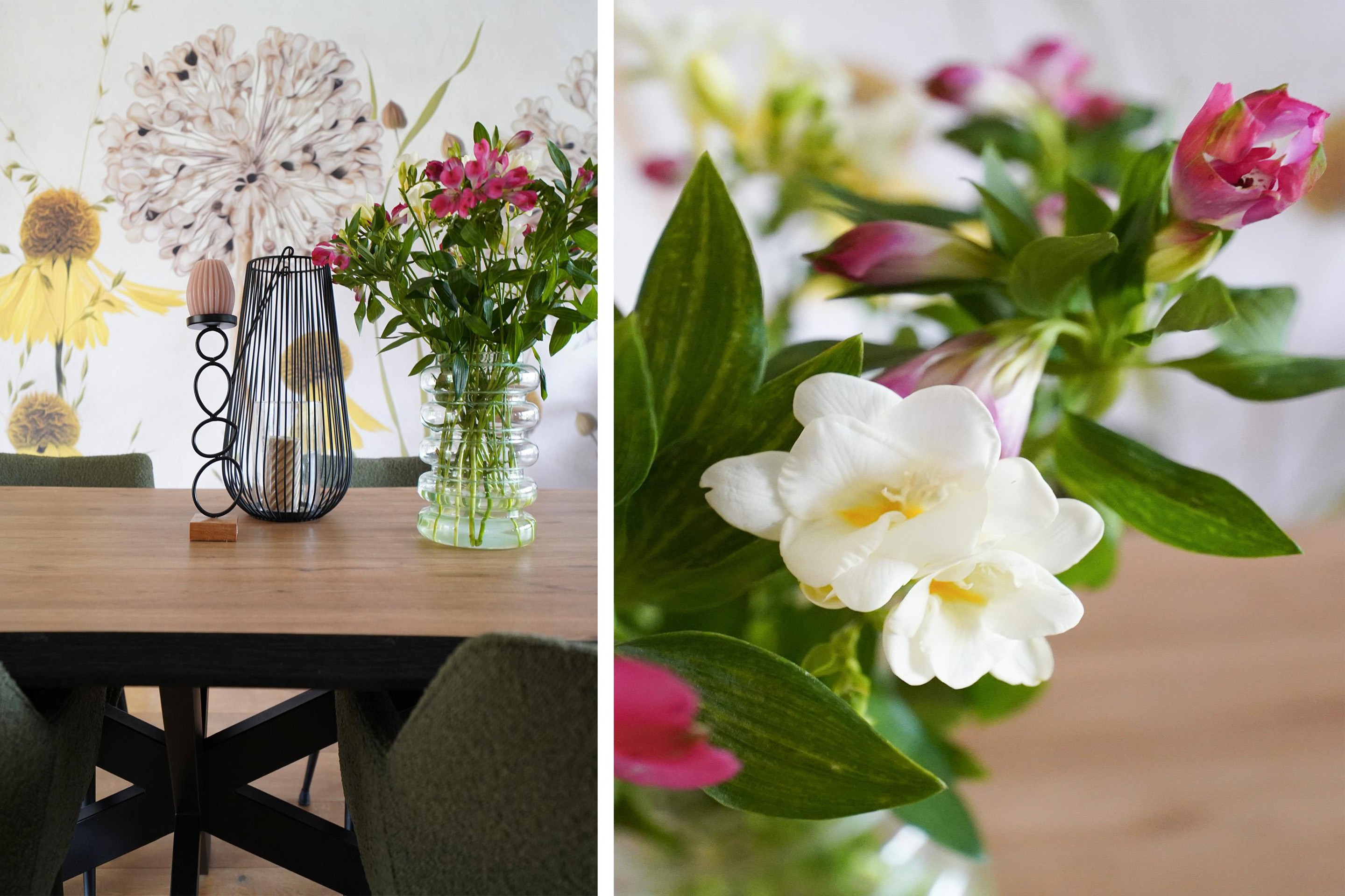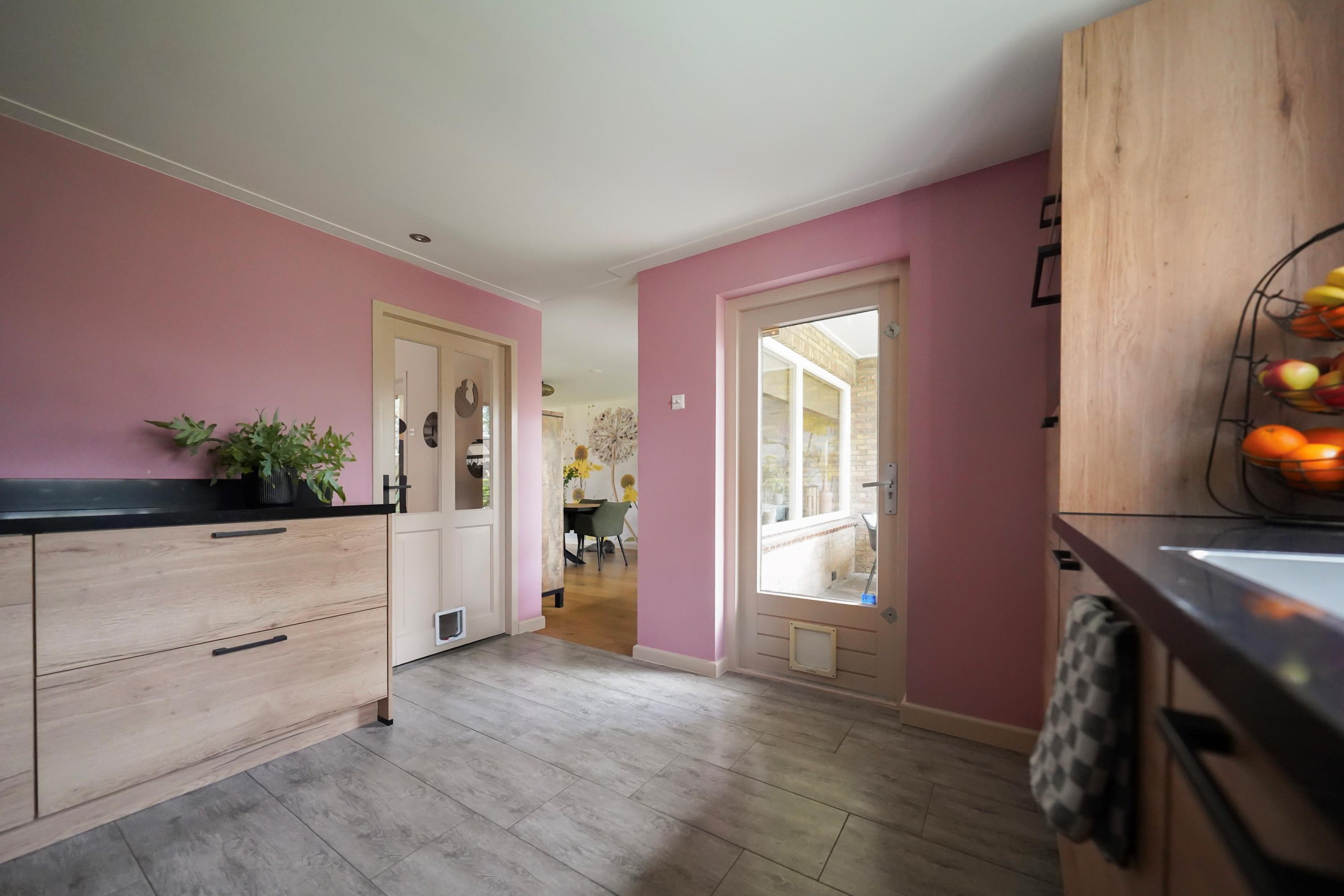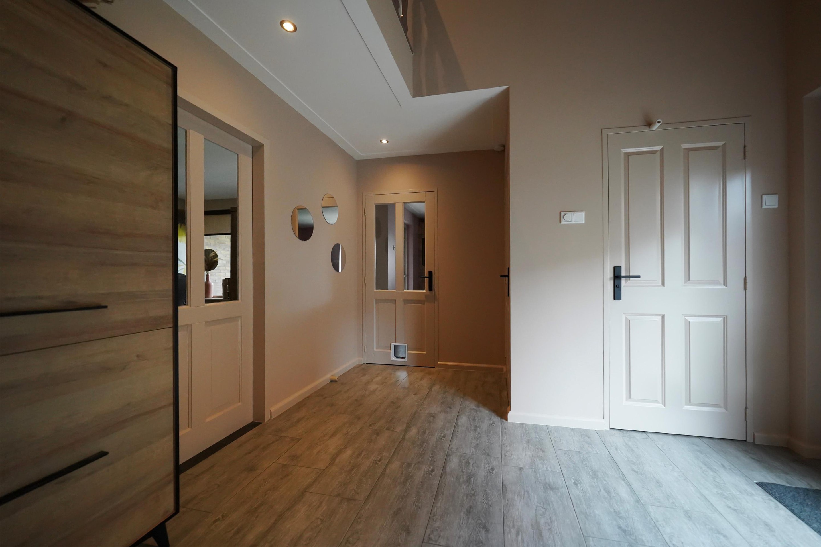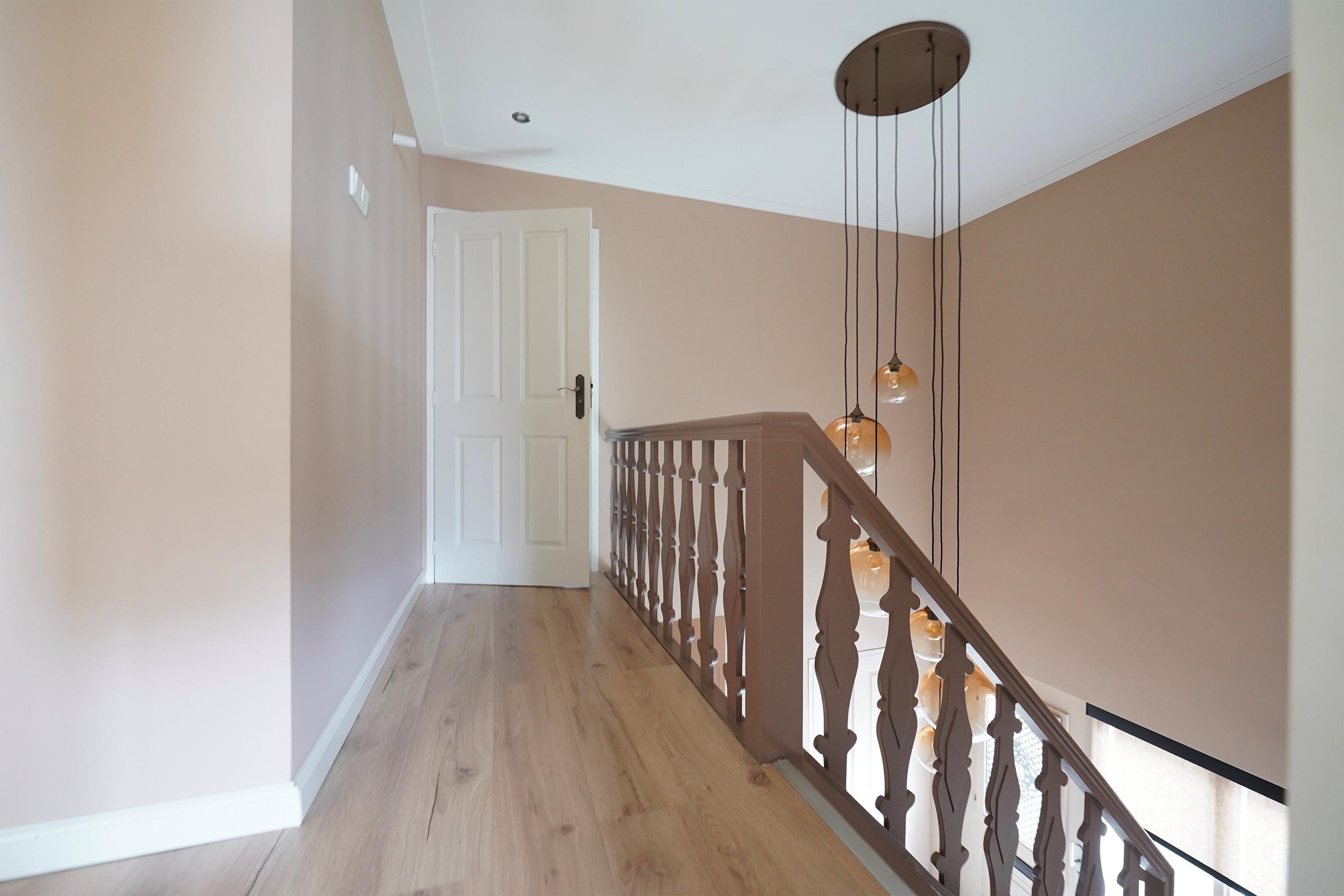 Bij deze woning is dus alles gewoon groter. Zo ook de hal bij binnenkomst. Deze hal is meteen ook een echte eyecatcher met een prachtige vide. Ruimte voor de jassen en de schoenen geen gebrek en via mooie, vernieuwde deuren kunnen we naar de woonkamer en de keuken. In de hal is ook nog de toiletruimte gesitueerd. De woonkamer is echt een heerlijke ruimte waar zoals je ook wel op de foto’s kunt zien echt een mega eettafel kwijt kan. Je kan hier echt dansen om de tafel. Aan de voorzijde is de zitkamer gesitueerd en voorzien van grote raampartijen voor lekker veel daglichttoetreding. De open haard is origineel en echt een prachtig exemplaar wat de ruimte nog meer sfeer geeft. De houten vloer, vloerverwarming, glad gestuukt plafond met spotjes en het uitzicht op de groene tuin zijn toch wel echt de extra’s waar je blij van wordt. Via een smalle doorgaan lopen de we mooie, ruim opgezette keuken in. De keuken is neutraal ingericht met een mooi zwart keukenblad van composiet en alle inbouwapparatuur. De kleur roze op de wanden is wel lekker uitgesproken en geeft de keuken pit! Maar die kleur kan natuurlijk anders, net wat jouw smaak is.