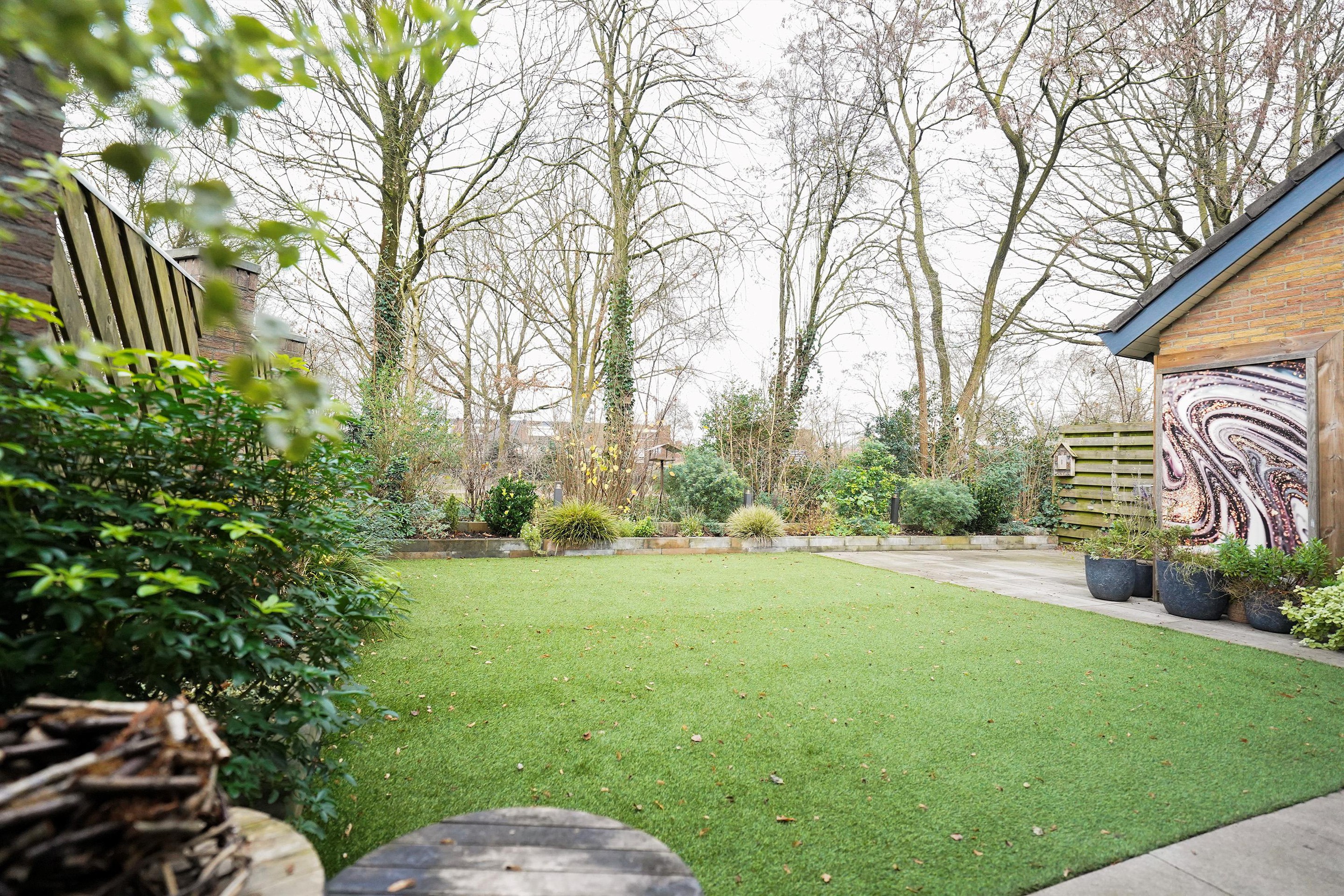 Vanuit de keuken loop je naar buiten, allereerst het overdekte terras op. Wat geeft deze ruimte ook een sfeer. De tuin is ruim opgezet en grotendeels op het westen gelegen. Prachtig is het groene, vrije uitzicht. Nu kijk je wat door de groene afscheiding heen in de winterperiode, maar dat is juist leuk in deze tijd. En dan nog is er geen direct pad achter de woning waardoor je nog steeds super vrij woont. Je zult begrijpen dat er heel veel verschillende vogels en soms misschien wel een eekhoorntje voorbij komt. Het park is een geweldige plek om voor kinderen te spelen en kennis te maken met verschillende dieren. Lopend of op de fiets ben je ook zo in het gezellige centrum van Putten. De tuin is prachtig aangelegd. Vanuit de tuin loop je gemakkelijk de garage in. Ook deze ruimte is erg fijn en is maar liefst 25 m2 groot. Handig is de extra bergvliering boven de garage.