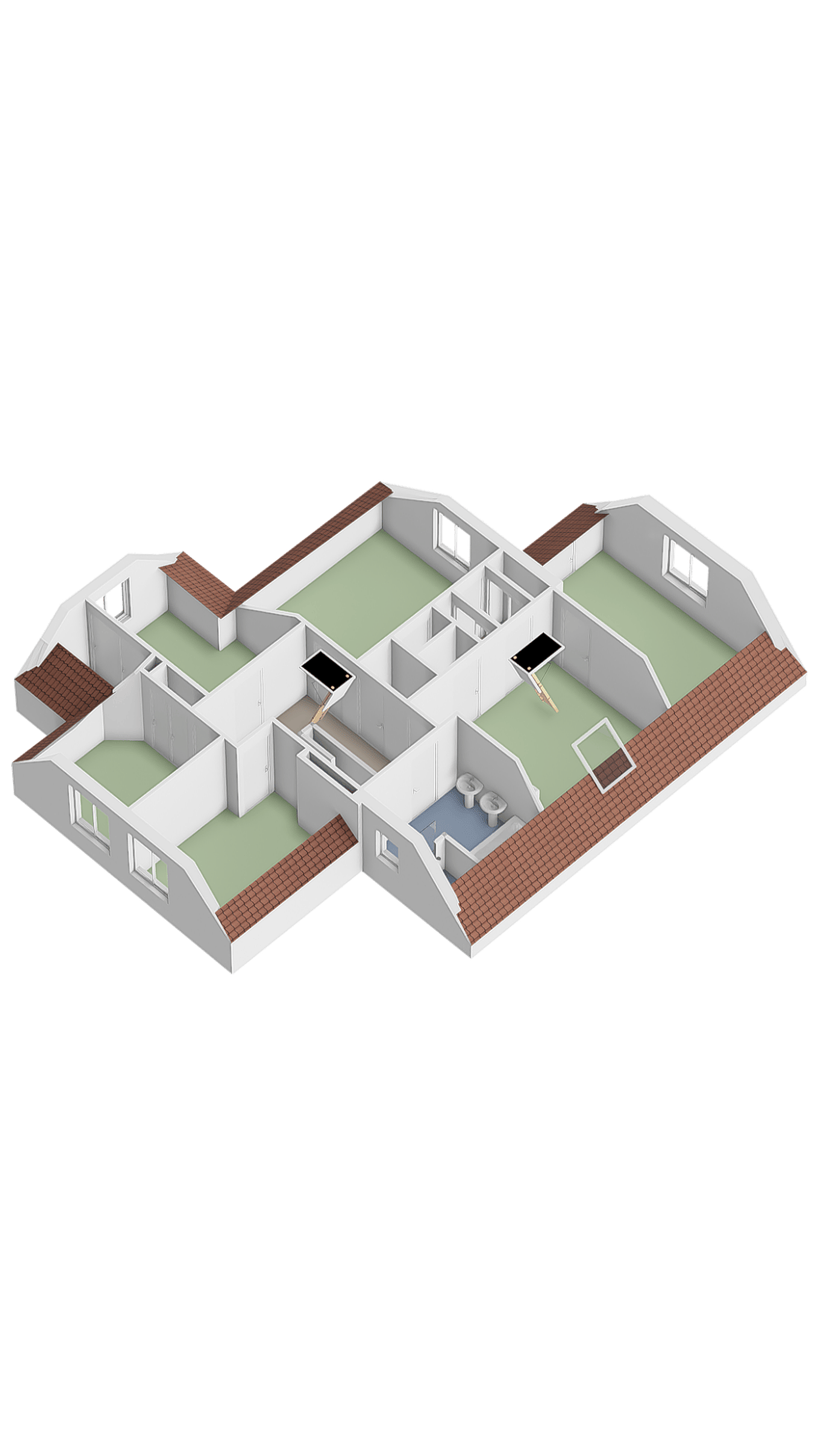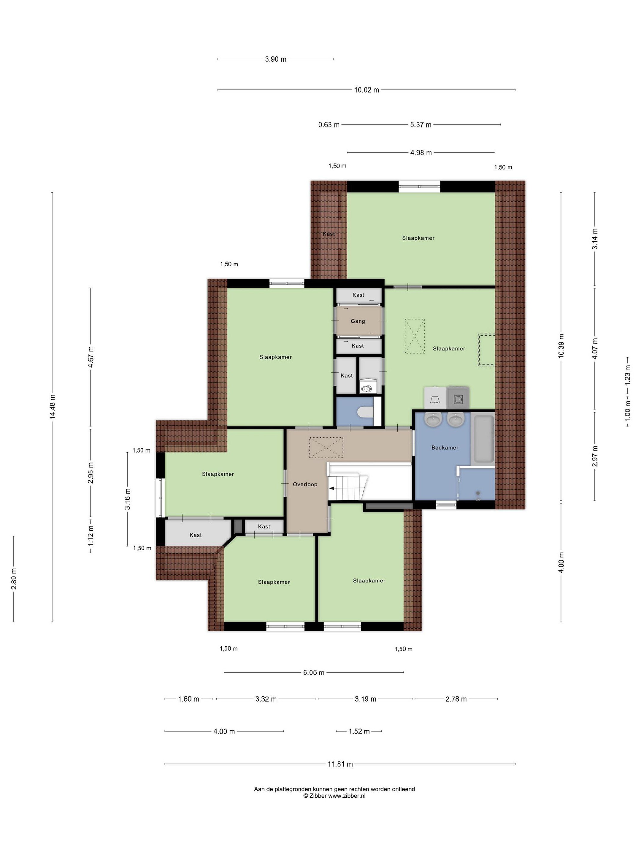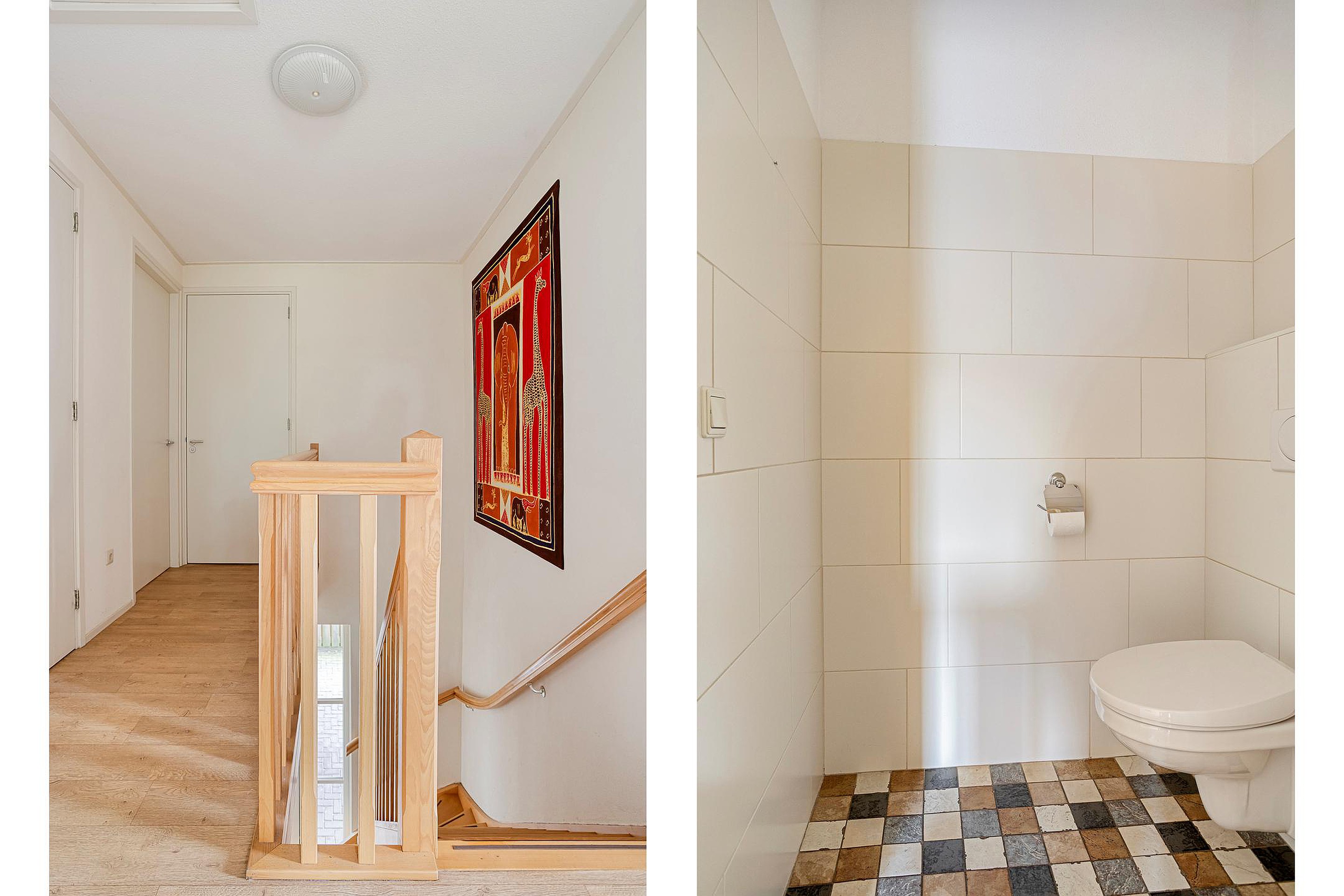 vanuit de hal is de overloop te bereiken met aansluitend de toilet, badkamer en 6 ruime (slaap)kamers.