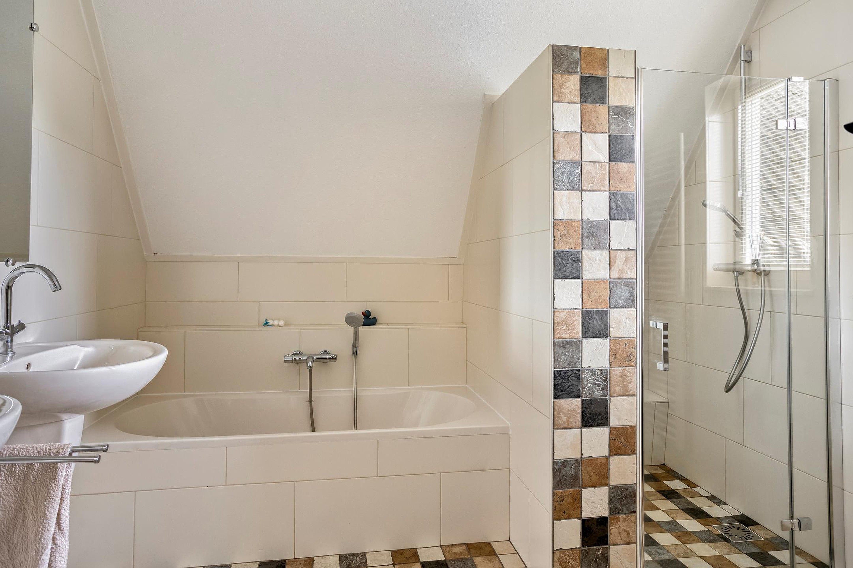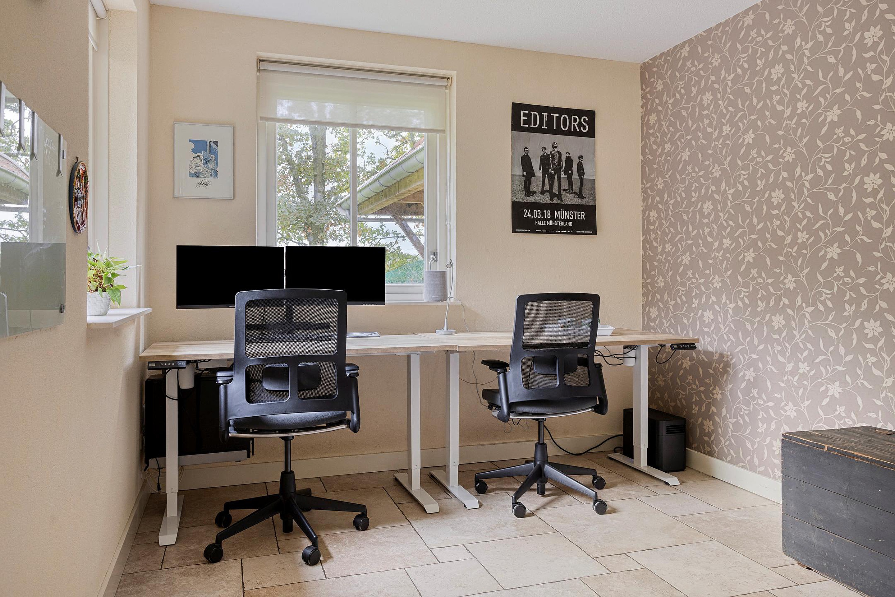 De woning heeft een praktische indeling met kantoor op de begane grond en op de verdieping maar liefst 5 slaapkamers, een badkamer en een wasruimte. Dat geeft mogelijkheden voor een groot gezin en thuiswerken.