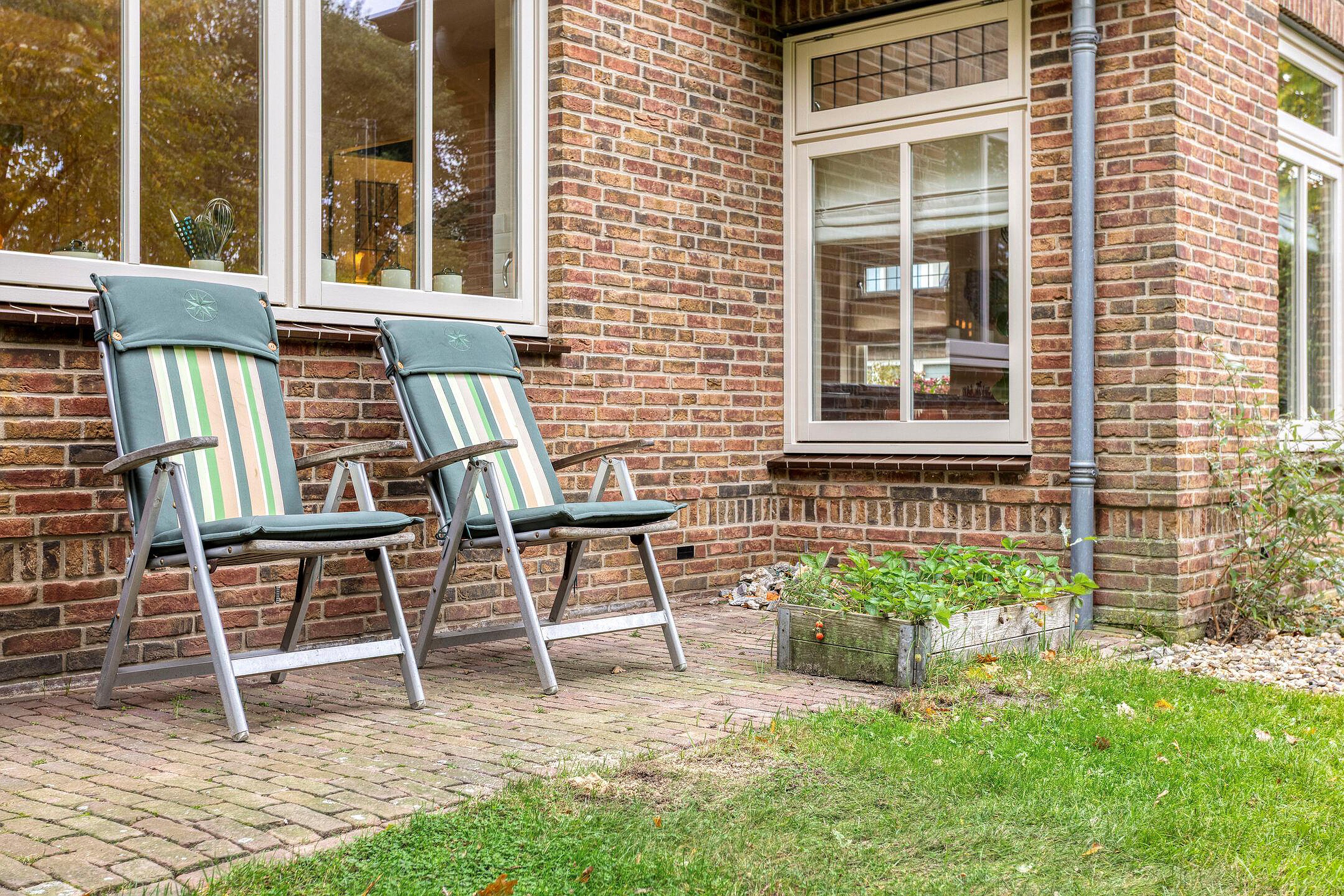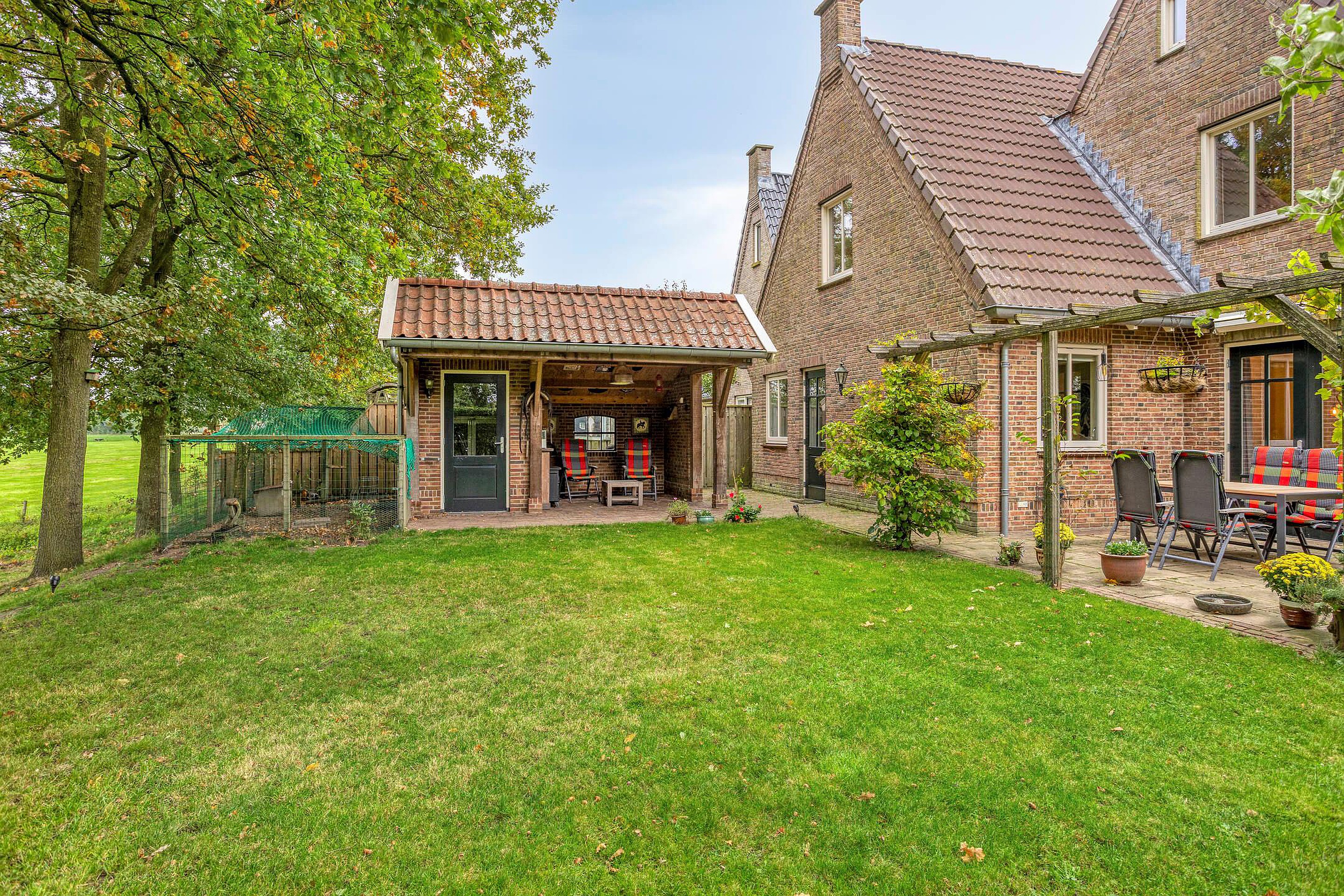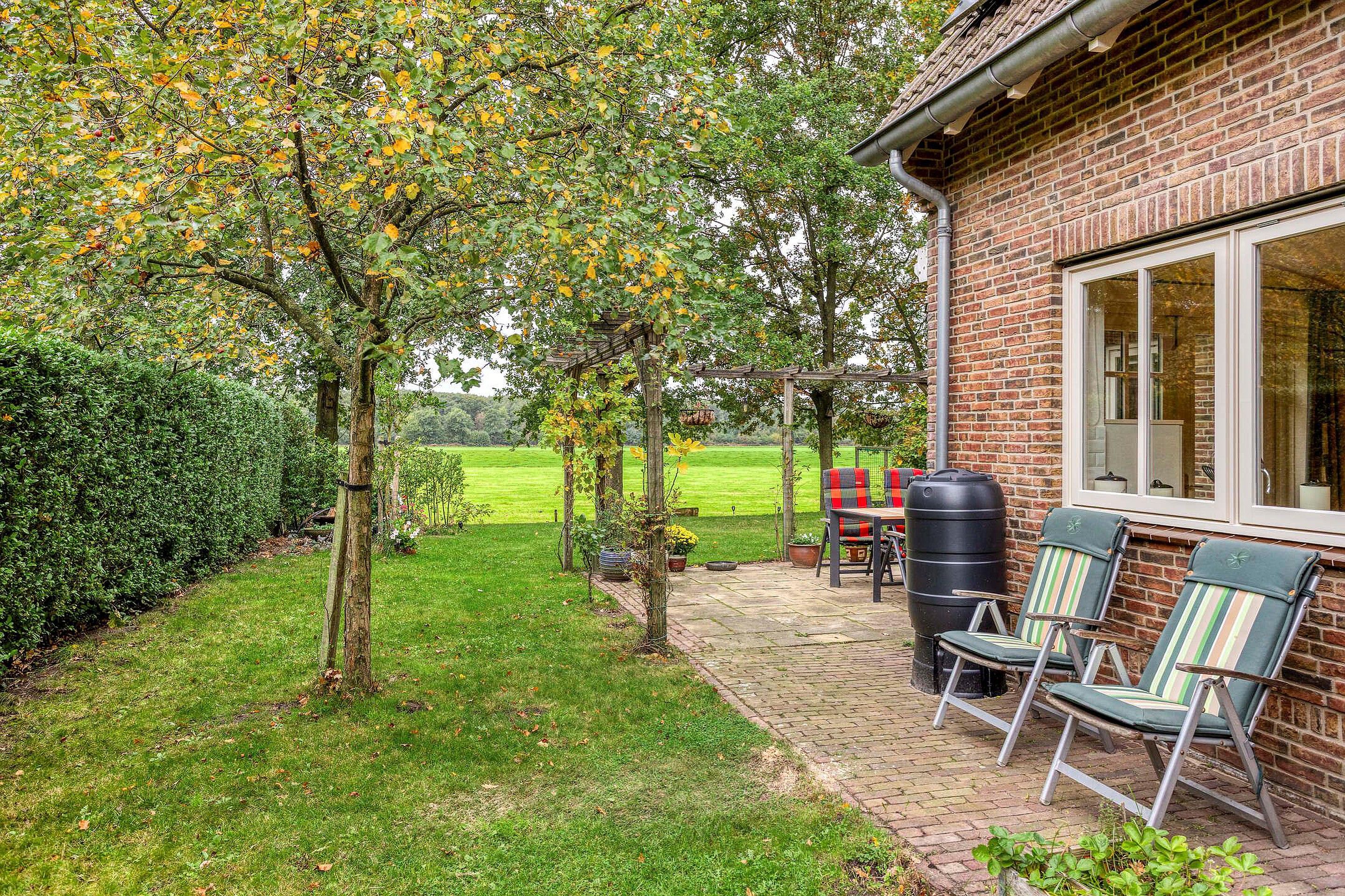 de ruime tuin met terras en overkapping bevindt zich zowel naast als achter de woning en geeft een prachtig uitzicht op de tuin en het natuurgebied.