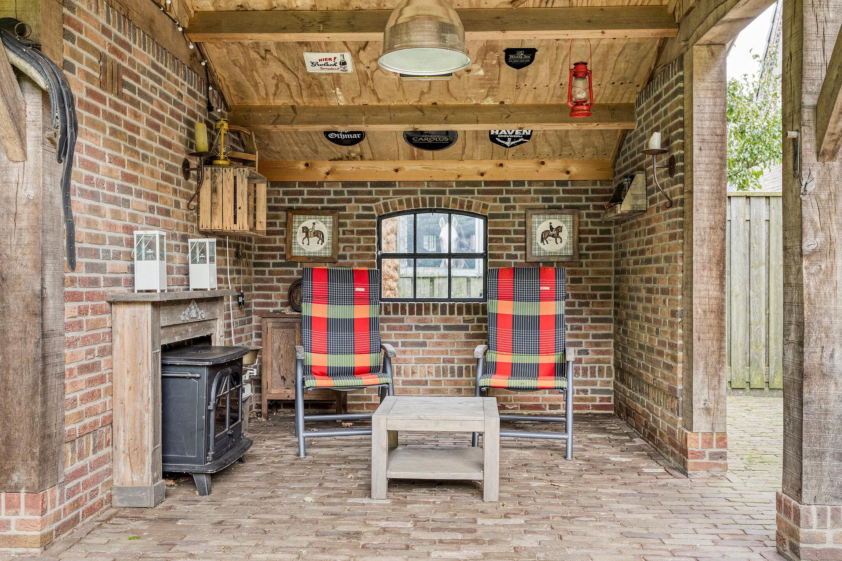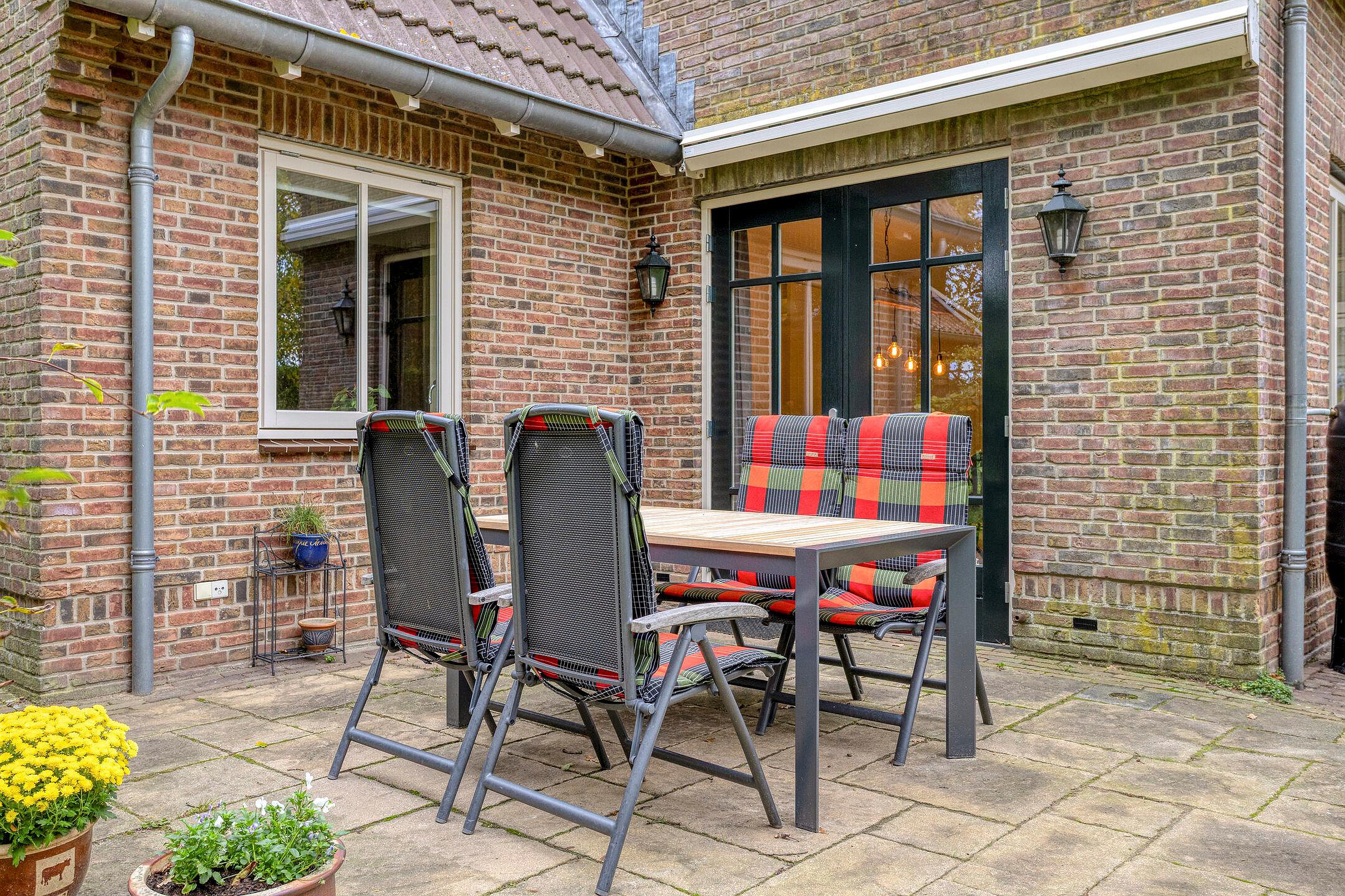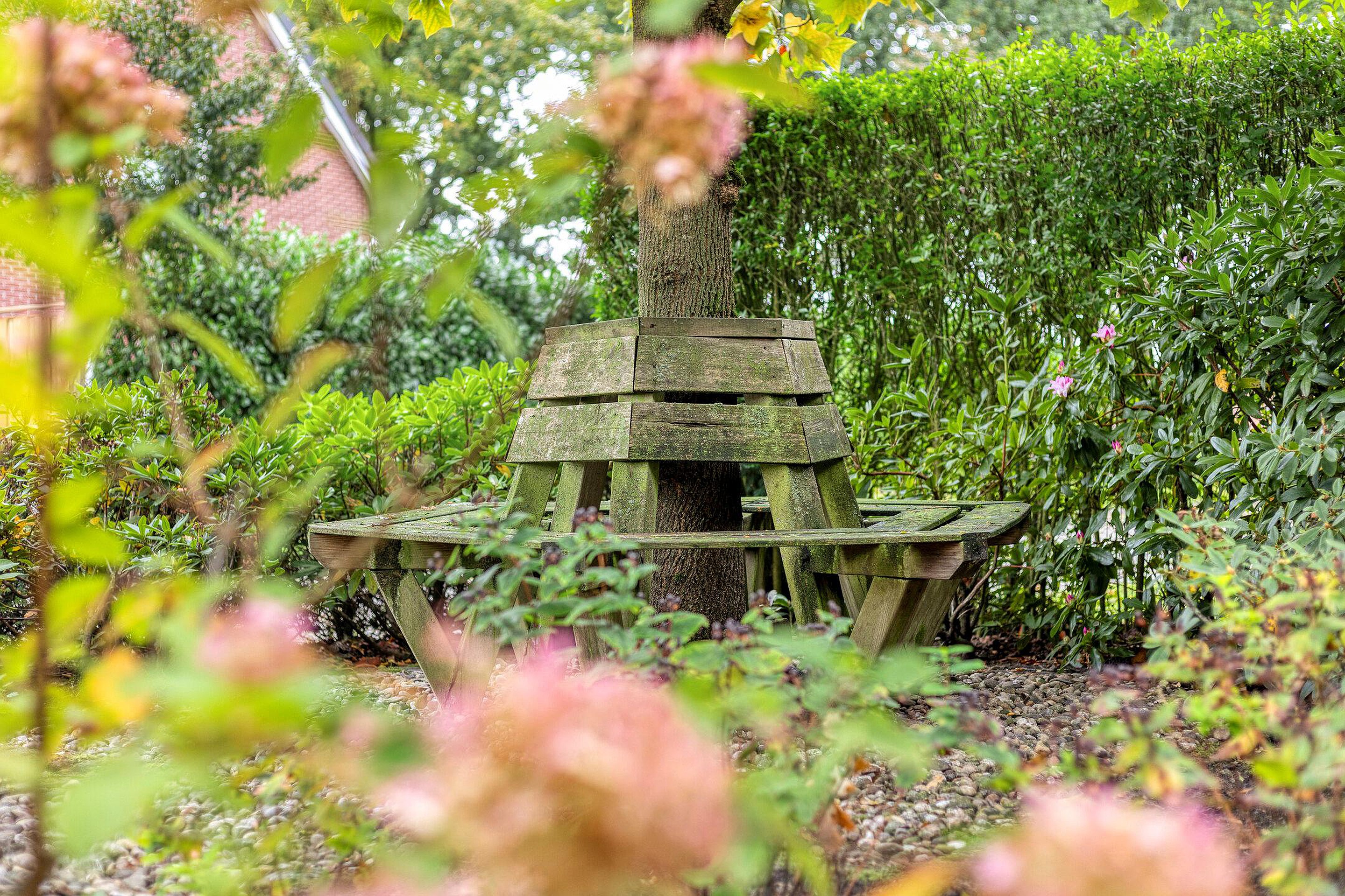 de ruime tuin met terras en overkapping bevindt zich zowel naast als achter de woning en geeft een prachtig uitzicht op de tuin en het natuurgebied.