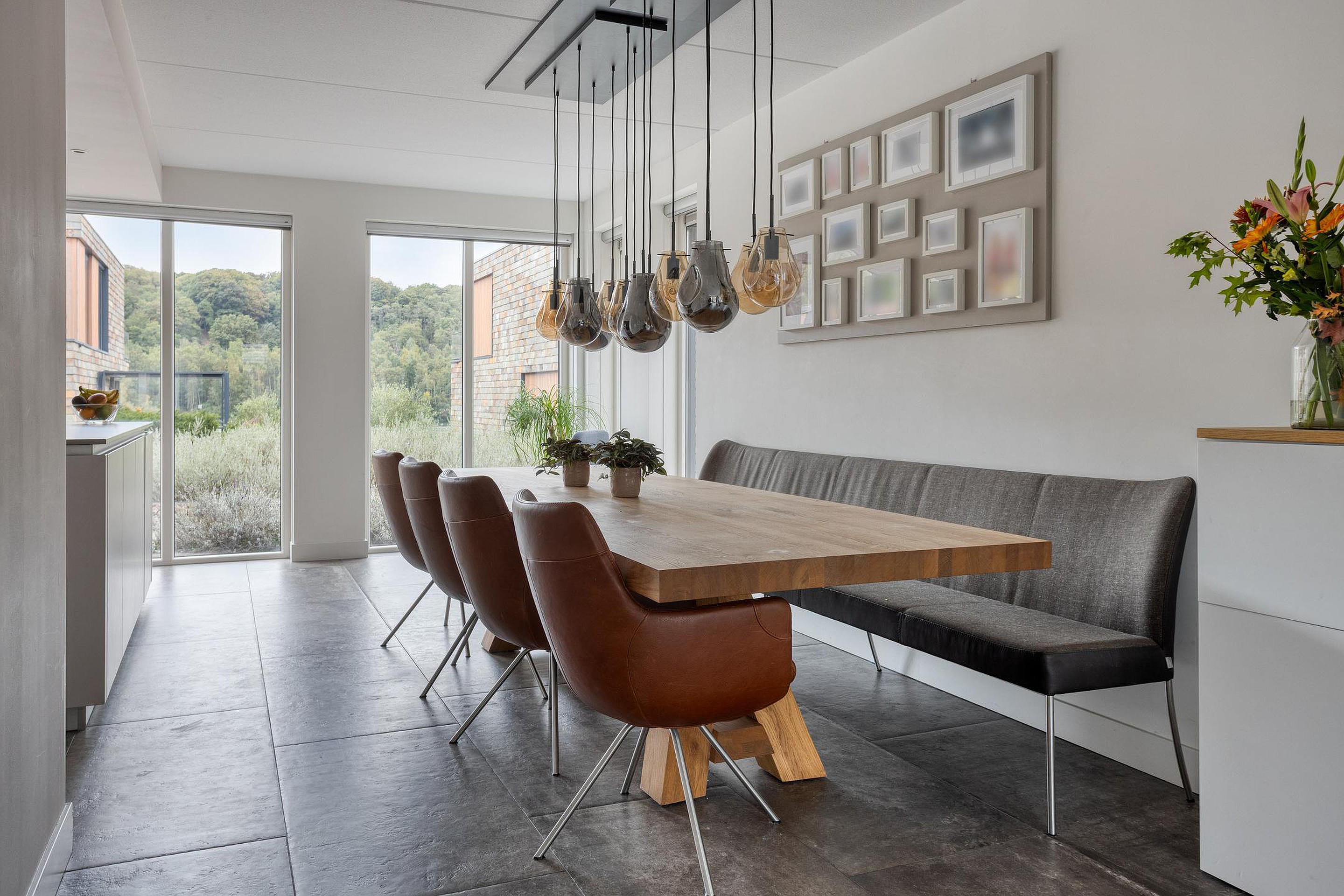 Via de ruime entree met modern toilet en trapopgang richting de eerste verdieping komt u in de woonkamer, waar de lichtinval direct opvalt. De stijlvolle haard vormt een subtiel middelpunt tussen de zit- en eethoek en zorgt voor warmte en sfeer. De keuken is een echte eyecatcher: strak vormgegeven met een groot kookeiland, composiet werkblad en alle apparatuur die u kunt wensen, waaronder een inductiekookplaat, plafondafzuiging, (stoom)oven, vaatwasser, koelkast, vriezer, Quooker en een volautomatische koffiemachine. De plafondhoge raampartijen bieden uitzicht op de groene omgeving en zorgen ook hier voor volop lichtinval.