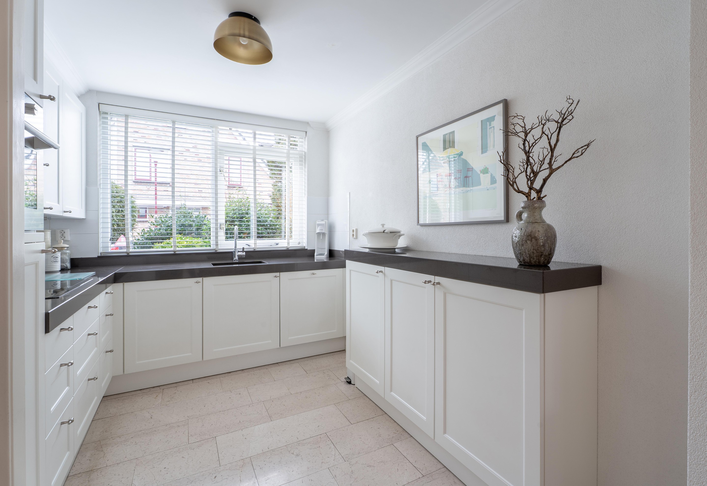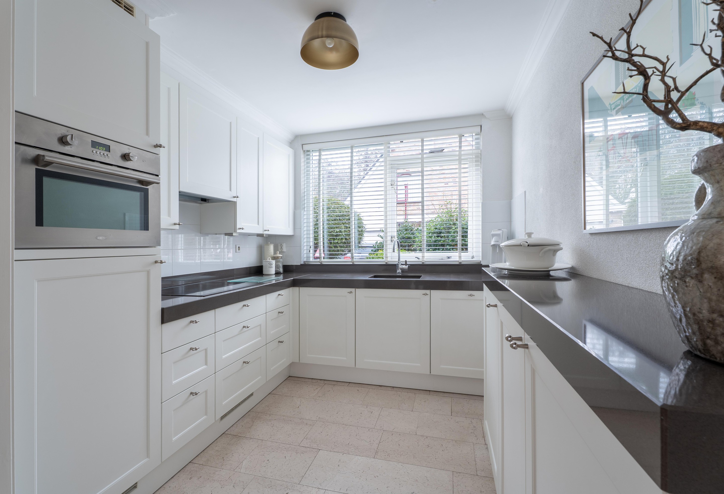 De volledige begane grond is afgewerkt met een marmeren vloer voorzien van vloerverwarming en heeft een nette spachtelputz wandafwerking.