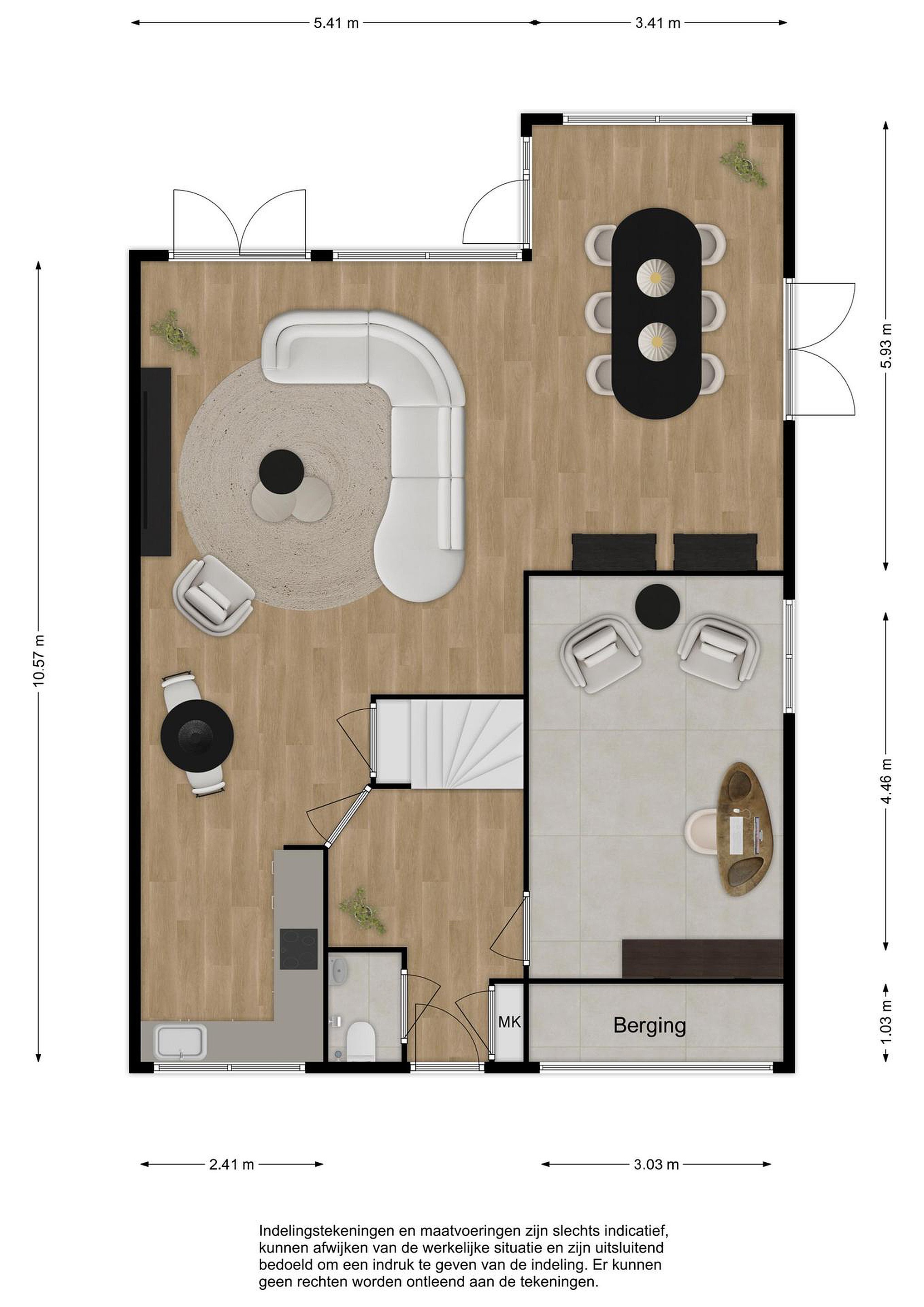 - Woonkamer/keuken is circa: 77 m2