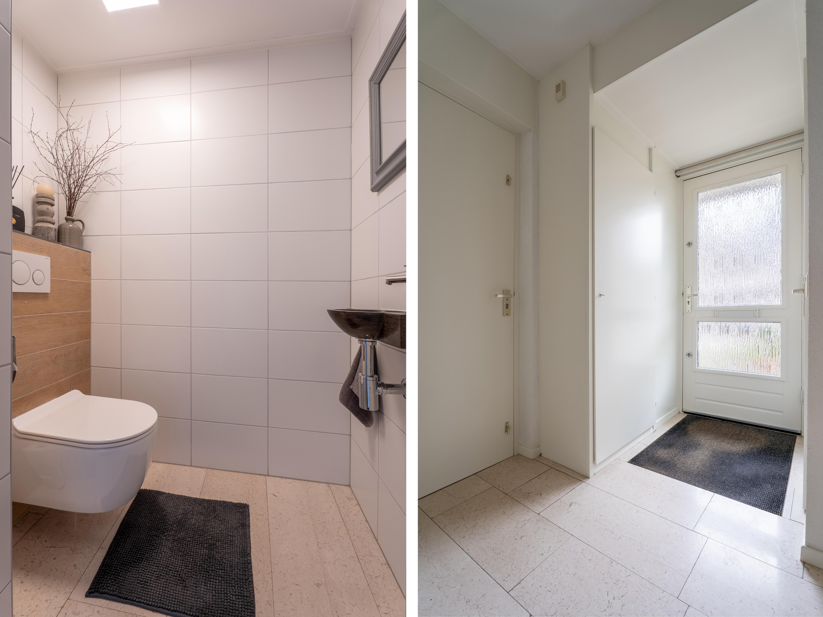 Het moderne toilet is in 2021 volledig vernieuwd, is geheel betegeld en voorzien van een hangend toilet en een fonteintje.