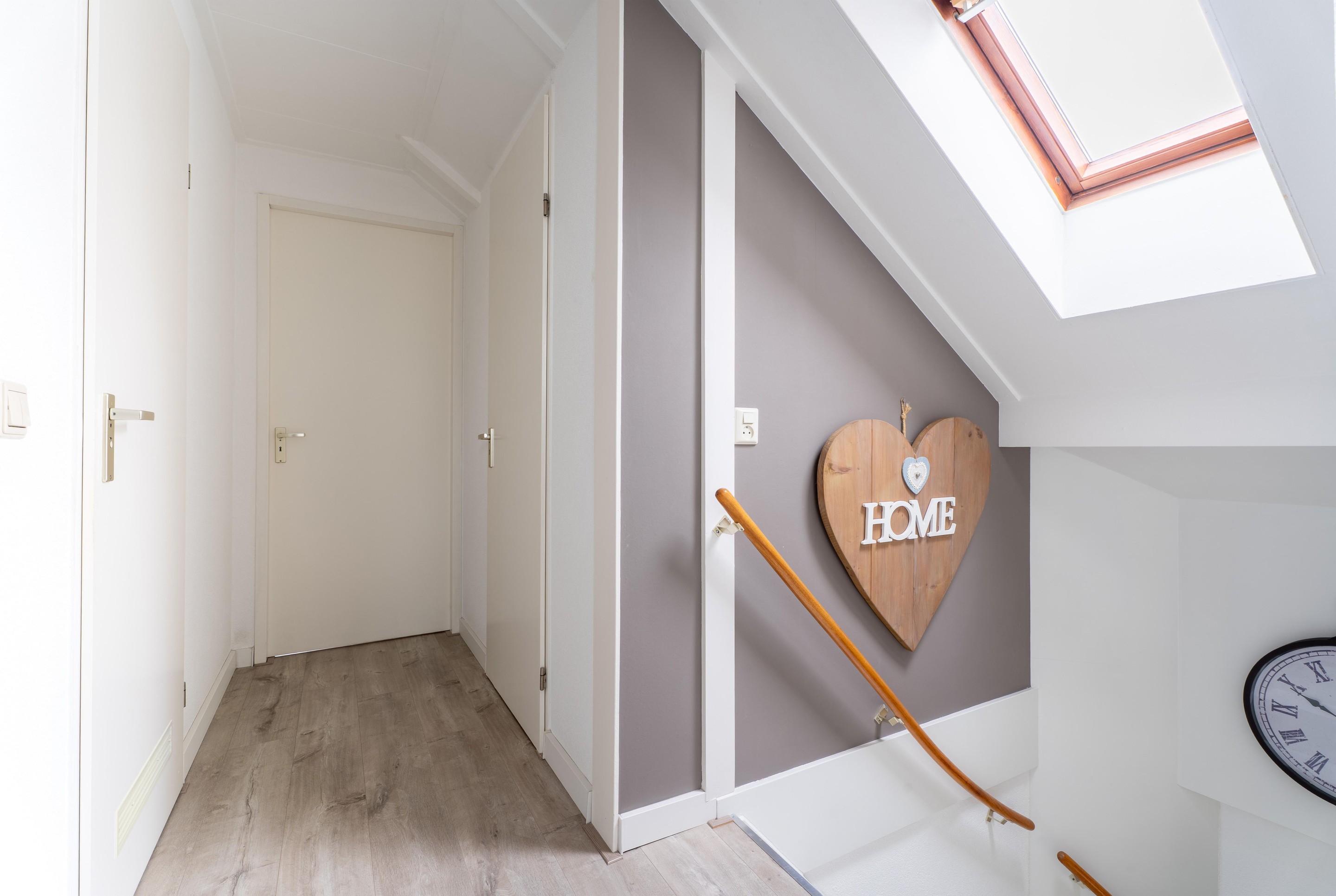 De volledige verdieping is afgewerkt met een laminaatvloer.