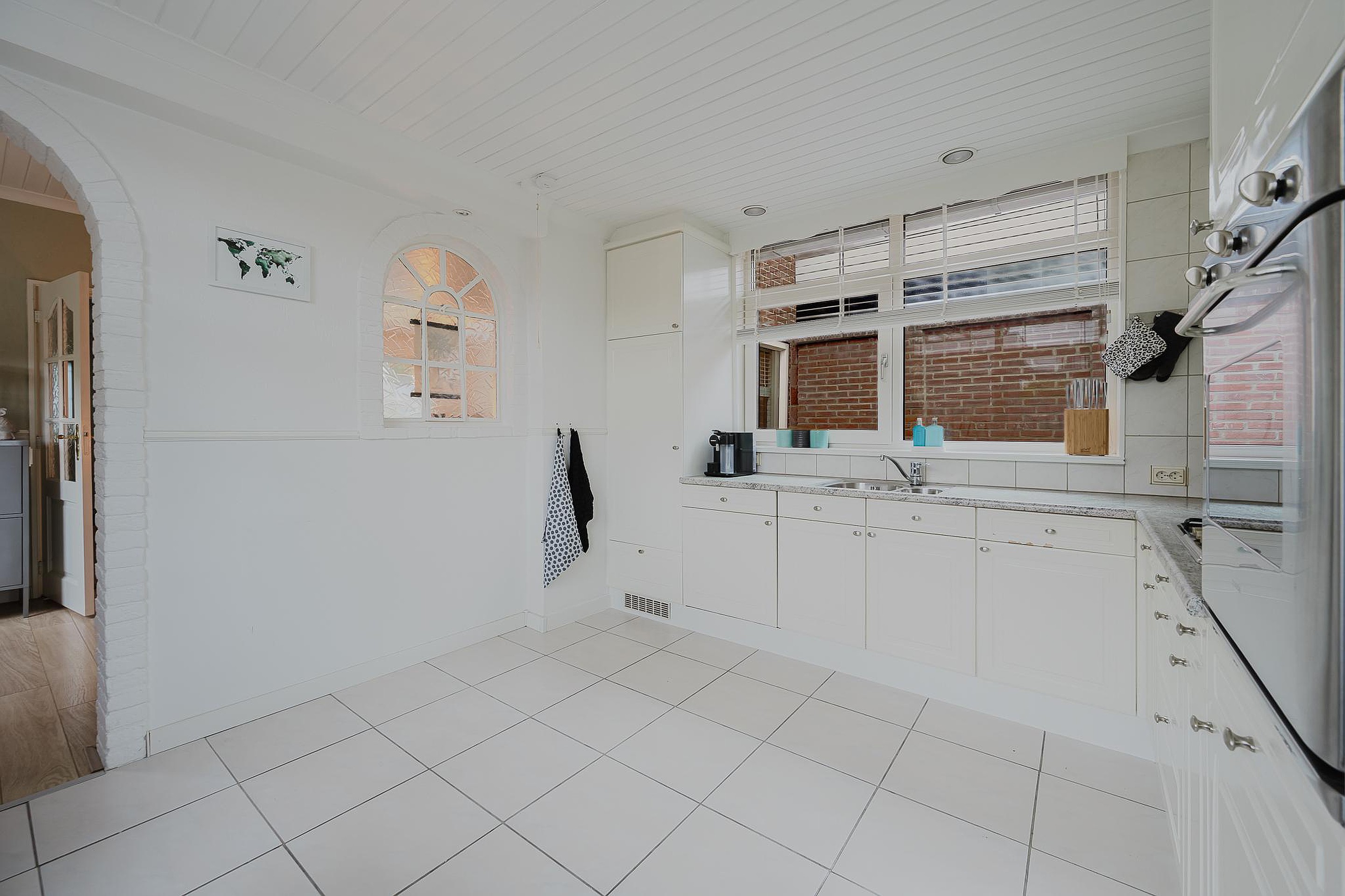 Aan de voorzijde ligt de voortuin met eigen oprit, waar ruimte is om twee auto’s te parkeren. Via de entree kom je in de hal met trapopgang en toilet. De woonkamer is een sfeervolle doorzonkamer met open haard en veel lichtinval. Achter de woonkamer bevindt zich de ruime uitbouw met de keuken, voorzien van grote raampartijen. Aansluitend vind je de praktische bijkeuken met cv-installatie , wasmachineaansluiting en ruimte voor een droger. Vanuit hier stap je de diepe achtertuin (187 m2!!) in, met een verhoogde gerenoveerde veranda (2023), een zonnige ligging op het zuidoosten en toegang tot de oprit aan de zijkant van de woning.