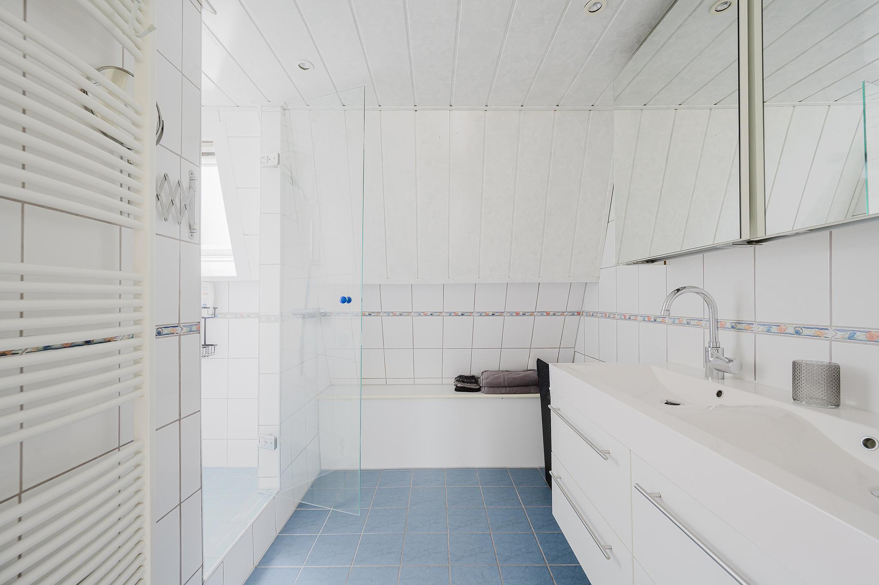 Op de eerste verdieping geeft de overloop toegang tot twee slaapkamers en de badkamer voorzien van een dakraam. De hoofdslaapkamer is voorzien van inbouwkasten en een nieuwe vloer. Dankzij de dakkapellen aan zowel de voor- als achterzijde is er extra veel ruimte en licht. De gehele woning is voorzien van kunststof kozijnen en HR ++ glas.