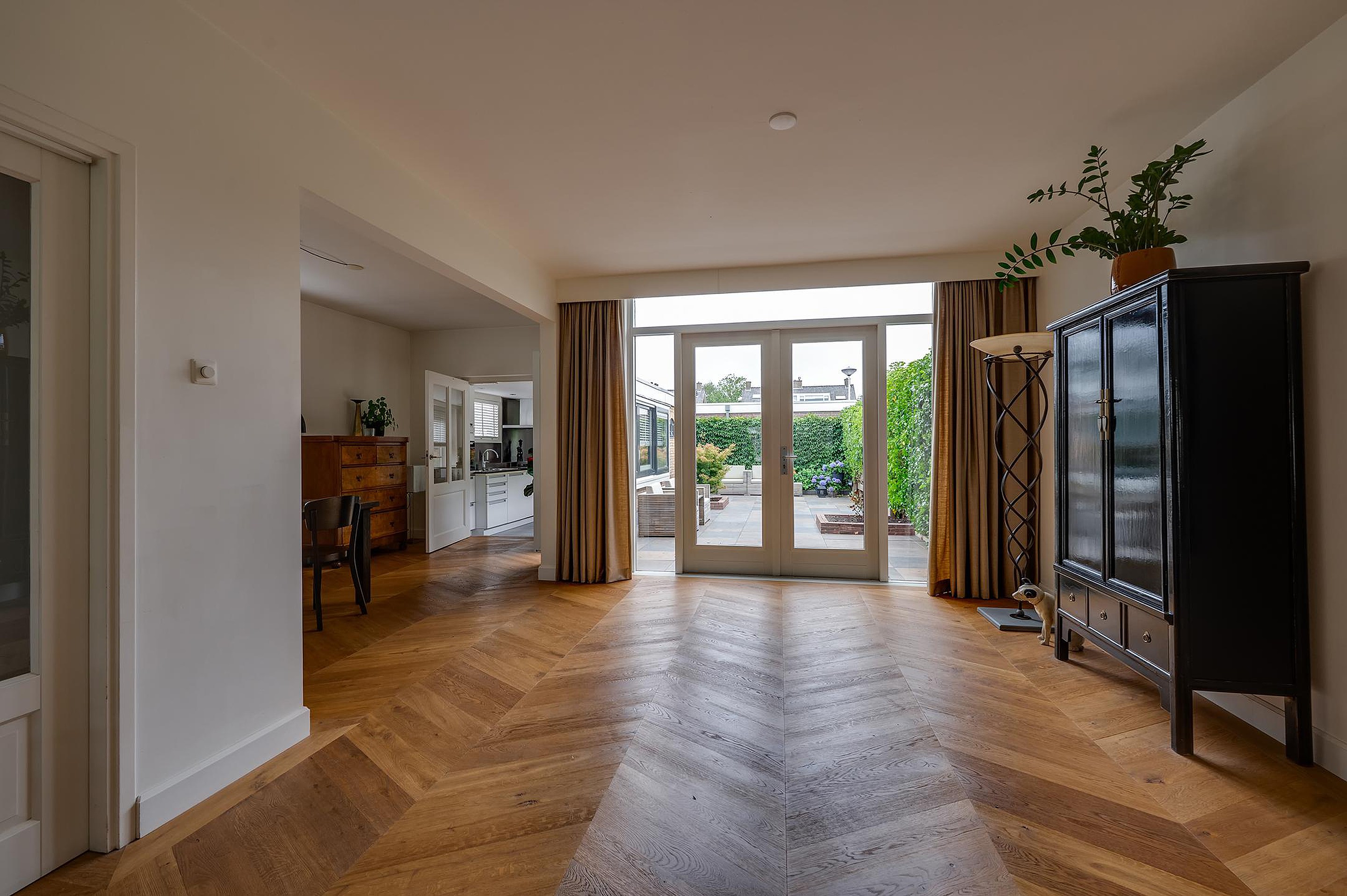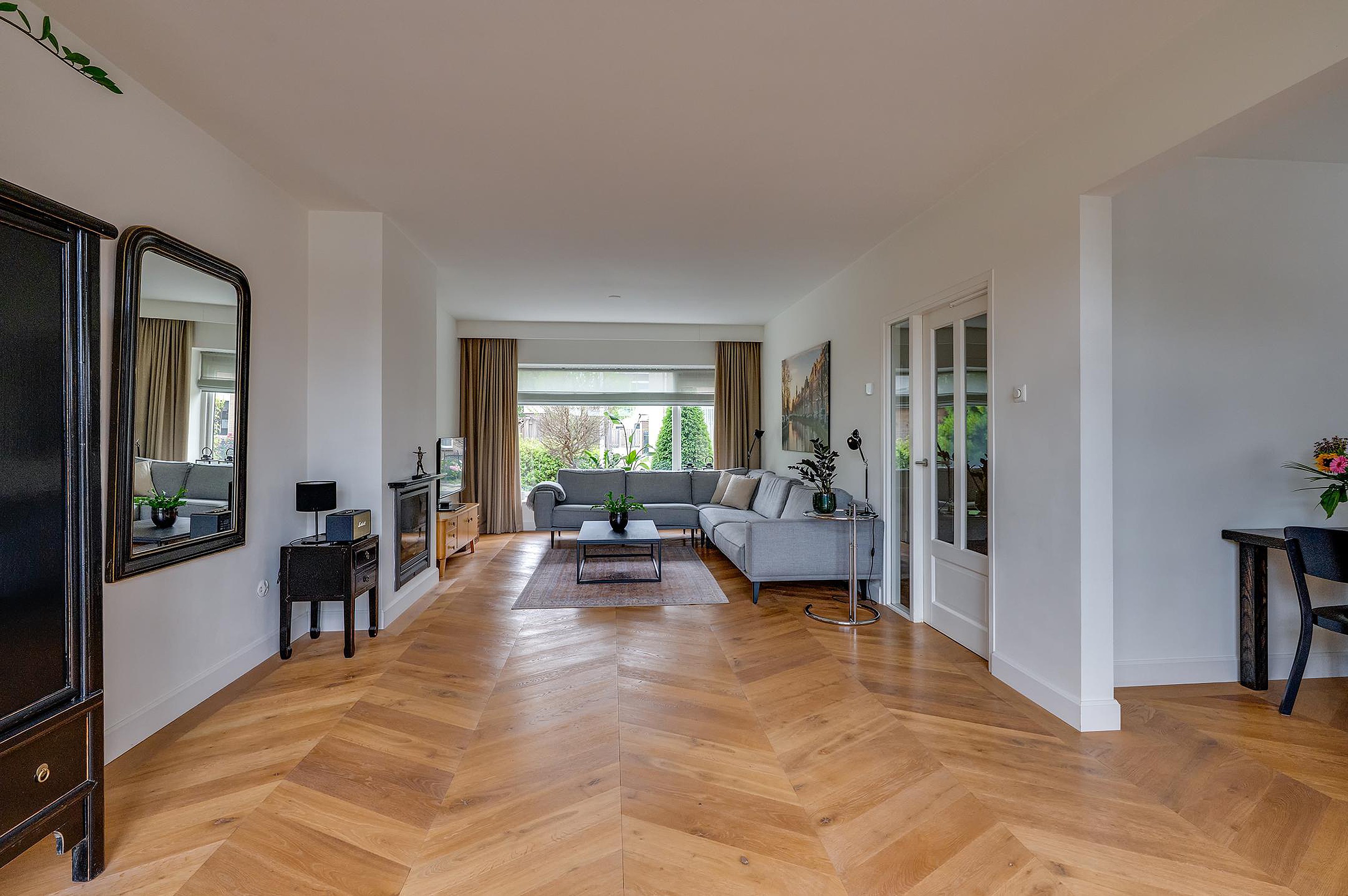 - Prachtige houten Hongaarse Punt vloer op de begane grond, stijlvol en tijdloos