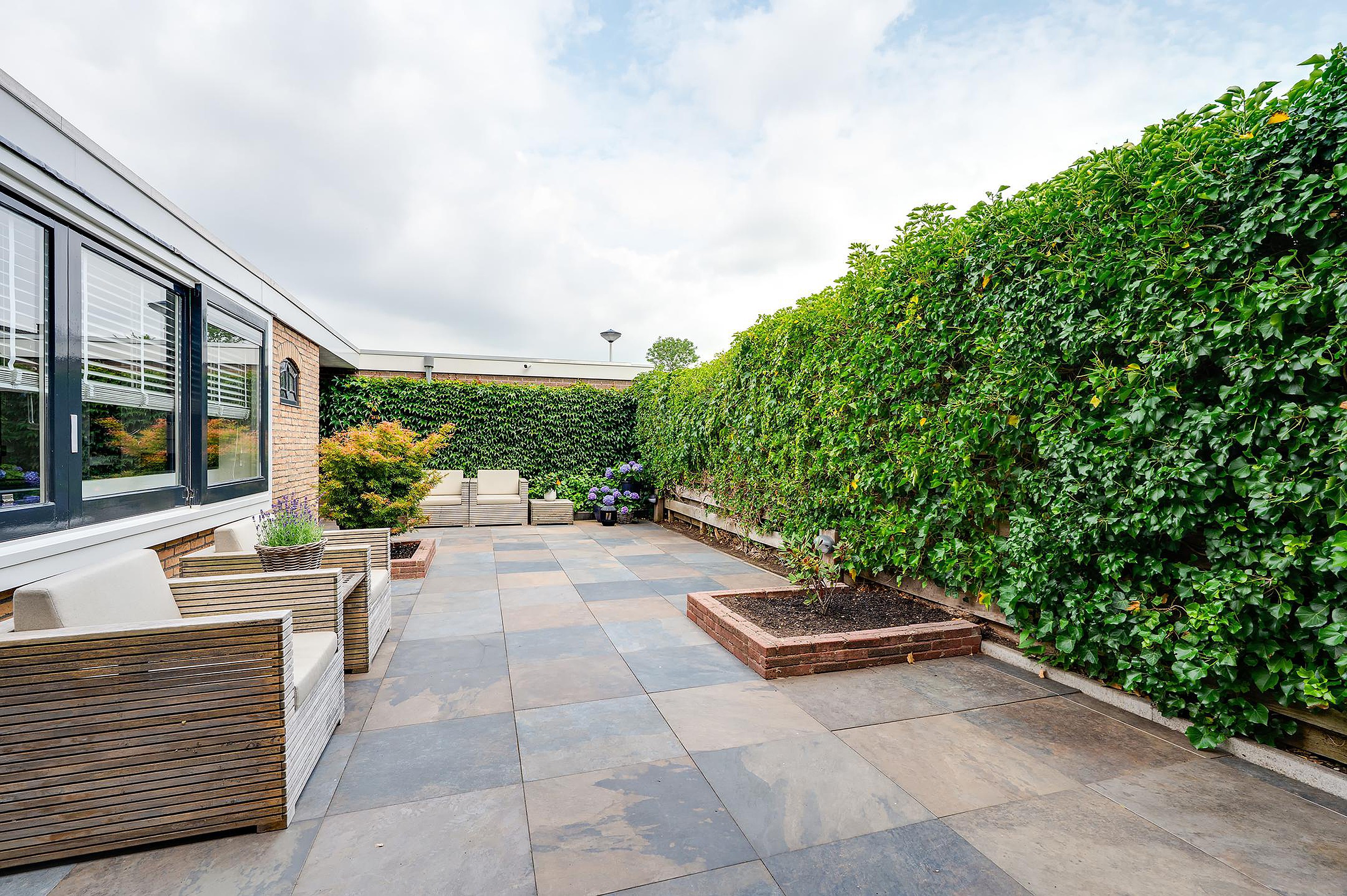 - Een heerlijke, onderhoudsvrije en privacyvolle achtertuin